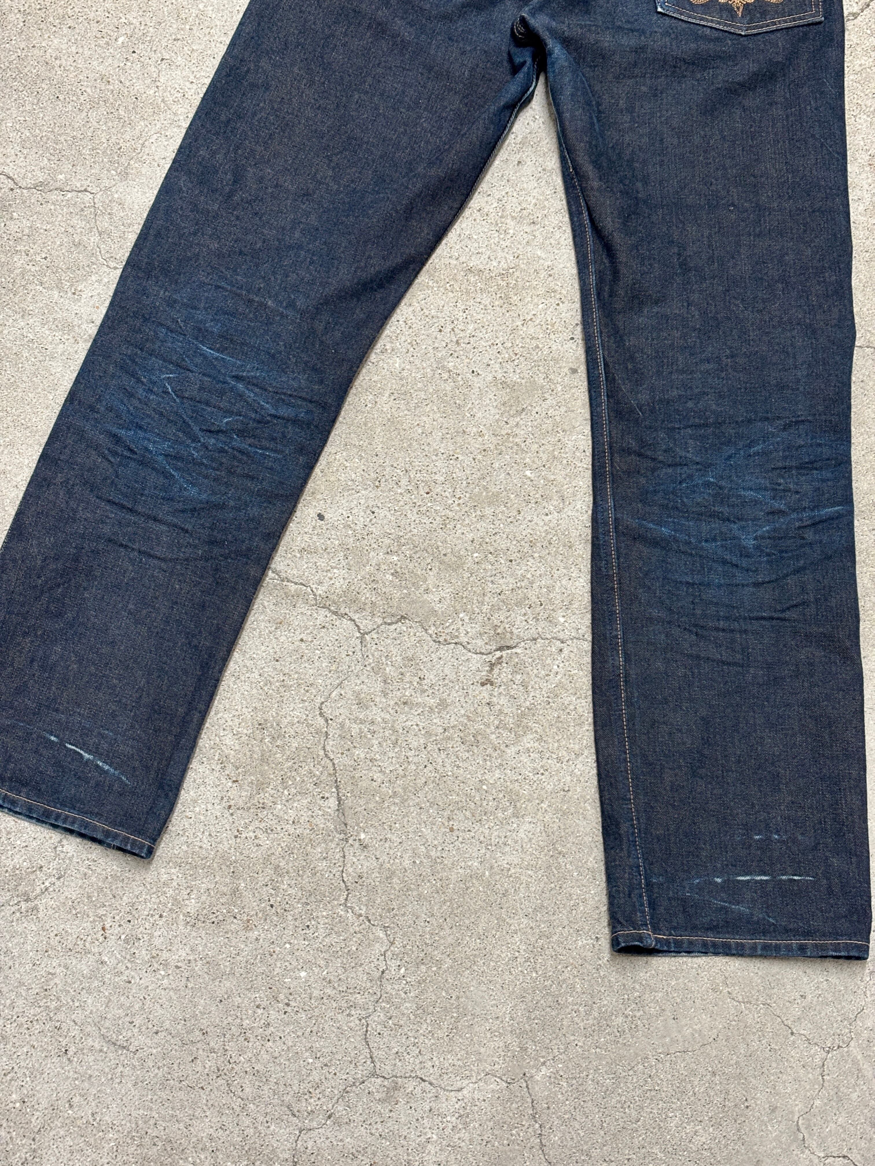 00s A BATHING APE × STASH/Denim pants/S/デニムパンツ/刺繍ロゴ/インディゴ/A.S.N.K.A/Wrahglerサンプリング/BAPE/アベイシングエイプ