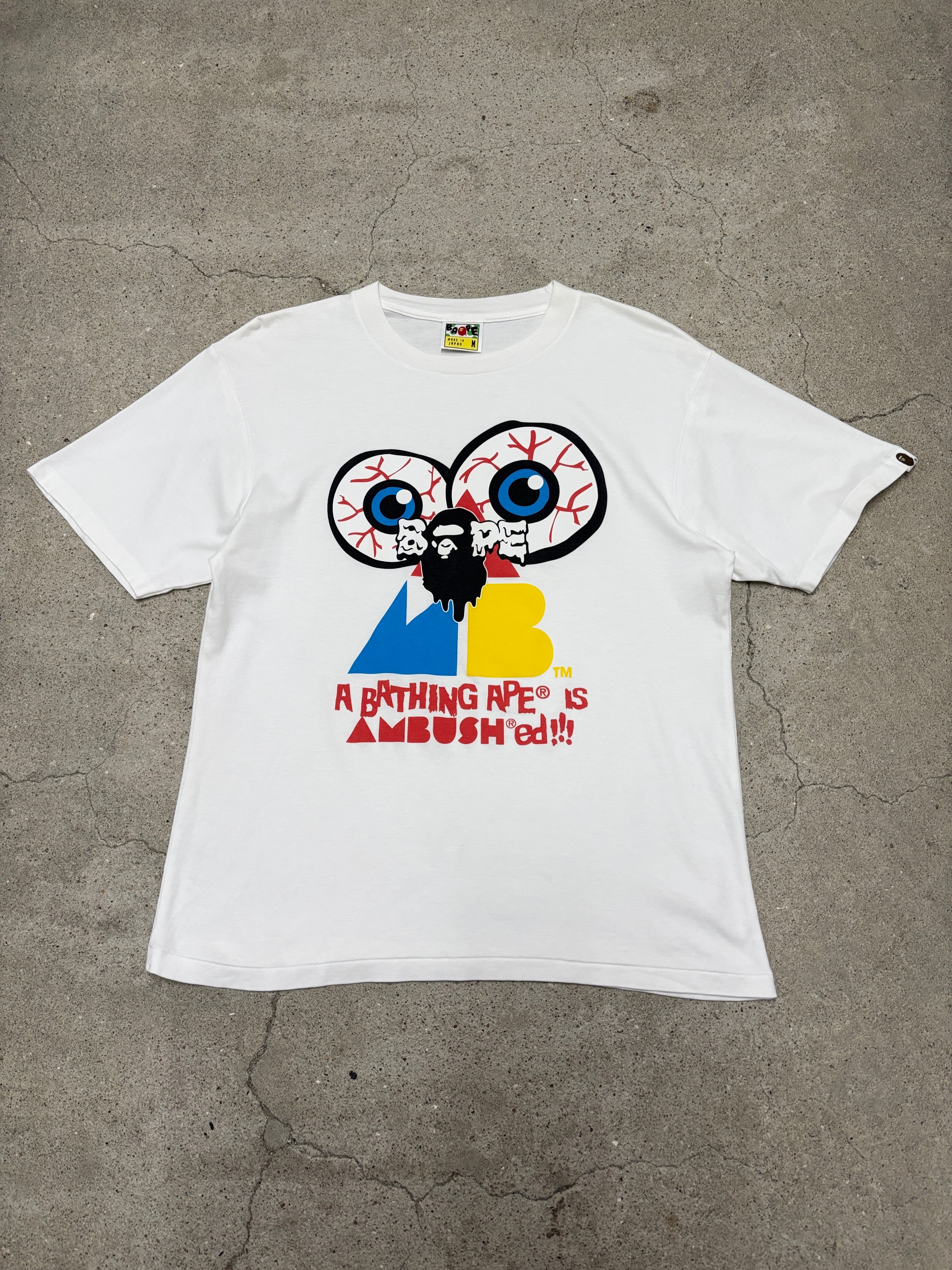 10s A BATHING APE × AMBUSH/Logo print Tee/M/ロゴプリントTシャツ/ホワイト/BAPE/アンブッシュコラボ/アベイシングエイプ/日本製/古着