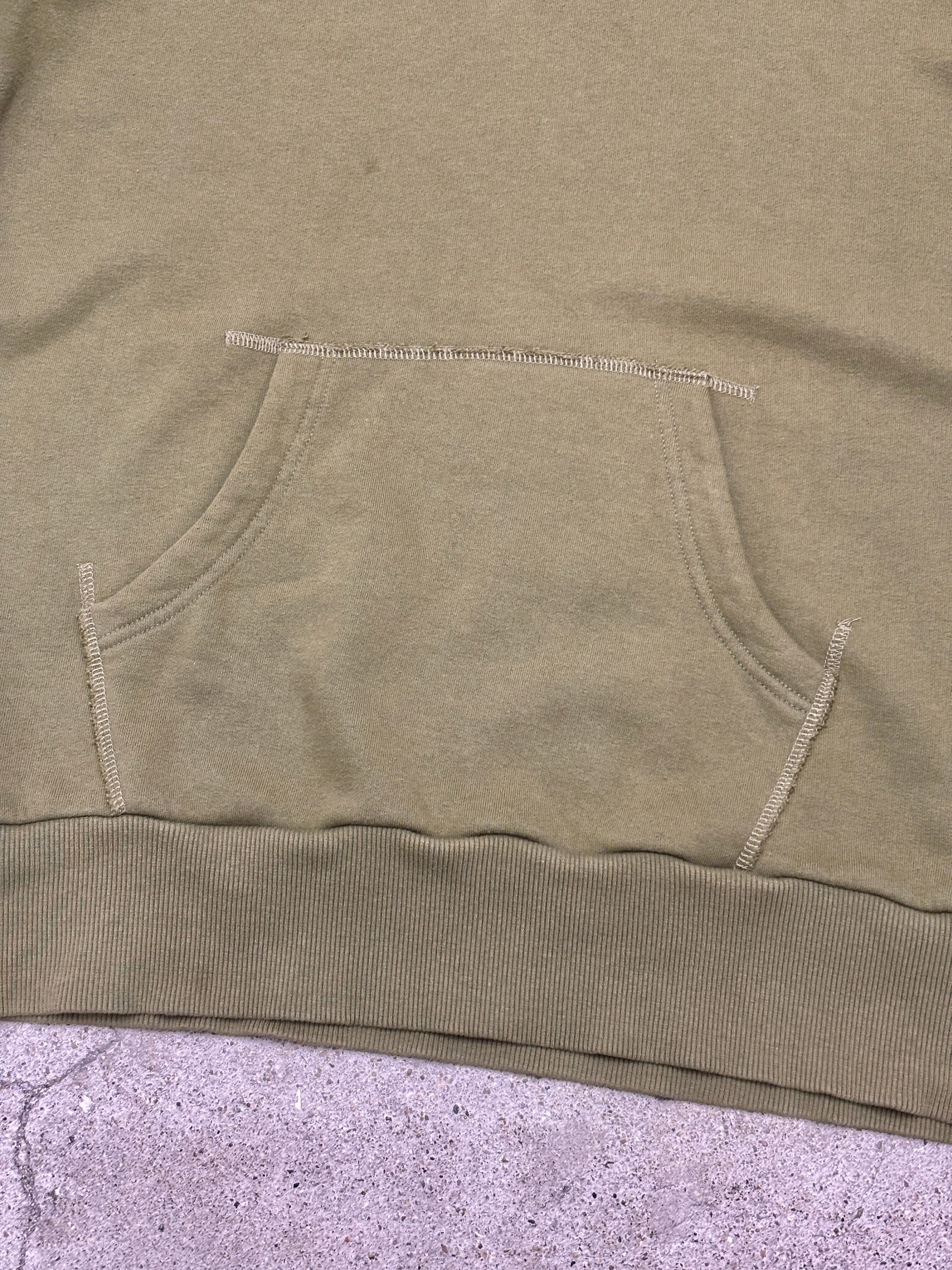 00s OLD STUSSY/Half zip Hoodie/M/ハーフジップフ-ディ-/ストックロゴ/刺繍ロゴ/カーキ/ステューシー/オ-ルドステューシー/古着/ア―カイブ