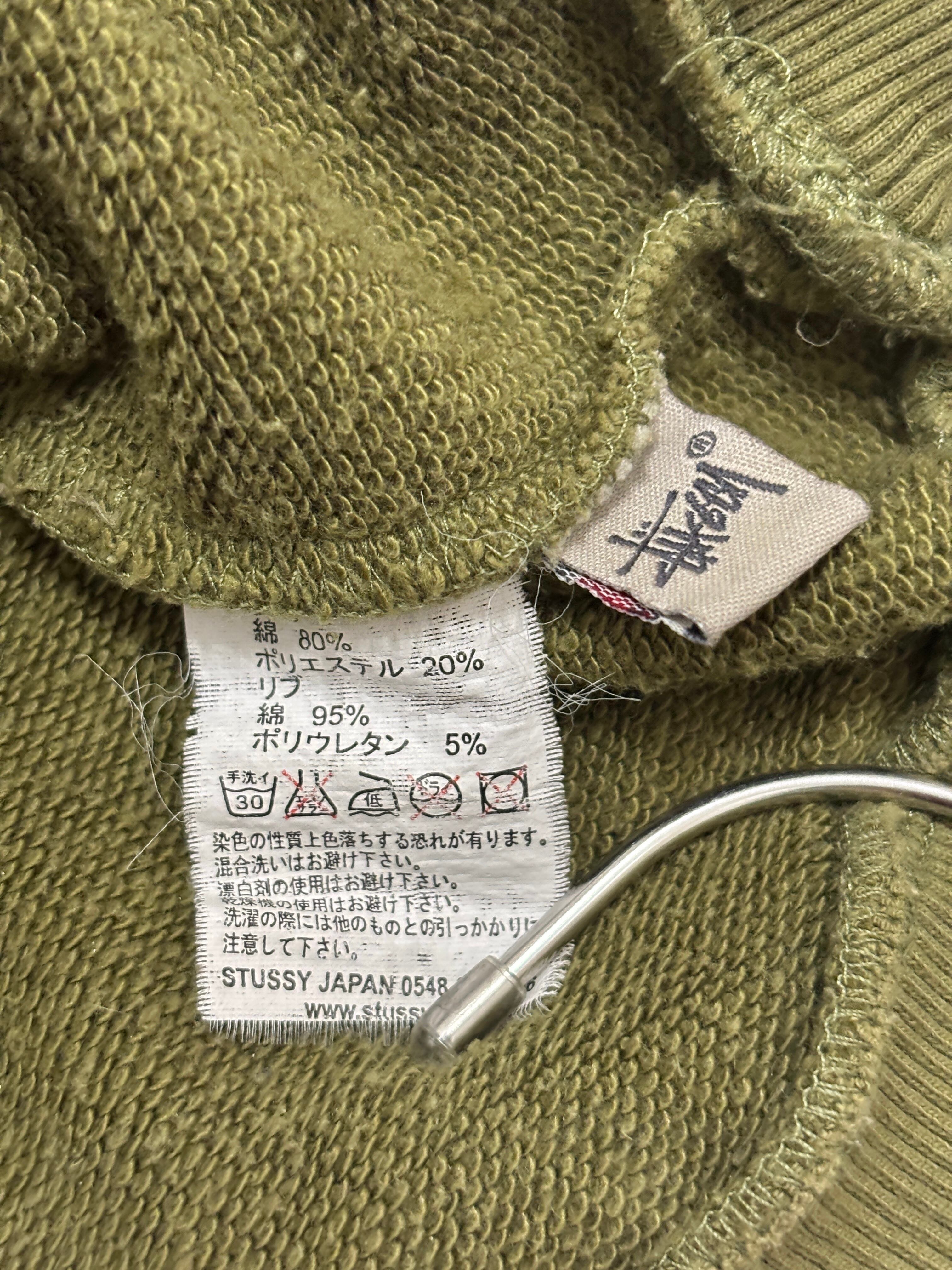 00s OLD STUSSY/Half zip Hoodie/M/ハーフジップフ-ディ-/ストックロゴ/刺繍ロゴ/カーキ/ステューシー/オ-ルドステューシー