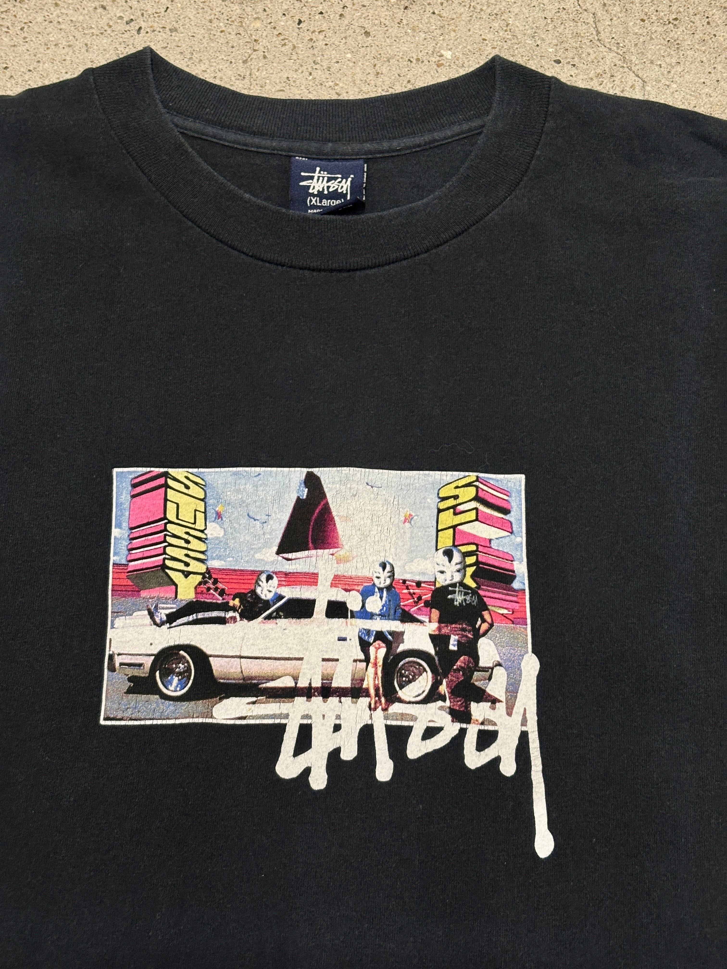00s OLD STUSSY/CUSTOMADE/Graphic print Tee/USA製/2001年/XL/グラフィックプリントTシャツ/ブラック/カスタメイド/ステューシー/オールドステューシー
