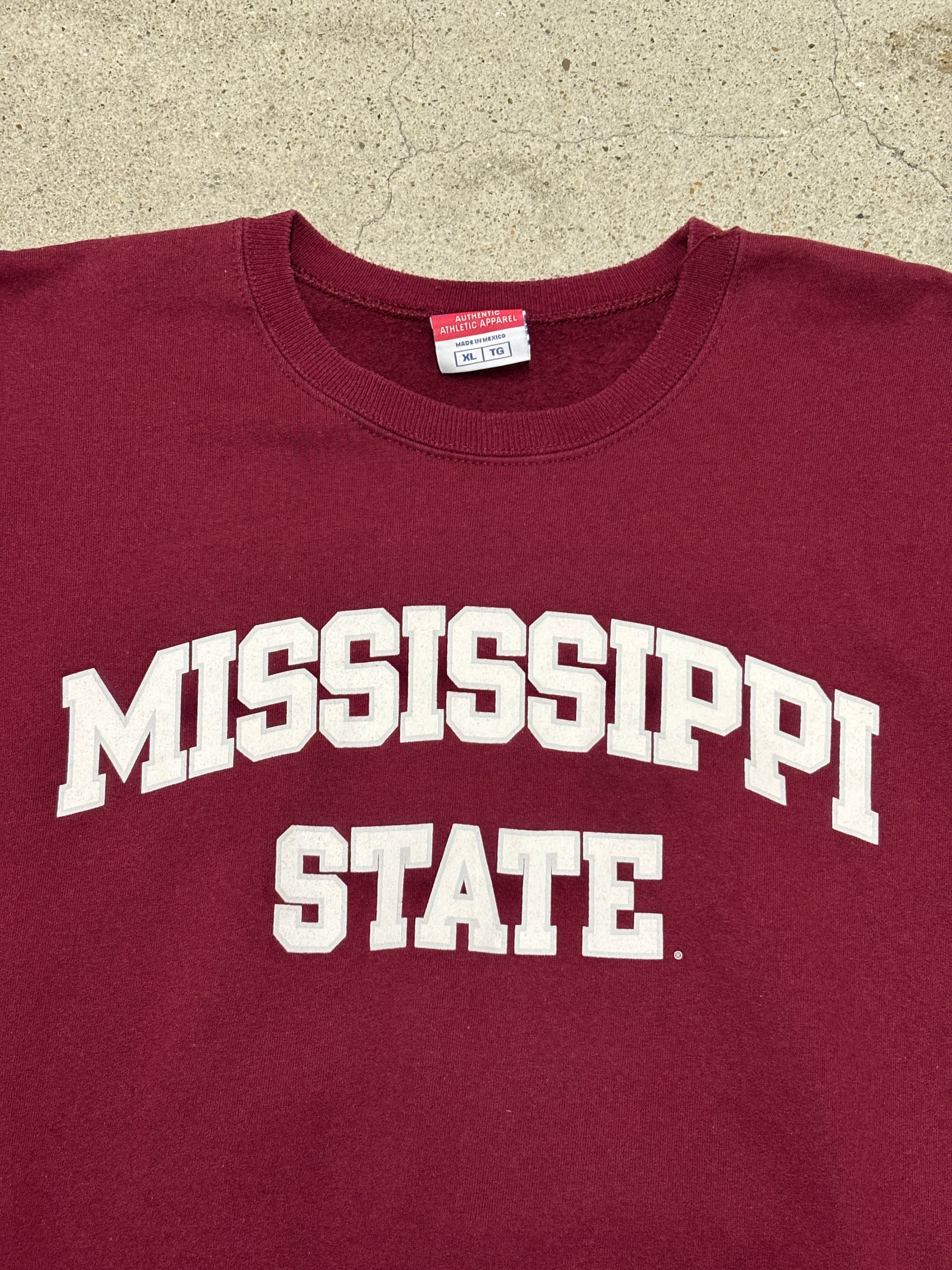 00s Champion/AUTHENTIC APPAREL Sweat/MISSISSIPPI STATE print/XL/ミシシッピ州立大学プリント/スウェット/バ-ガンディ-/チャンピオン/アメカジ/古着