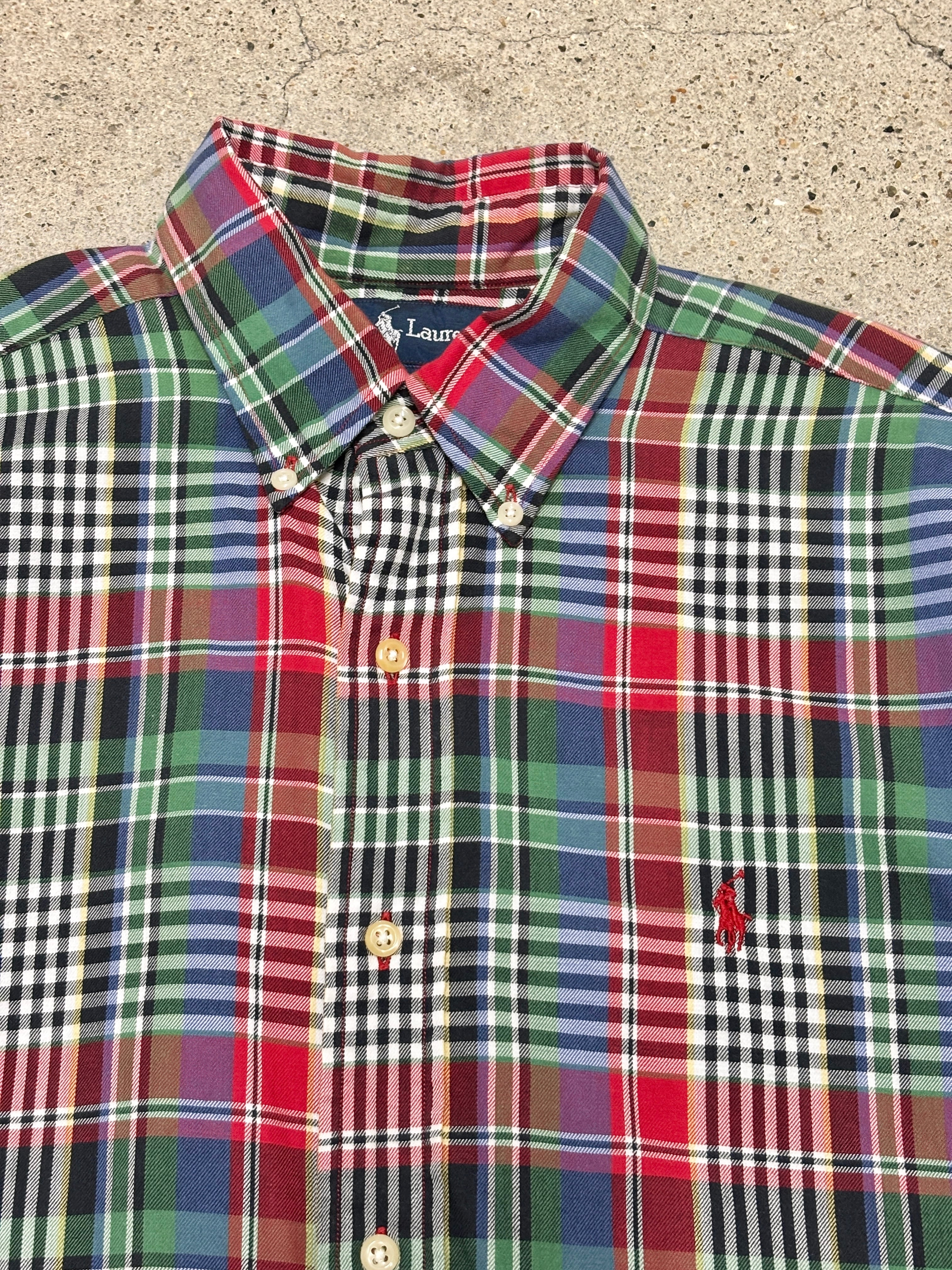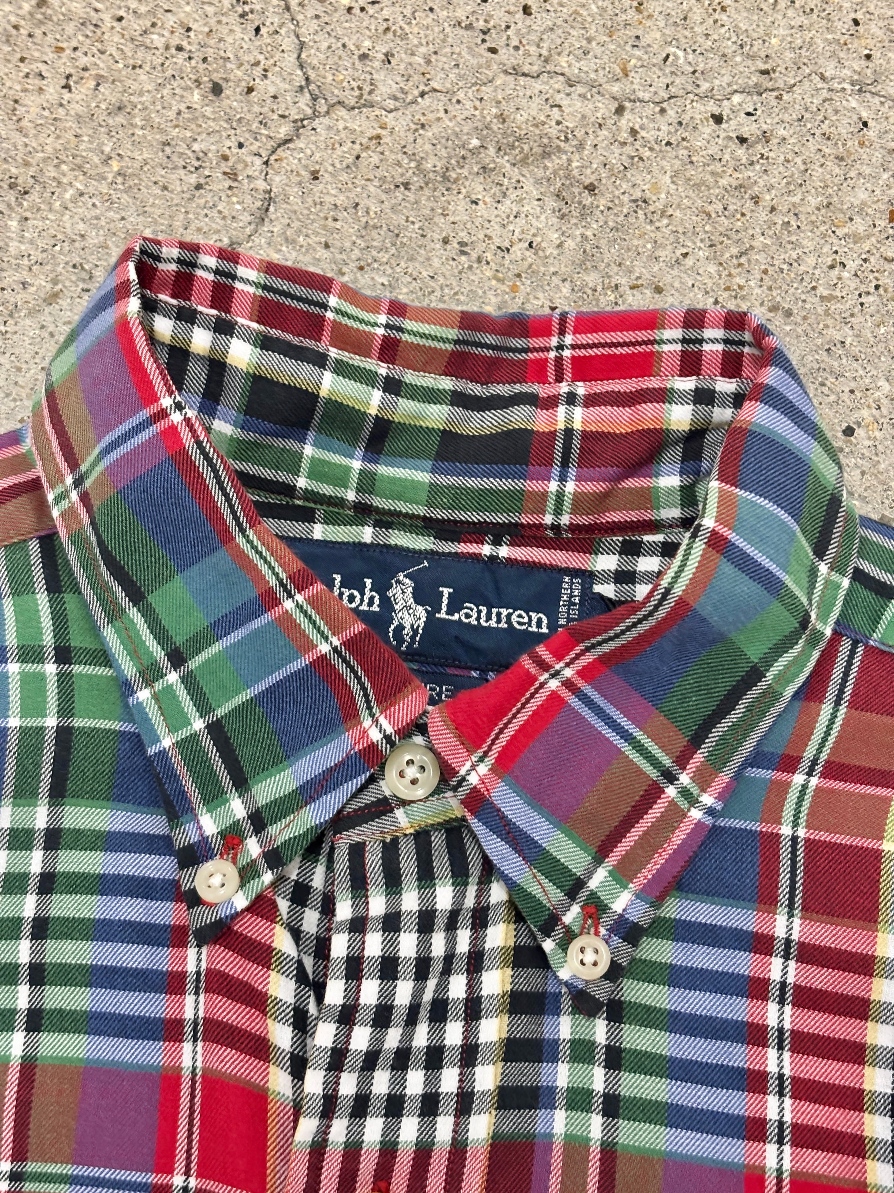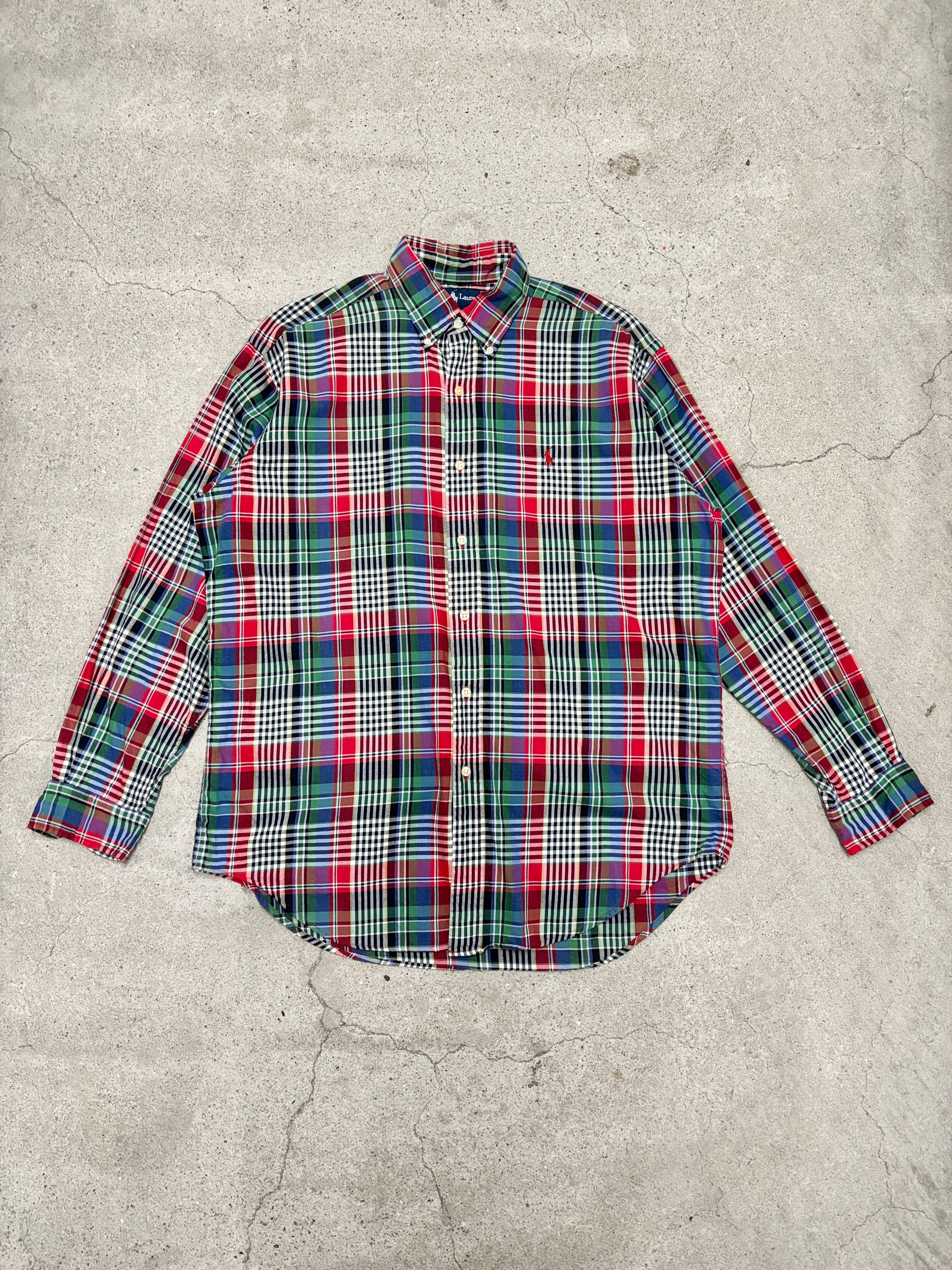 90s POLO RALPH LAUREN/Check BD L/S Shirt/BLAIRE/M/チェック柄ボタンダウンシャツ/長袖シャツ/マルチカラ-/ポロラルフローレン/アメカジ/古着