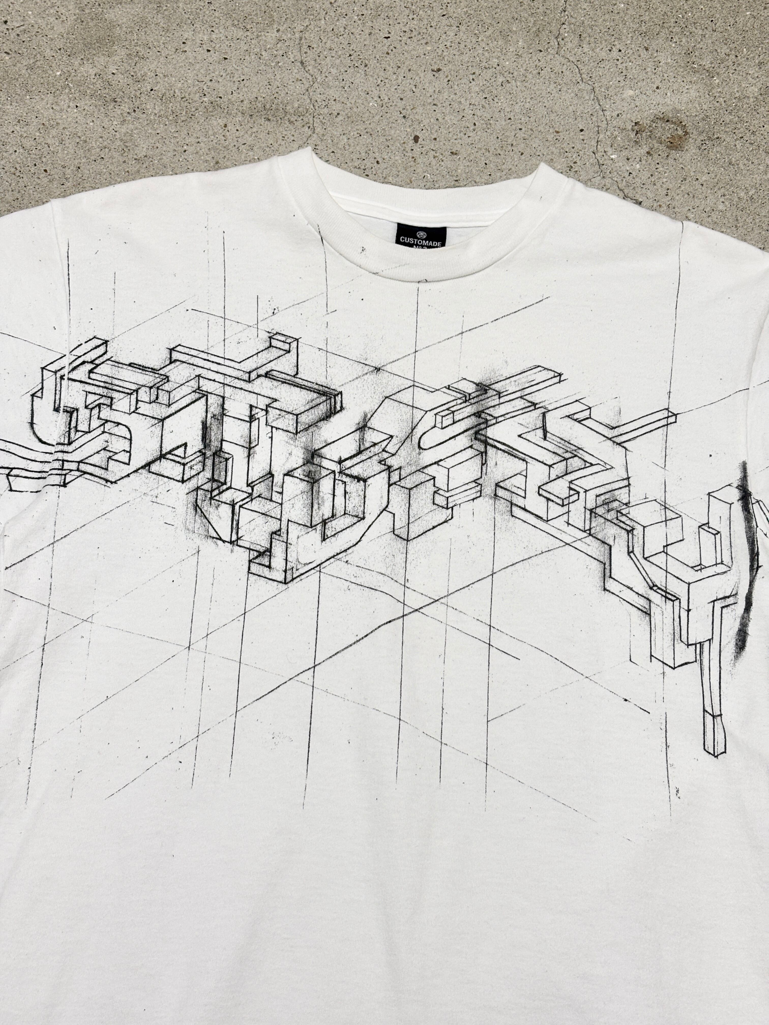 00s OLD STUSSY/CUSTOMADE/DELTA/Graphic Logo print Tee/USA製/M/グラフィックロゴプリントTシャツ/ホワイト/カスタメイド/ステューシー/オ-ルドステューシー