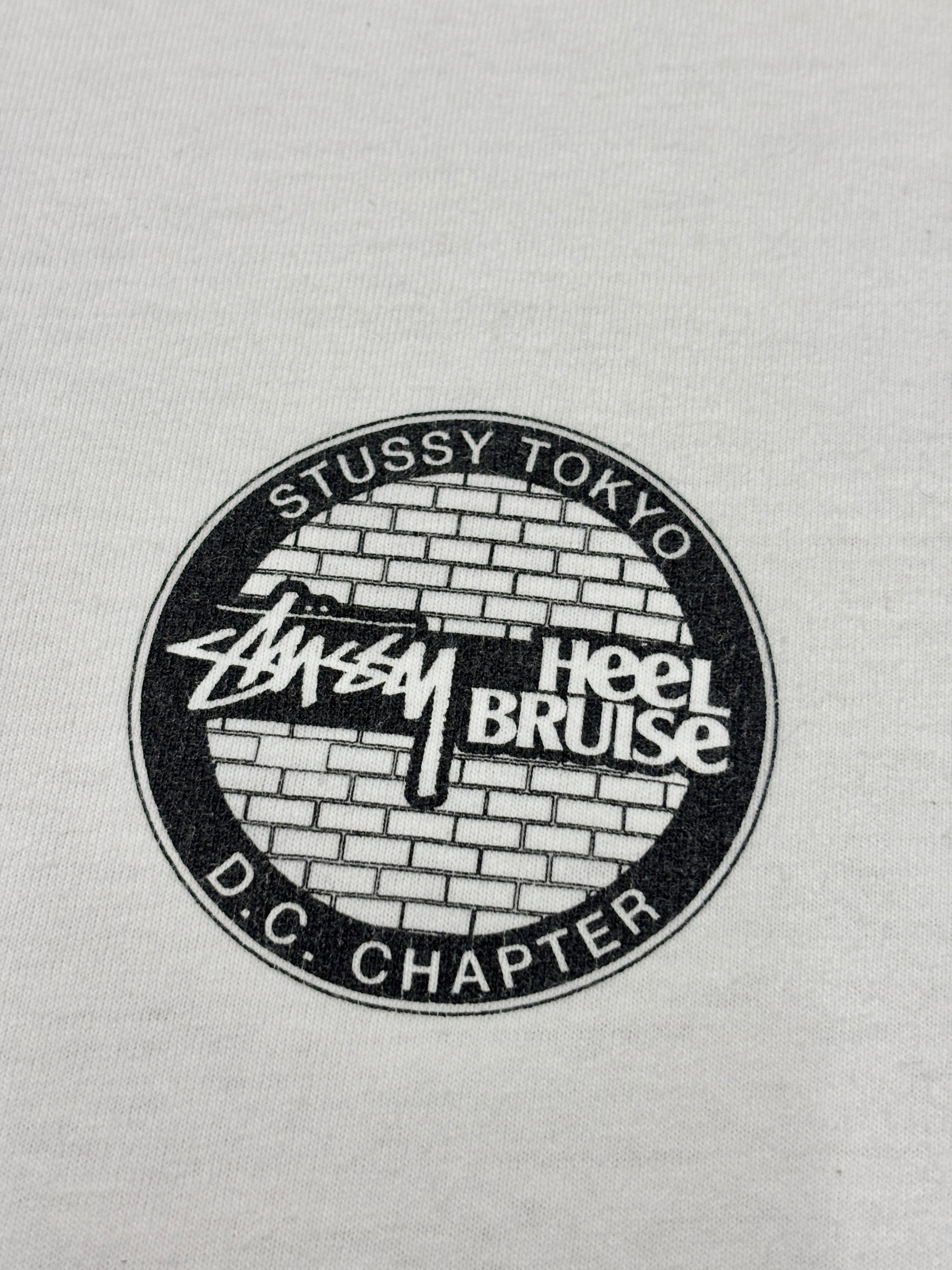 10s STUSSY × HEEL BRUISE/TOKYO DC Chapter open Anniversary Tee/L/ダイバ-シティ-東京チャプトオ-プン記念Tシャツ/ロゴプリント/龍/ホワイト/ヒ-ルブル-スコラボ/ステューシー/古着/ア―カイブ