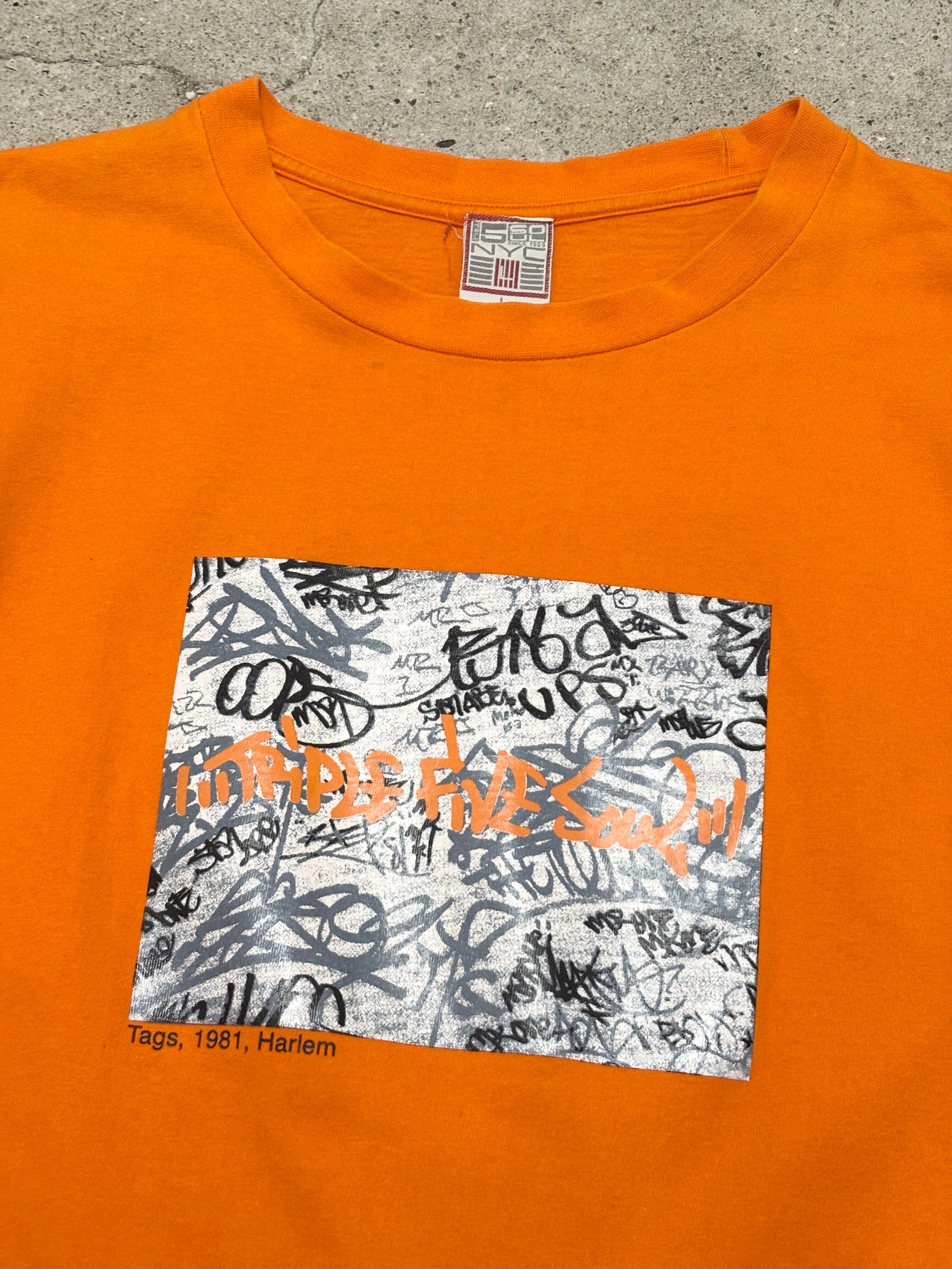 90~00s TRIPLE FIVE SOUL/Graphic Logo print Tee/L/グラフィックロゴプリントTシャツ/オレンジ/トリプルファイブソウル/HIPHOP/ストリ-ト/古着