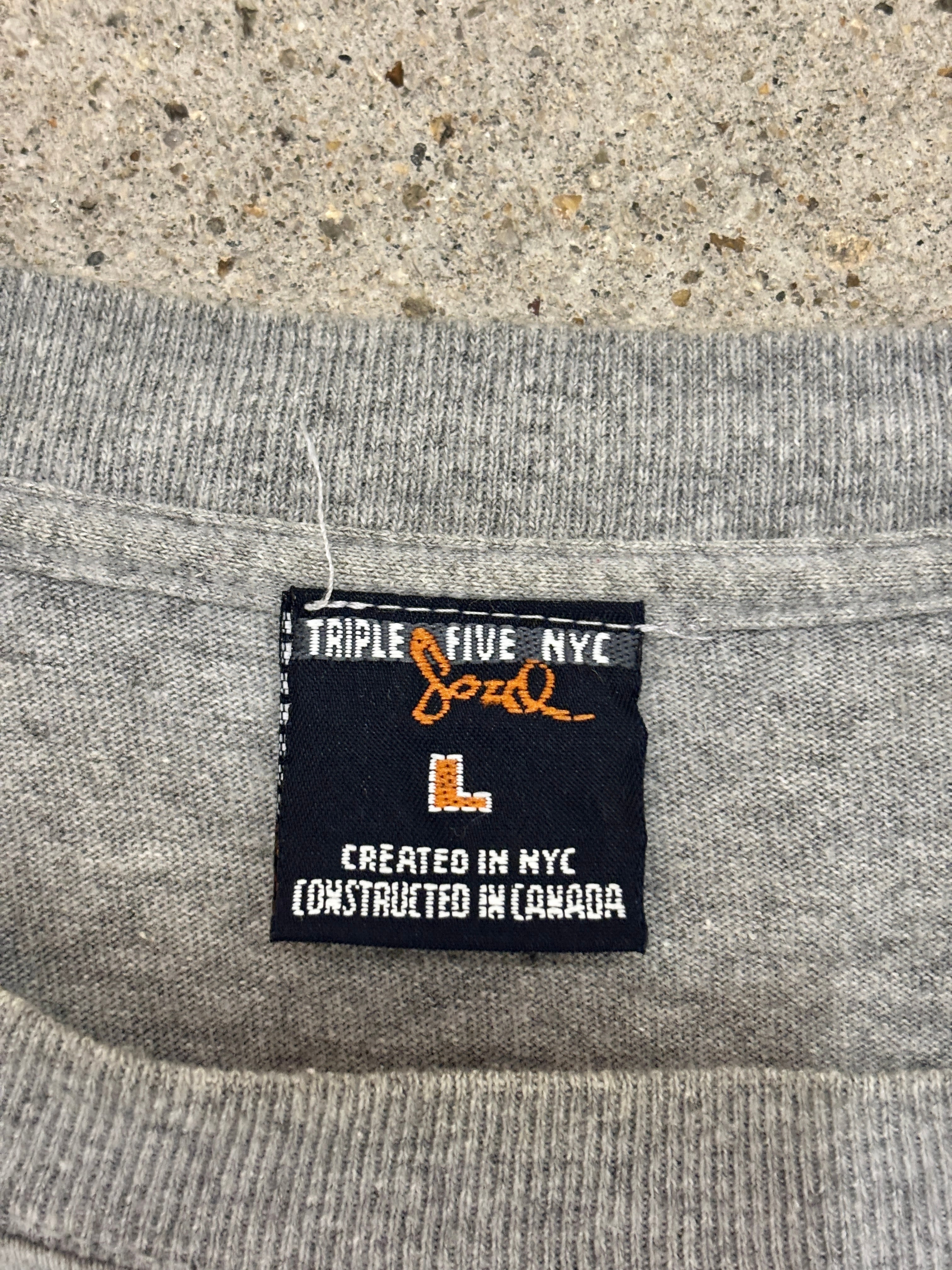 90~00s TRIPLE FIVE SOUL/Dragon print Tee/L/ドラゴンプリントTシャツ/龍/ロゴプリント/グレ-/トリプルファイブソウル/HIPHOP/ストリ-ト/古着