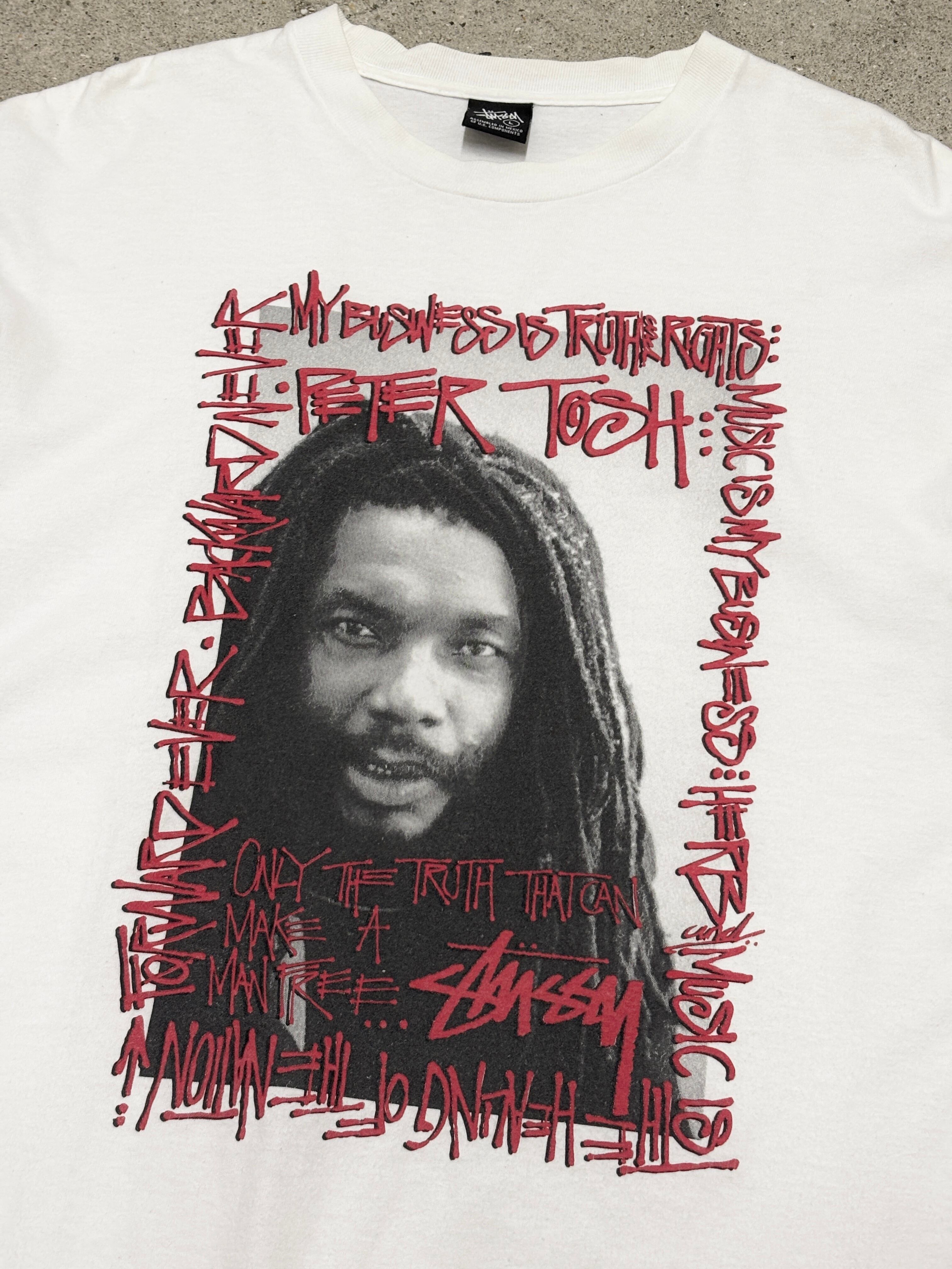 00s OLD STUSSY × PETER TOSH/Photo print Tee/L/フォトプリントTシャツ/ホワイト/ピータ・トッシュコラボ/ステューシー/オ-ルドステューシ-/レゲエ/古着/ア-カイブ