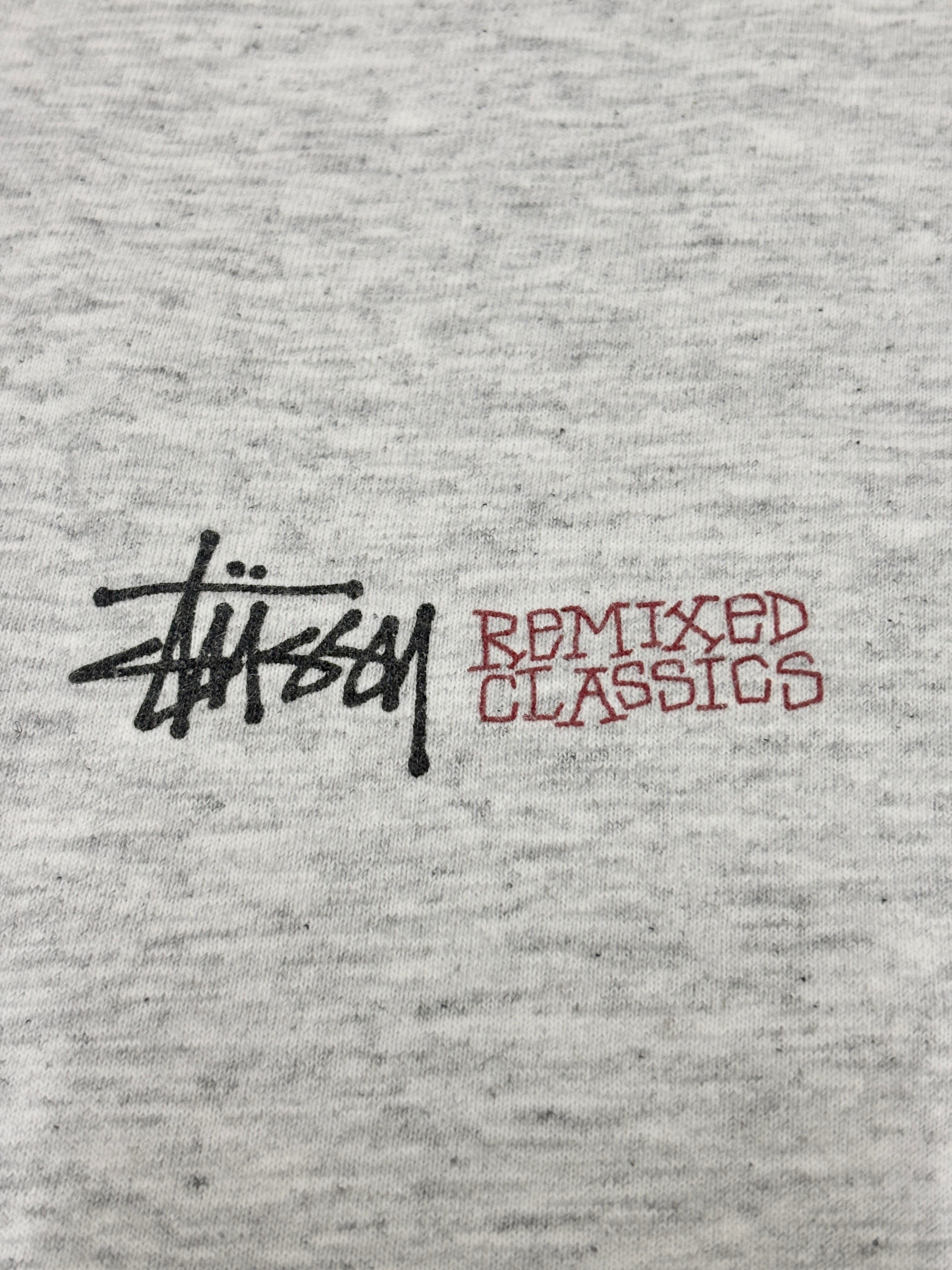 90s OLD STUSSY/EAT DRINK Photo Tee/USA製/黒タグ/L/フォトプリントTシャツ/ロゴプリント/グレ-/ステューシー/オ-ルドステューシ―