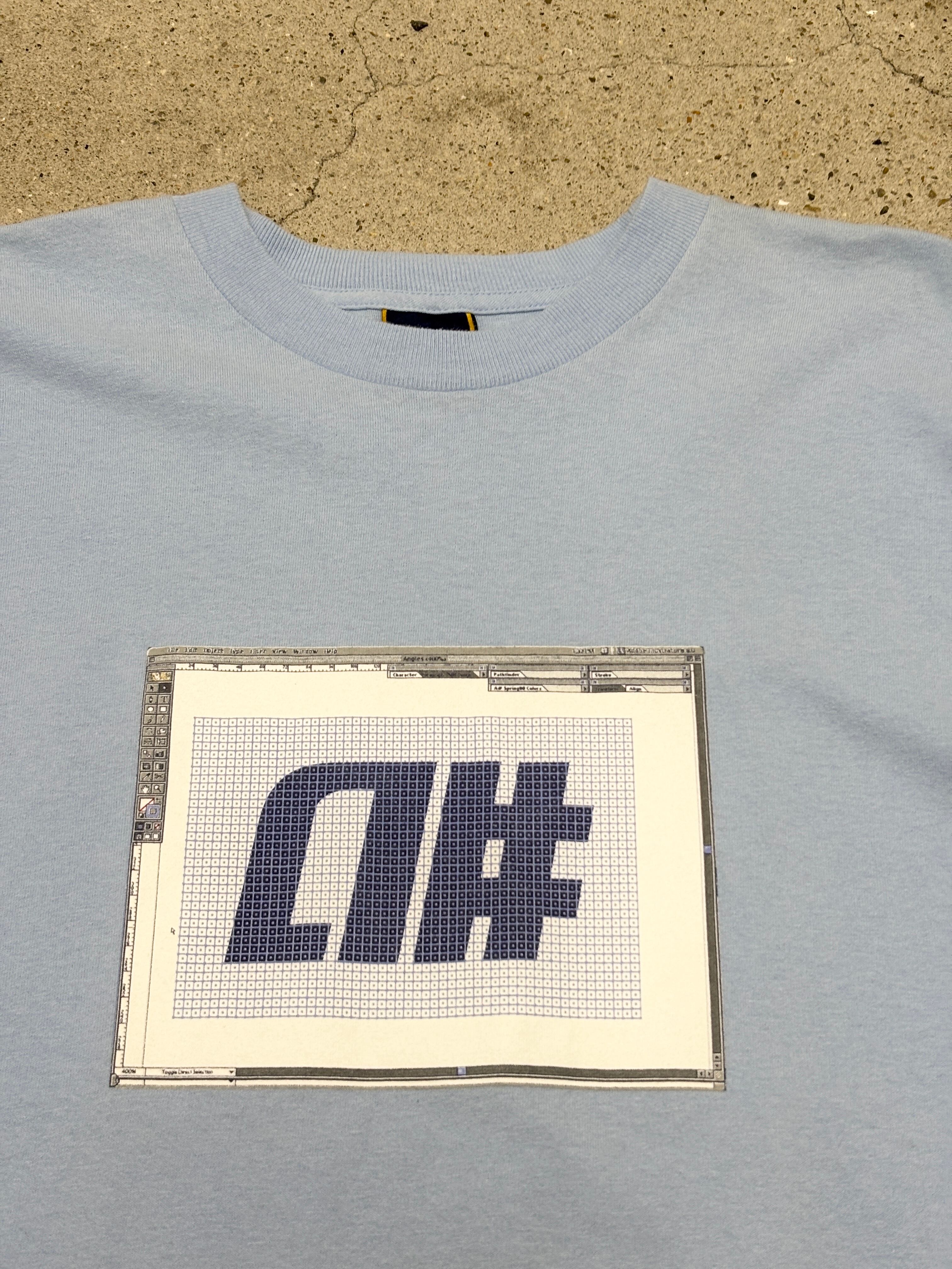 90s ALPHANUMERIC/Logo print Tee/USA製/XL/ロゴプリントTシャツ/α♯/アイスブル-/アルファヌメリック