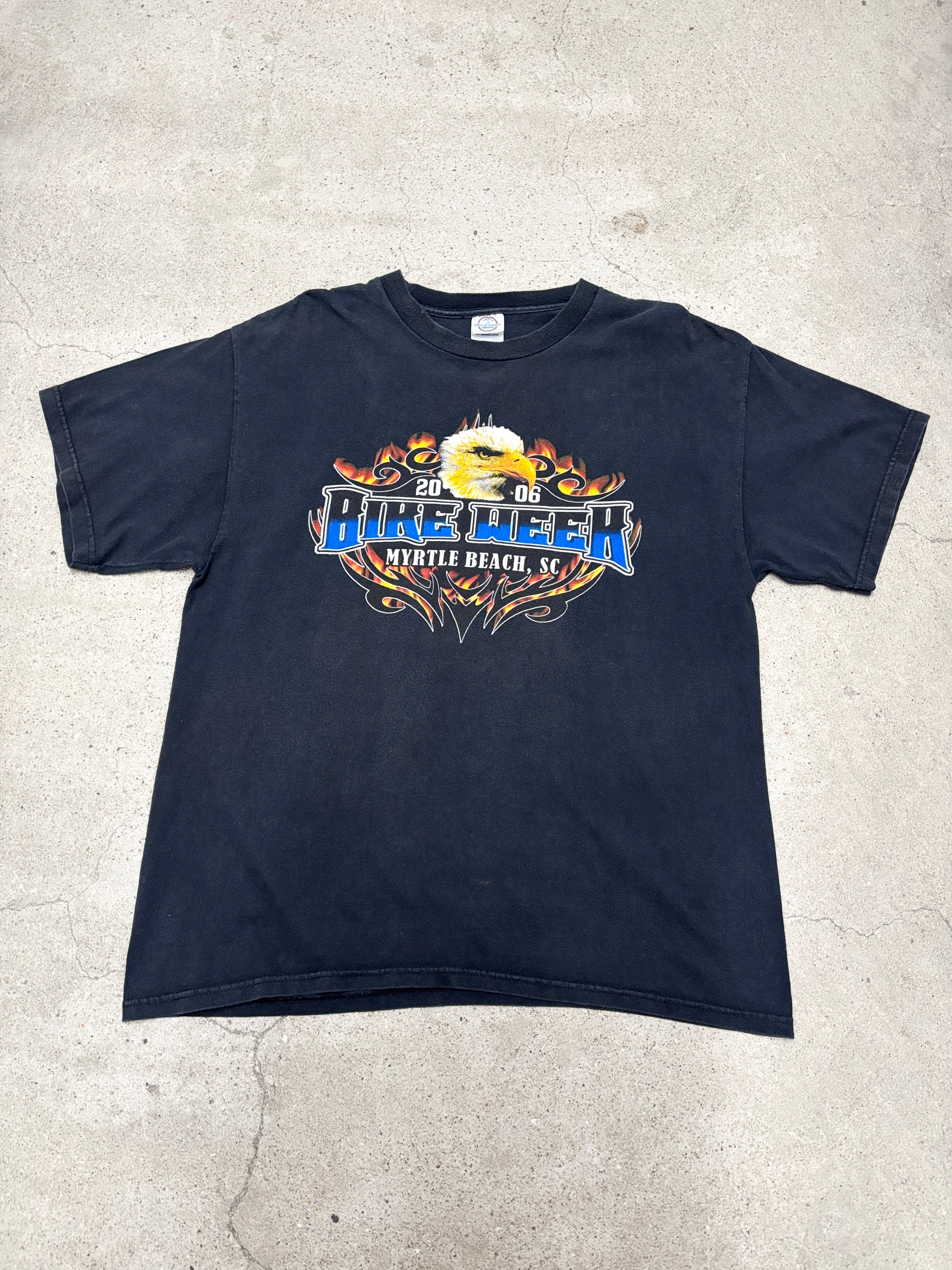 00s MYRTLE BEACH BIKE WEEK'06/Motorcycle Tee/2006年/L/モータ-サイクルTシャツ/ロゴプリント/イ-グル/フレイム/トライバル/バイク/ブラック/バイクウィ-ク/古着