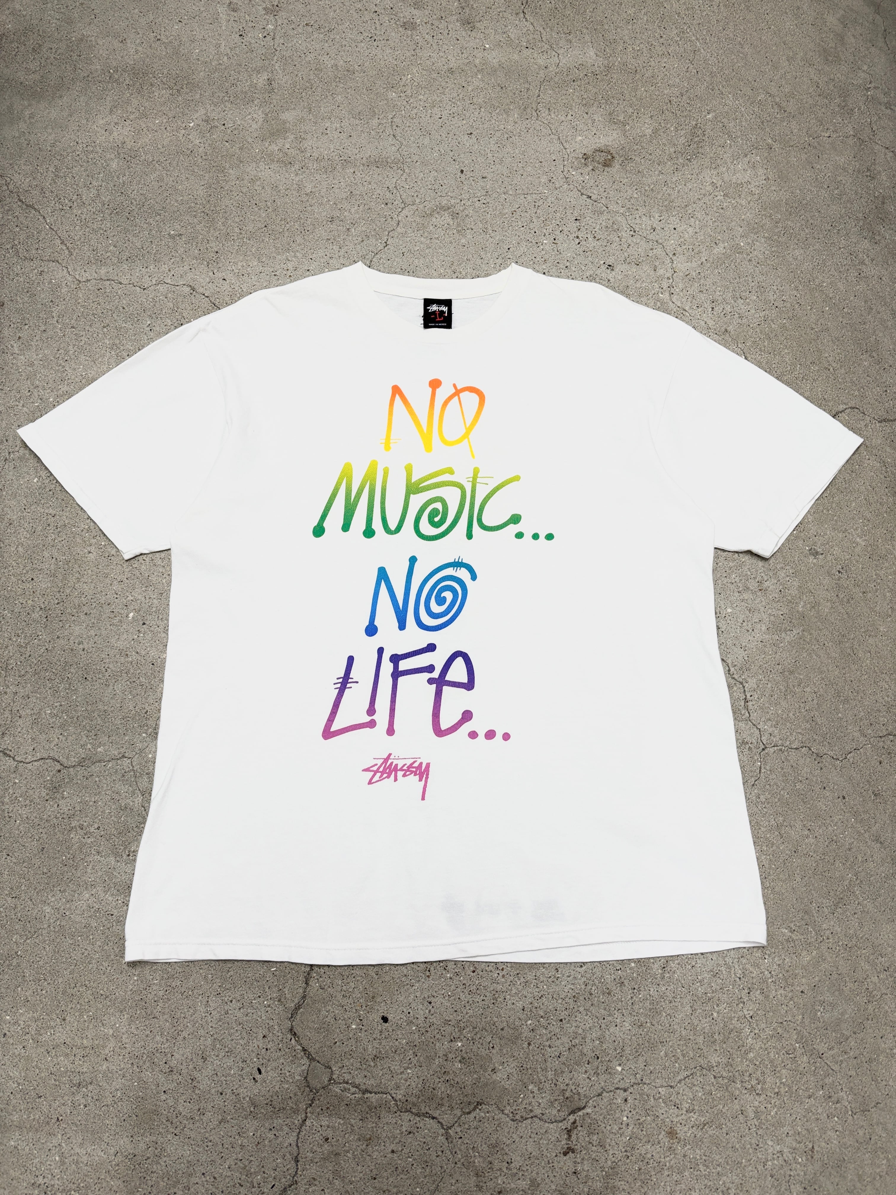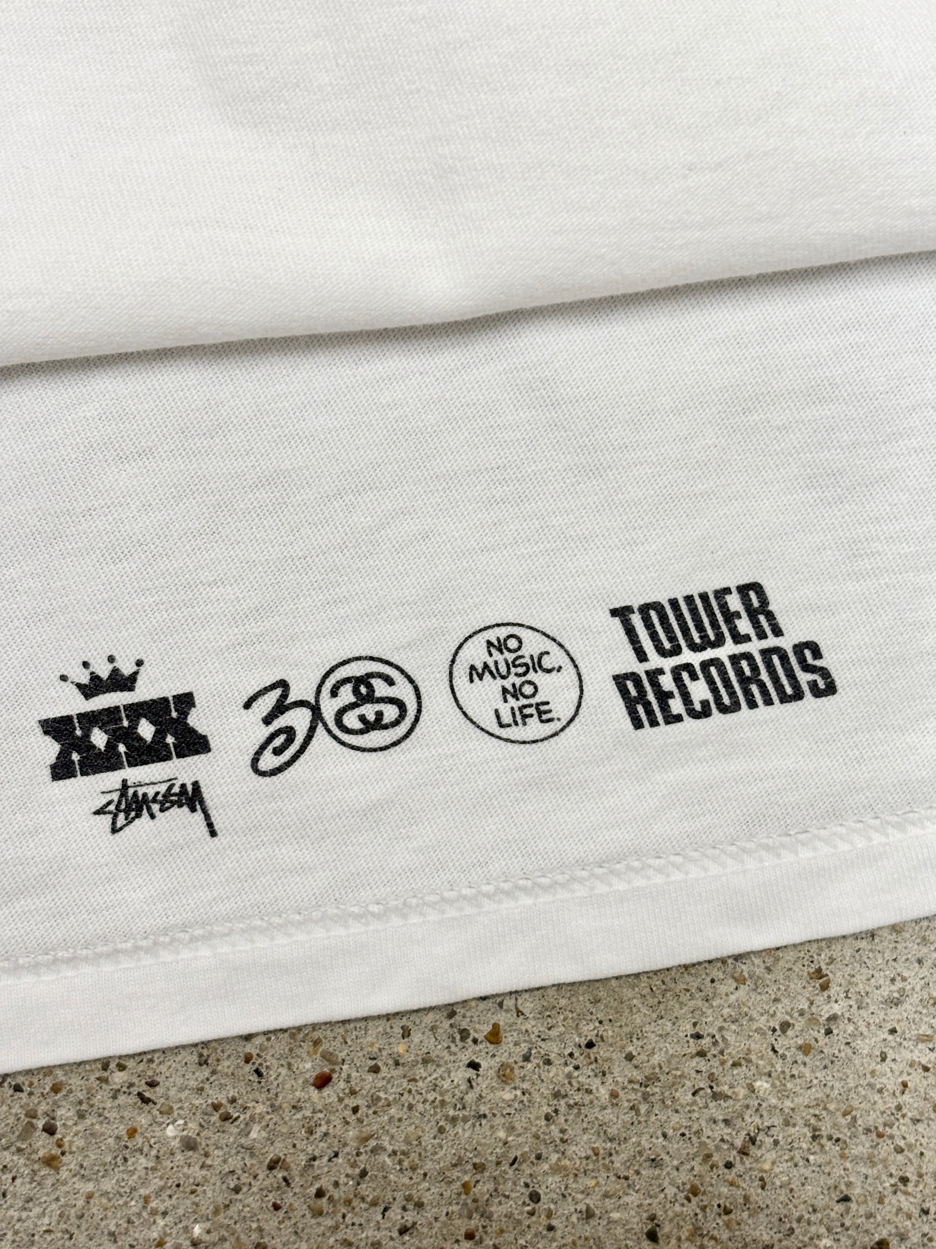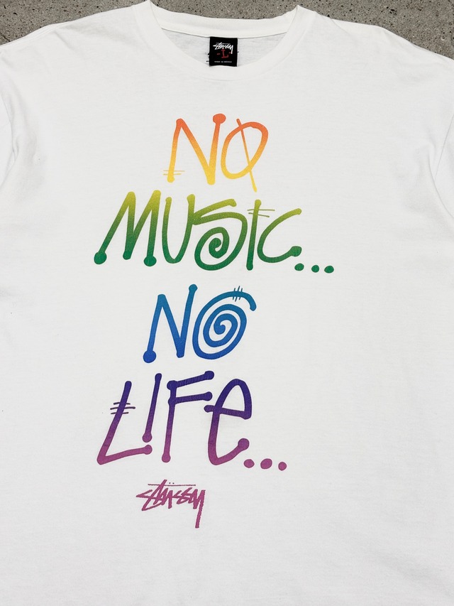 10s STUSSY × TOWER RECORDS NO MUSIC NO LIFE Tee/30th Anniversary/L/30周年記念Tシャツ/レインボ-カラ-/ホワイト/タワーレコードコラボ/ステューシー