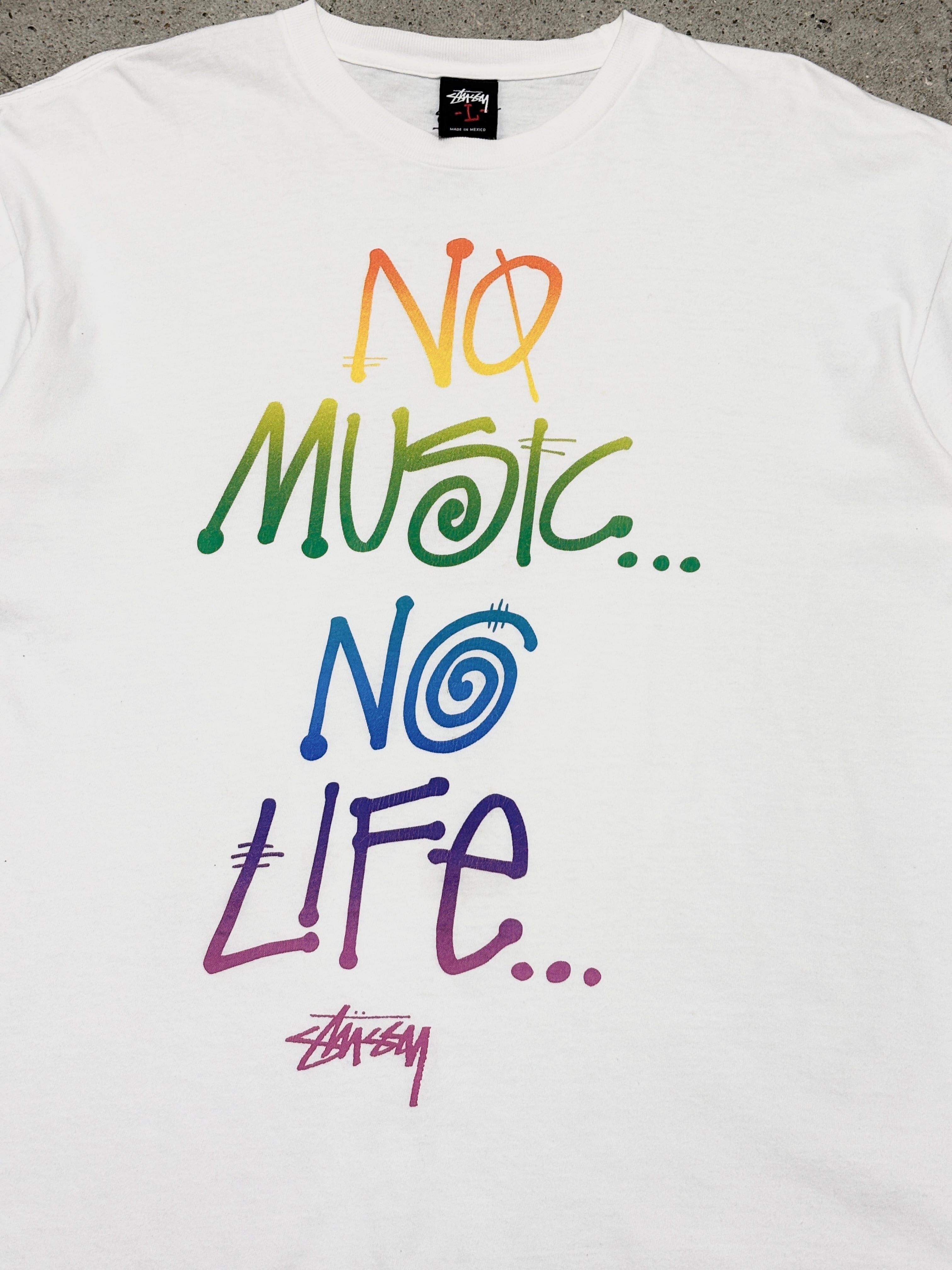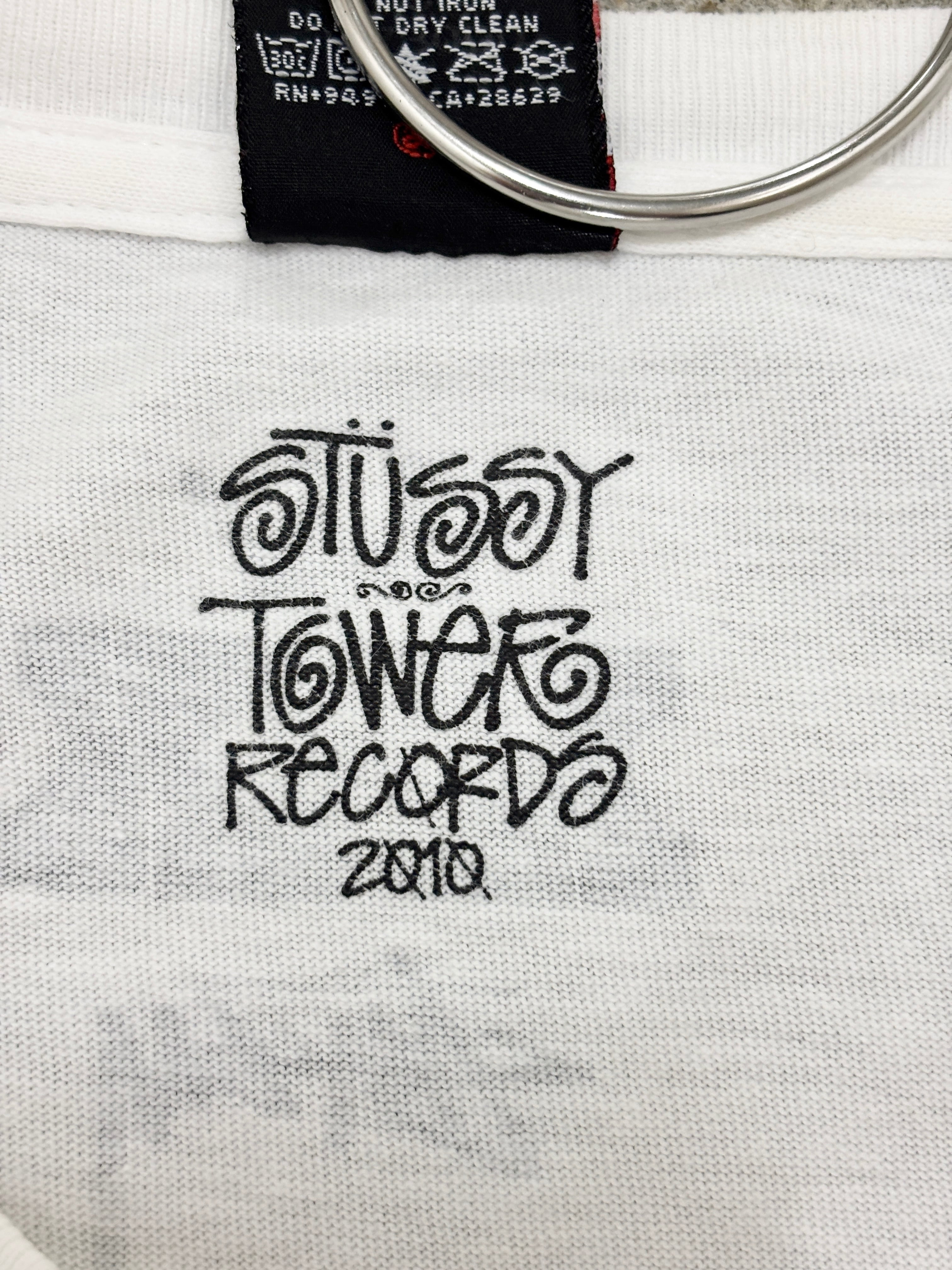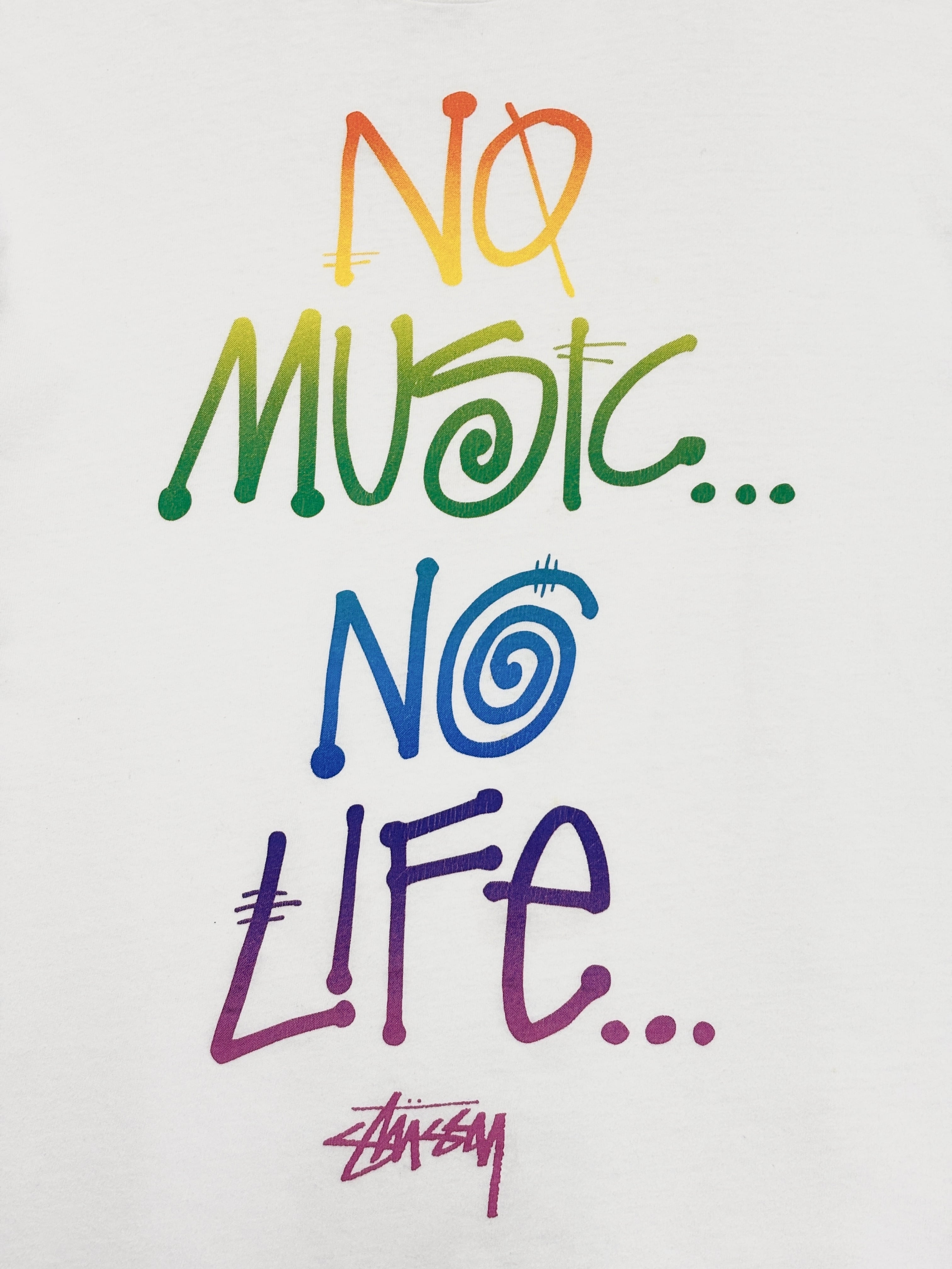 10s STUSSY × TOWER RECORDS NO MUSIC NO LIFE Tee/30th Anniversary/L/30周年記念Tシャツ/レインボ-カラ-/ホワイト/タワーレコードコラボ/ステューシー/古着/ア―カイブ