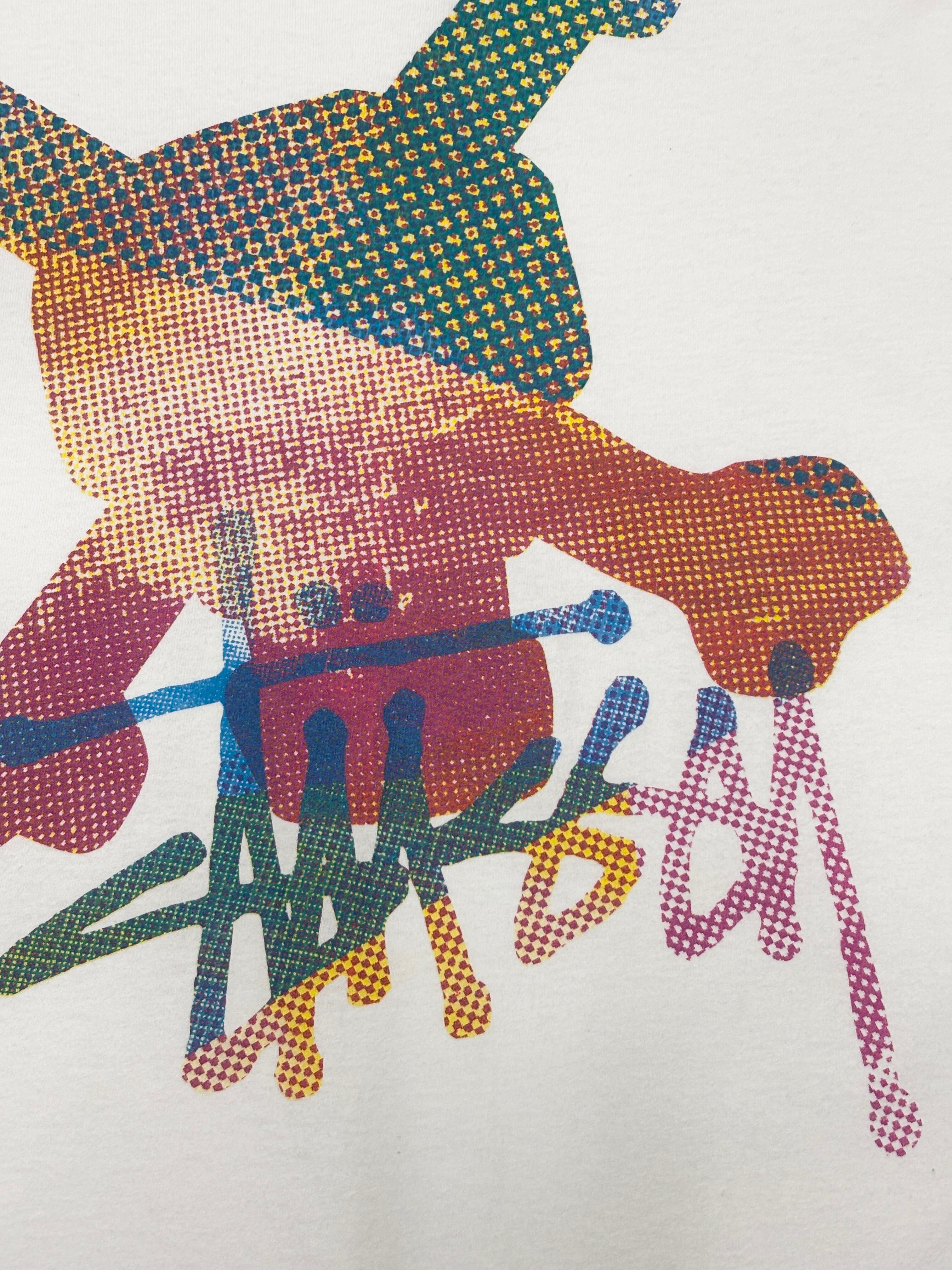 00~10s STUSSY/Skull print Tee/XL/スカルプリントTシャツ/ストックロゴ/ロゴプリント/ホワイト/ステューシー/古着/ア―カイブ