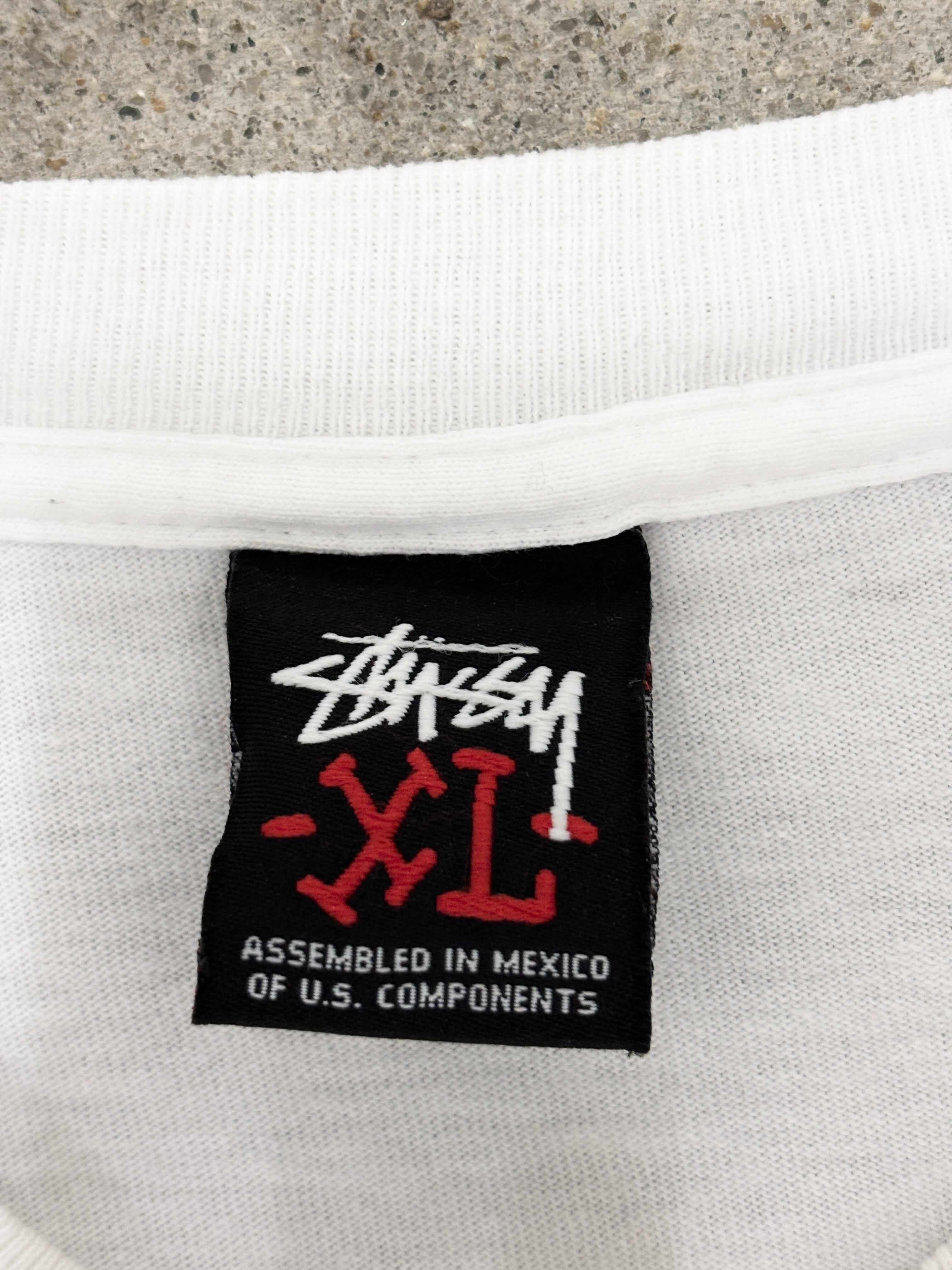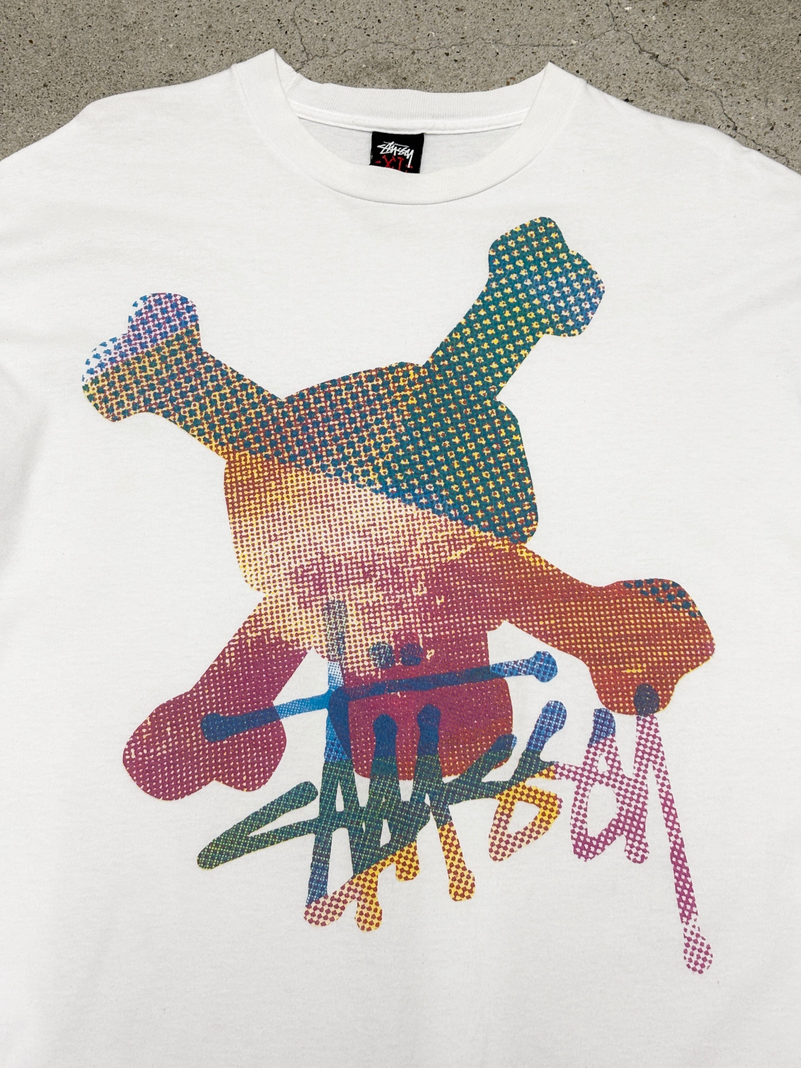 00~10s STUSSY/Skull print Tee/XL/スカルプリントTシャツ/ストックロゴ/ロゴプリント/ホワイト/ステューシー