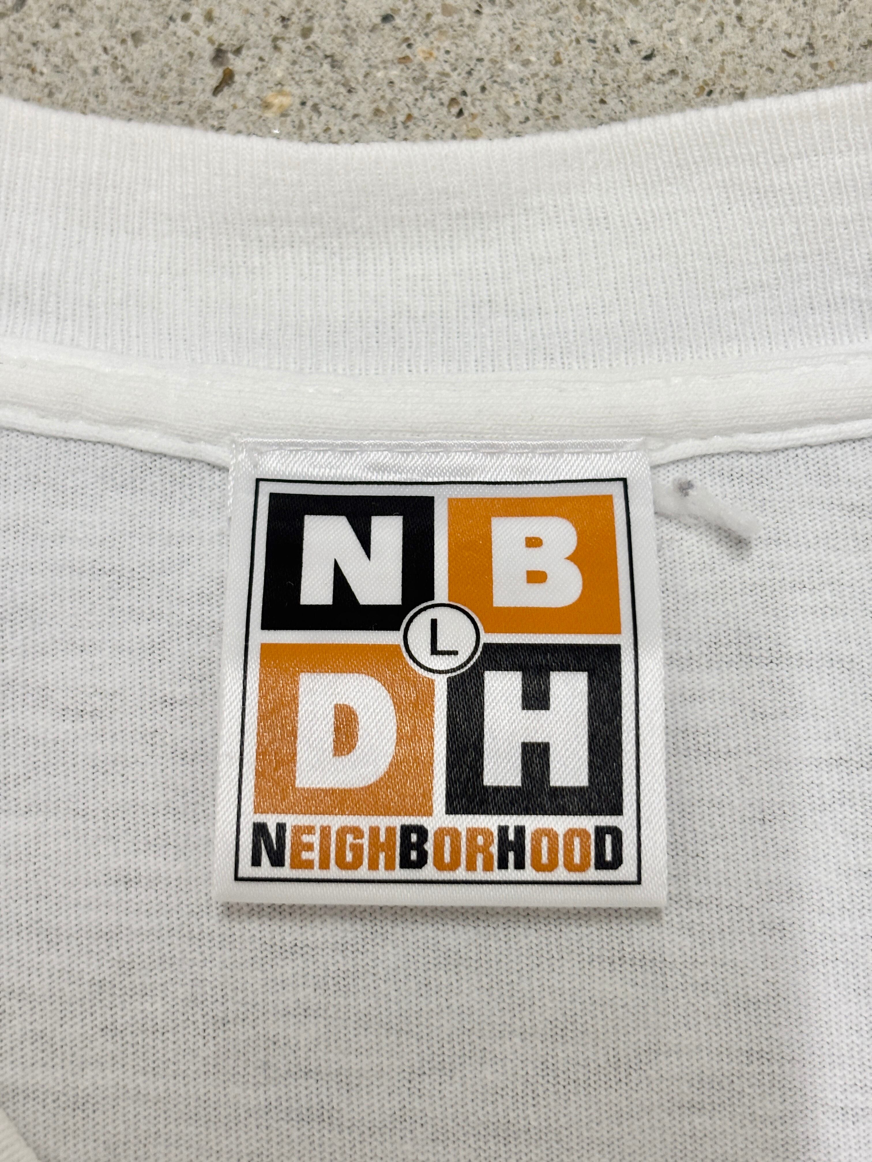 90~00s NEIGHBORHOOD/NBHD Logo print Tee/USA製/L/ロゴプリントTシャツ/グラフィックデザイン/ホワイト/ネイバーフッド