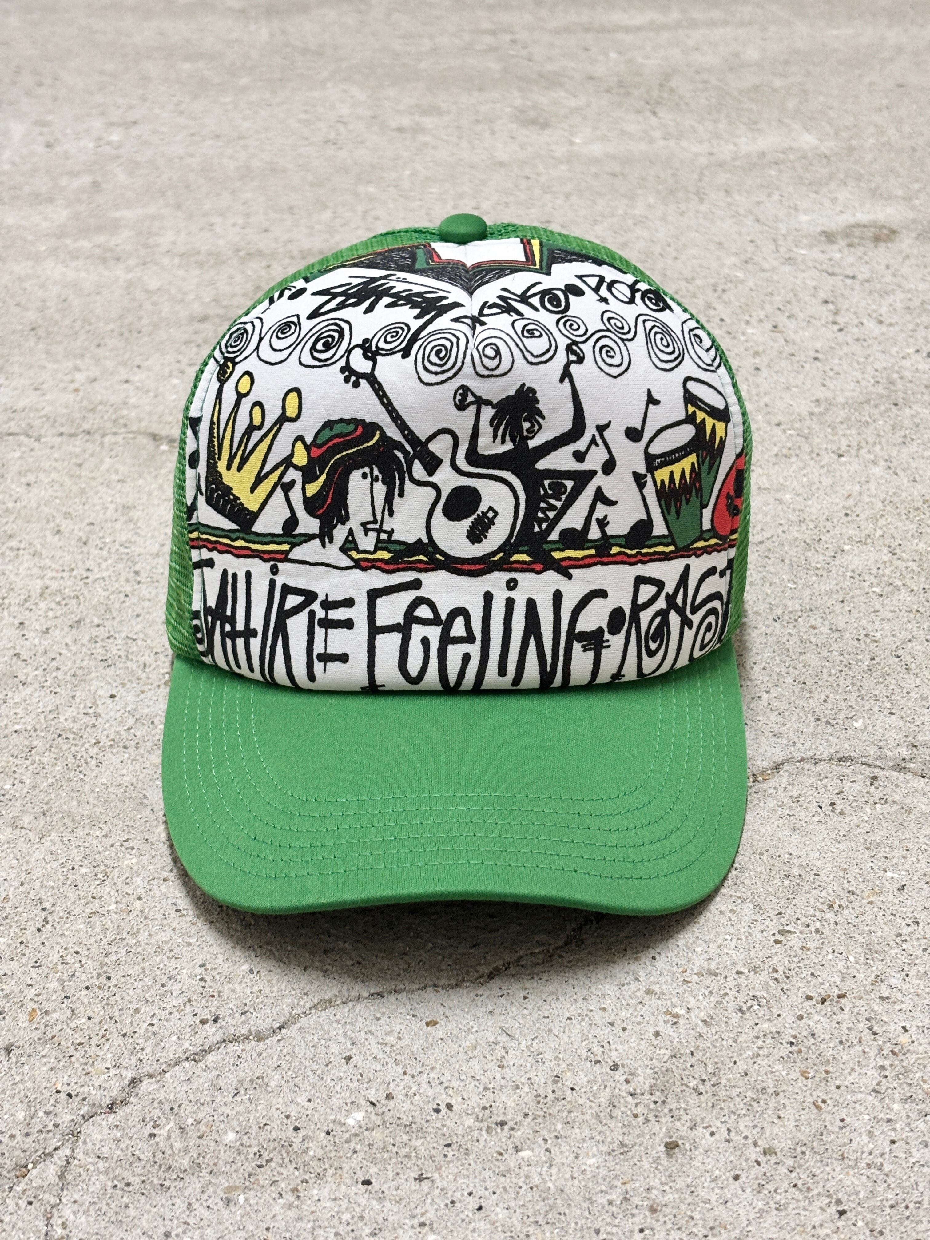 00s OLD STUSSY/Rasta Design Mesh Cap/Free/ラスタデザイン/メッシュキャップ/JAHIRIE FEELING RASTA/グリ-ン/ステューシー/オ-ルドステューシー/帽子/ア―カイブ