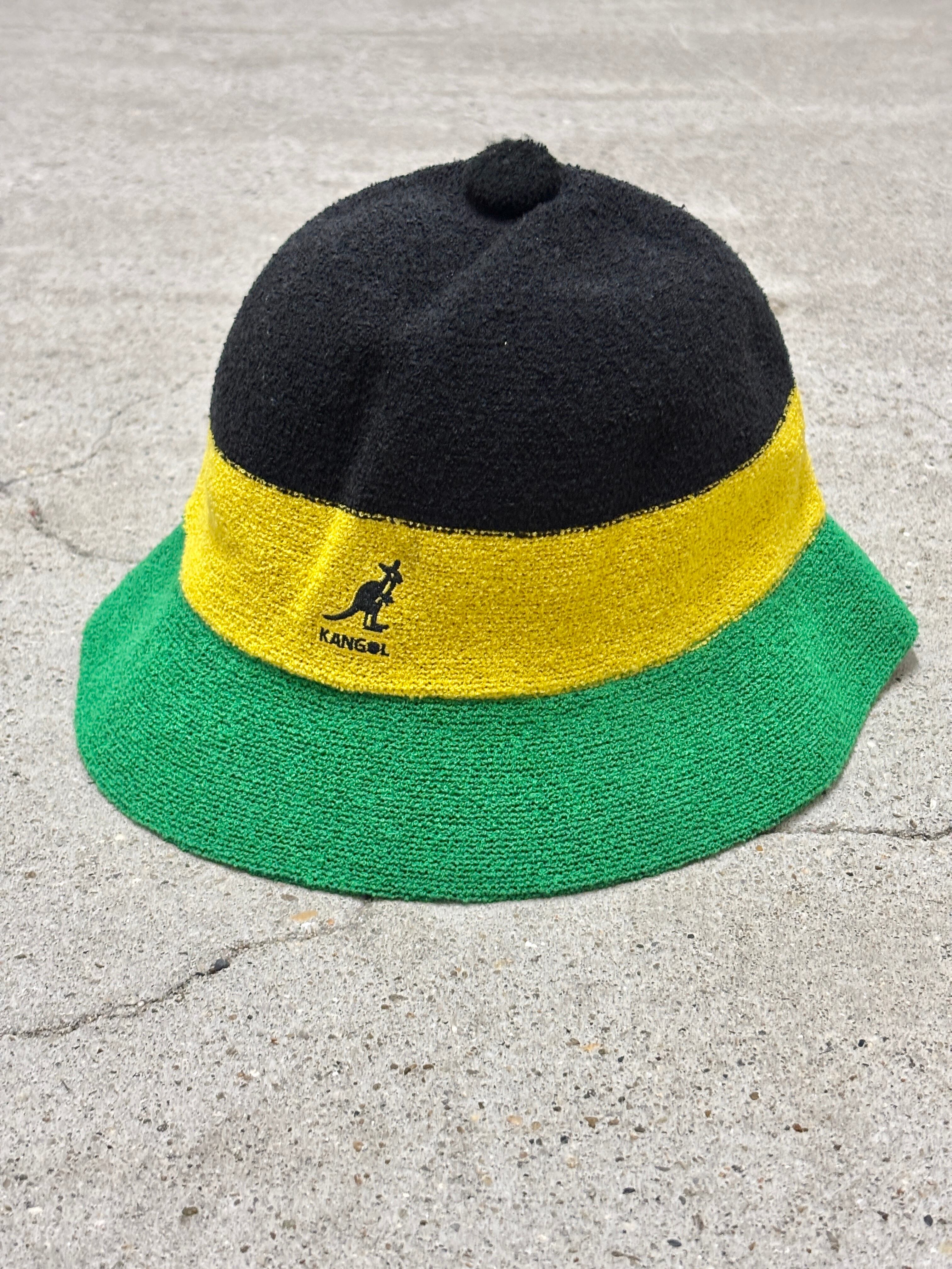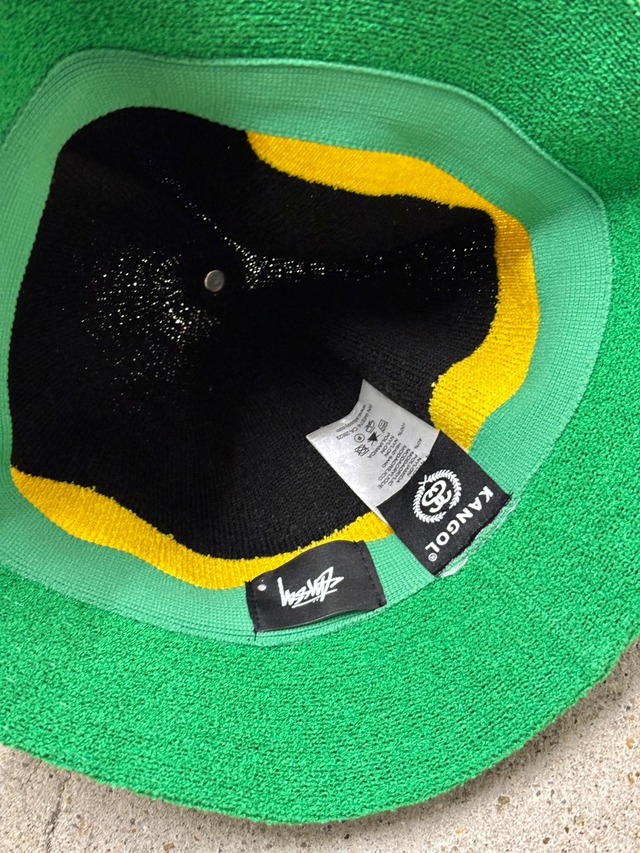 10s STUSSY × KANGOL/BERMUDA CASUAL/2015年/L/バミュ-ダカジュアル/ハット/ストックロゴ/ブラック/グリ-ン/イエロ-/カンゴ-ルコラボ/ステューシー/帽子/ア―カイブ