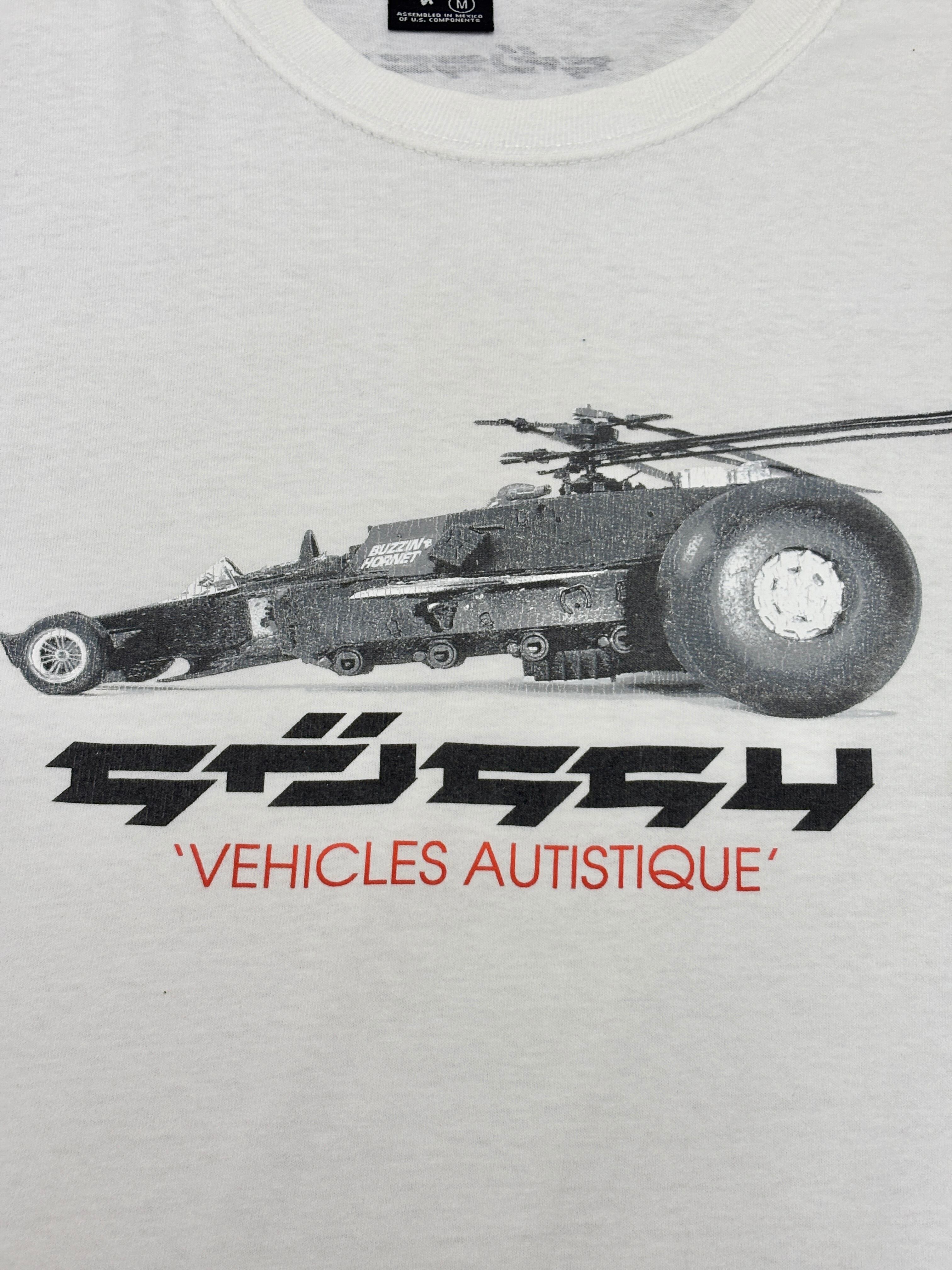 00s OLD STUSSY/VEHICLES AUTISTIQUE print Tee/M/ロゴプリント/戦車/Tシャツ/ホワイト/ステューシー/オ-ルドステューシー