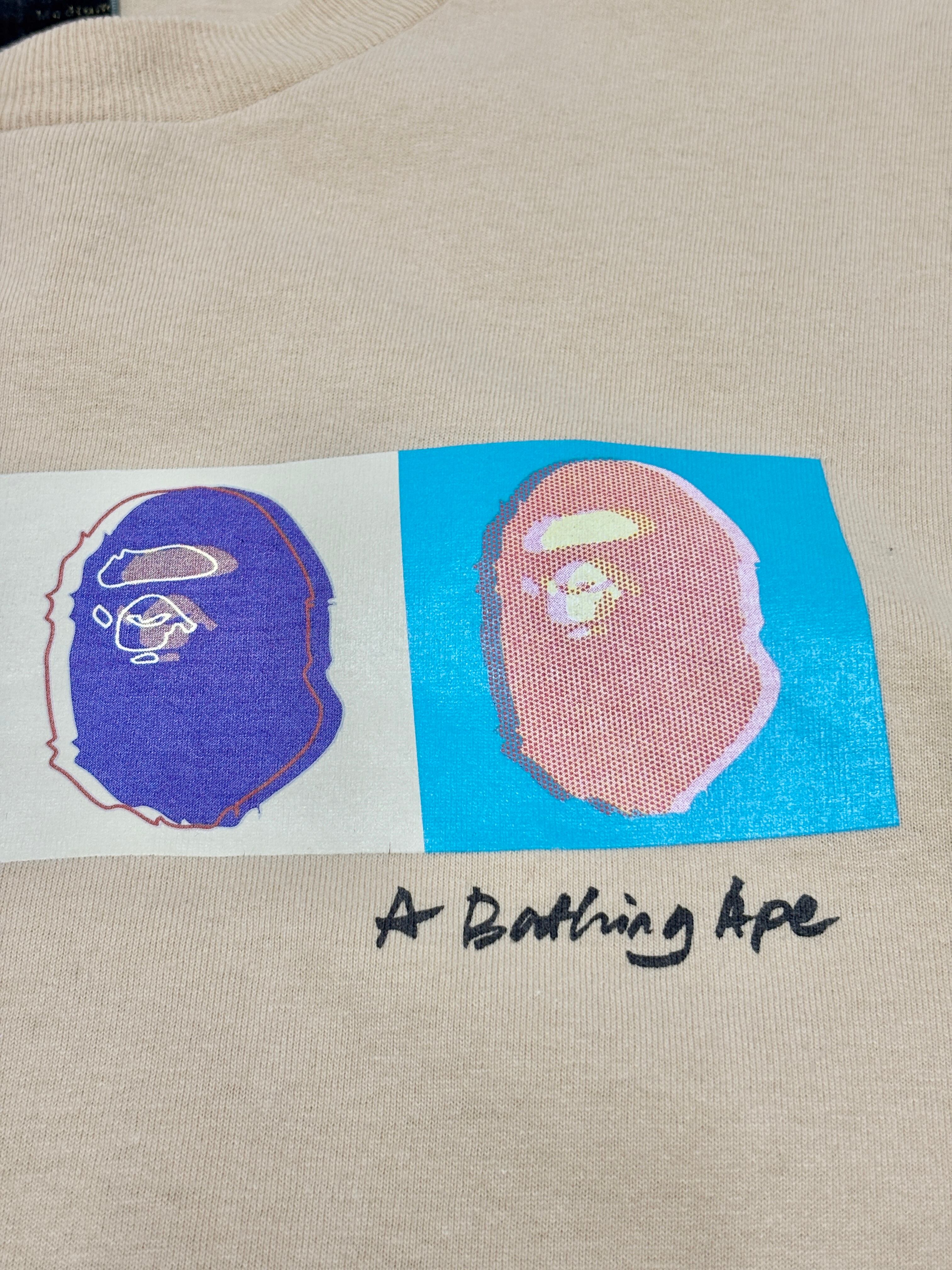 00s A BATHING APE/Andy Warhol parody print Tee/M/アンディ-ウォーホルパロディープリント/Tシャツ/ロゴプリント/フェイス/ベ-ジュ/BAPE/アベイシングエイプ/裏原/古着/ア―カイブ