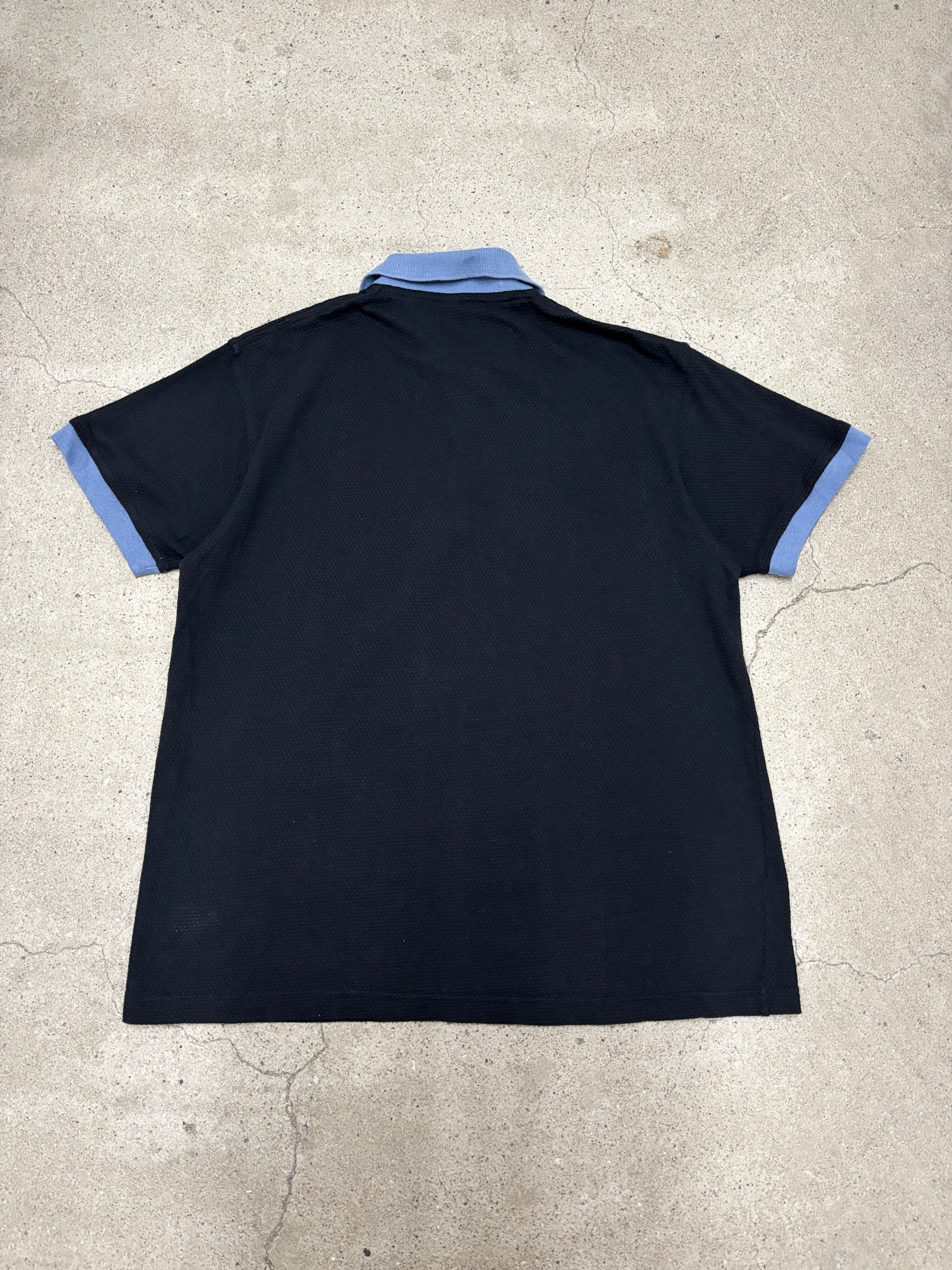 90~00s OLD STUSSY/Mesh Polo Shirt/USA製/M/メッシュポロシャツ/刺繍ロゴ/ハ-フジップ/ブラック/ステューシー/オ-ルドステューシー/古着/ア―カイブ
