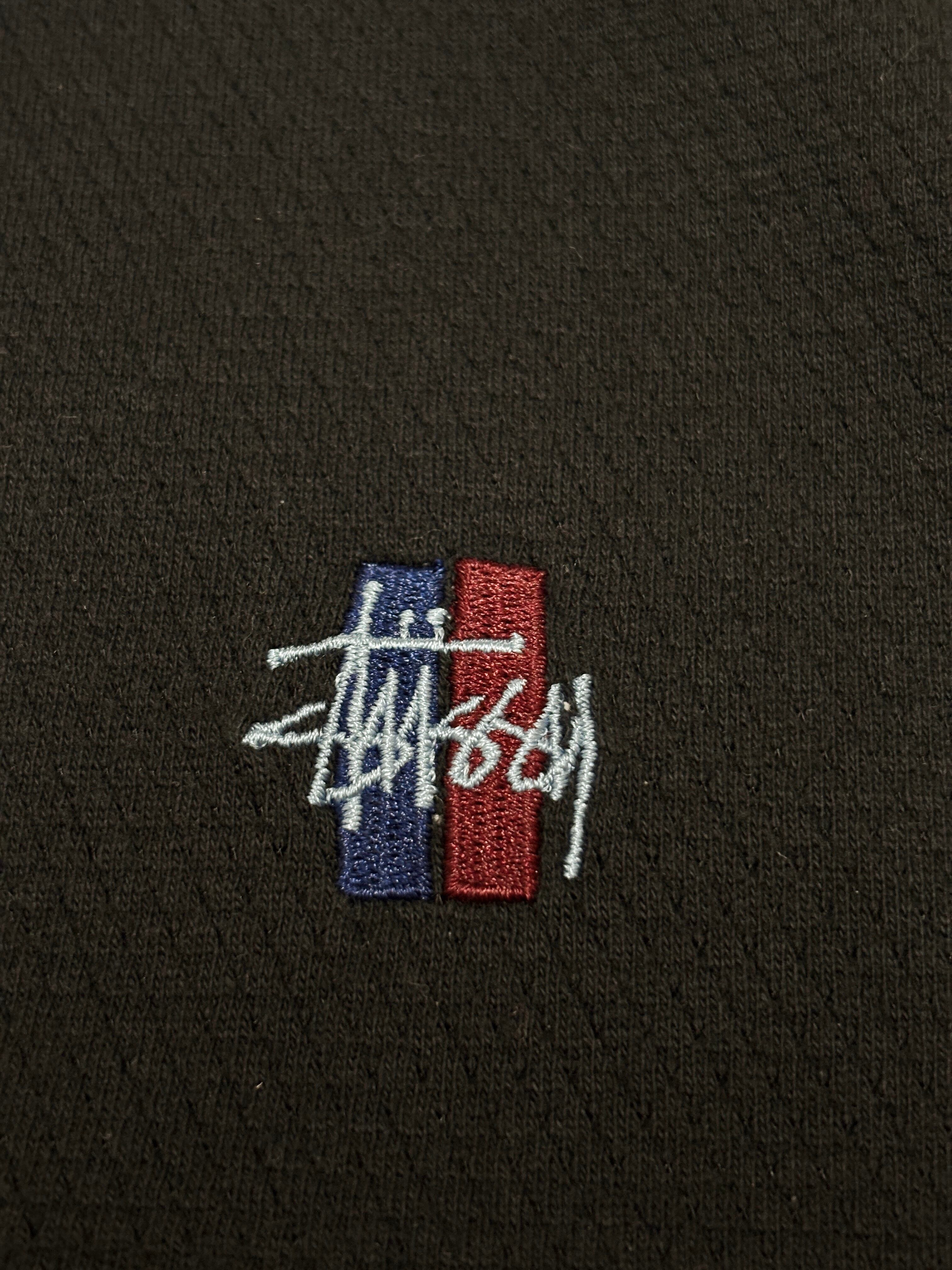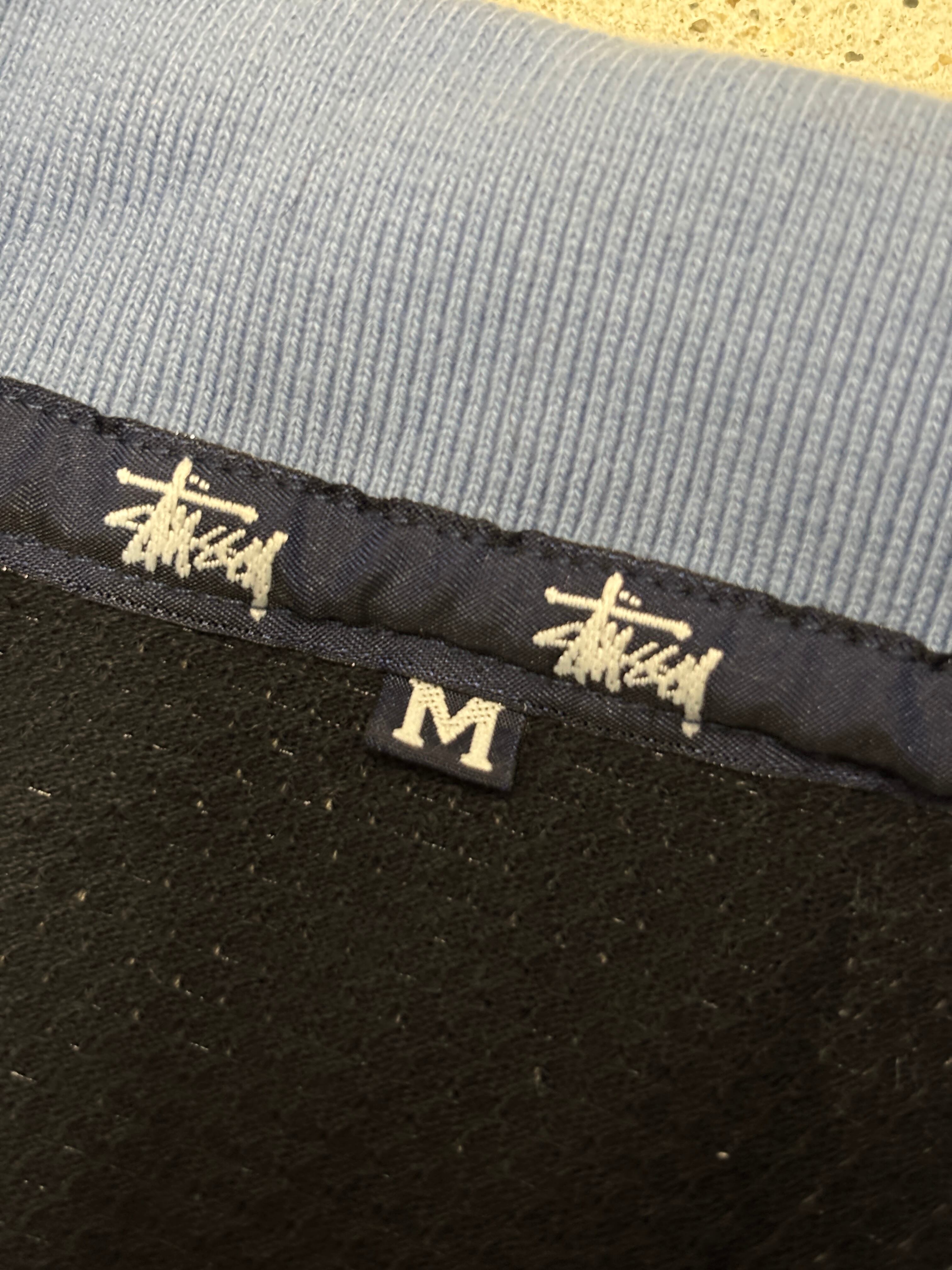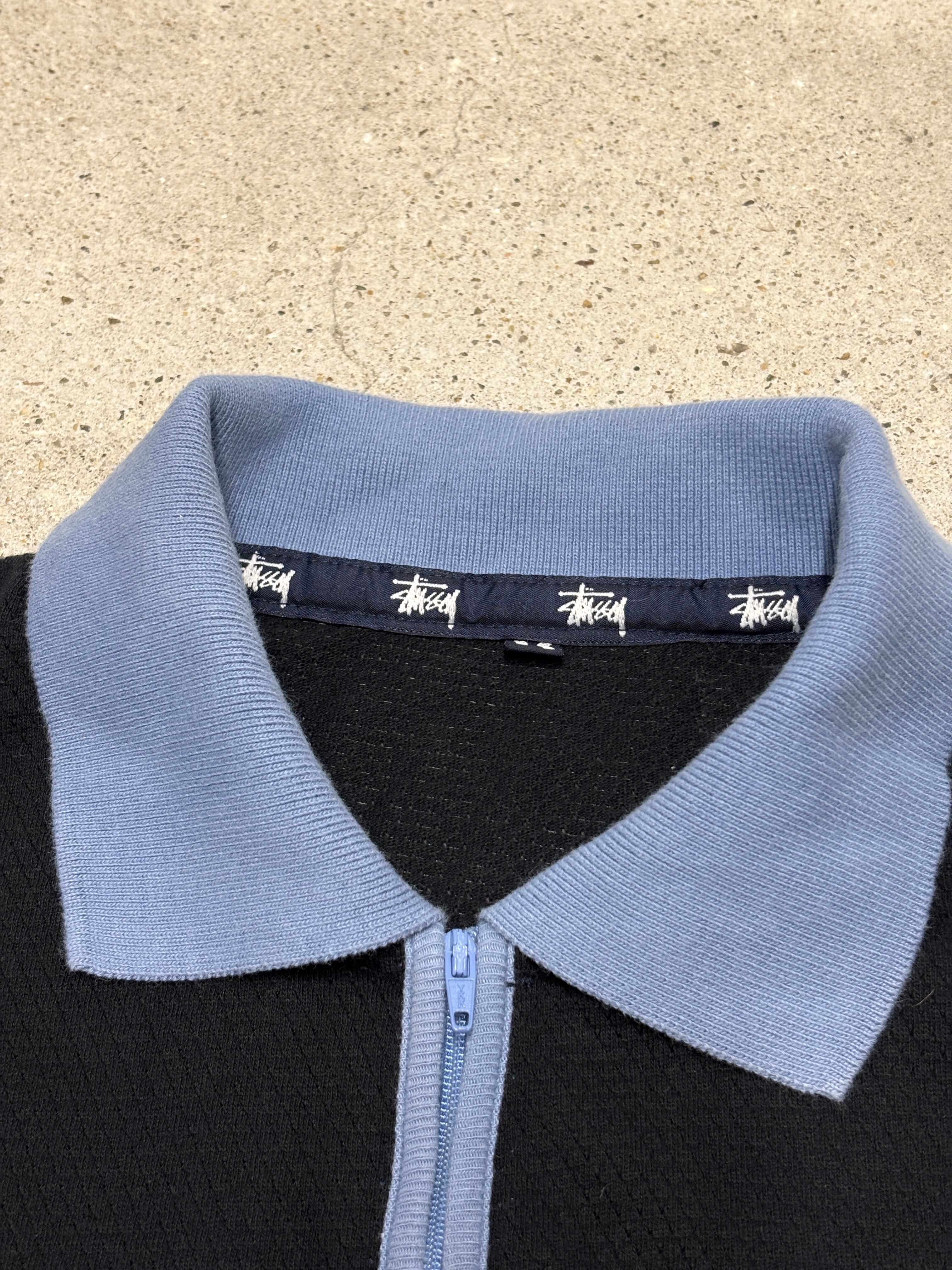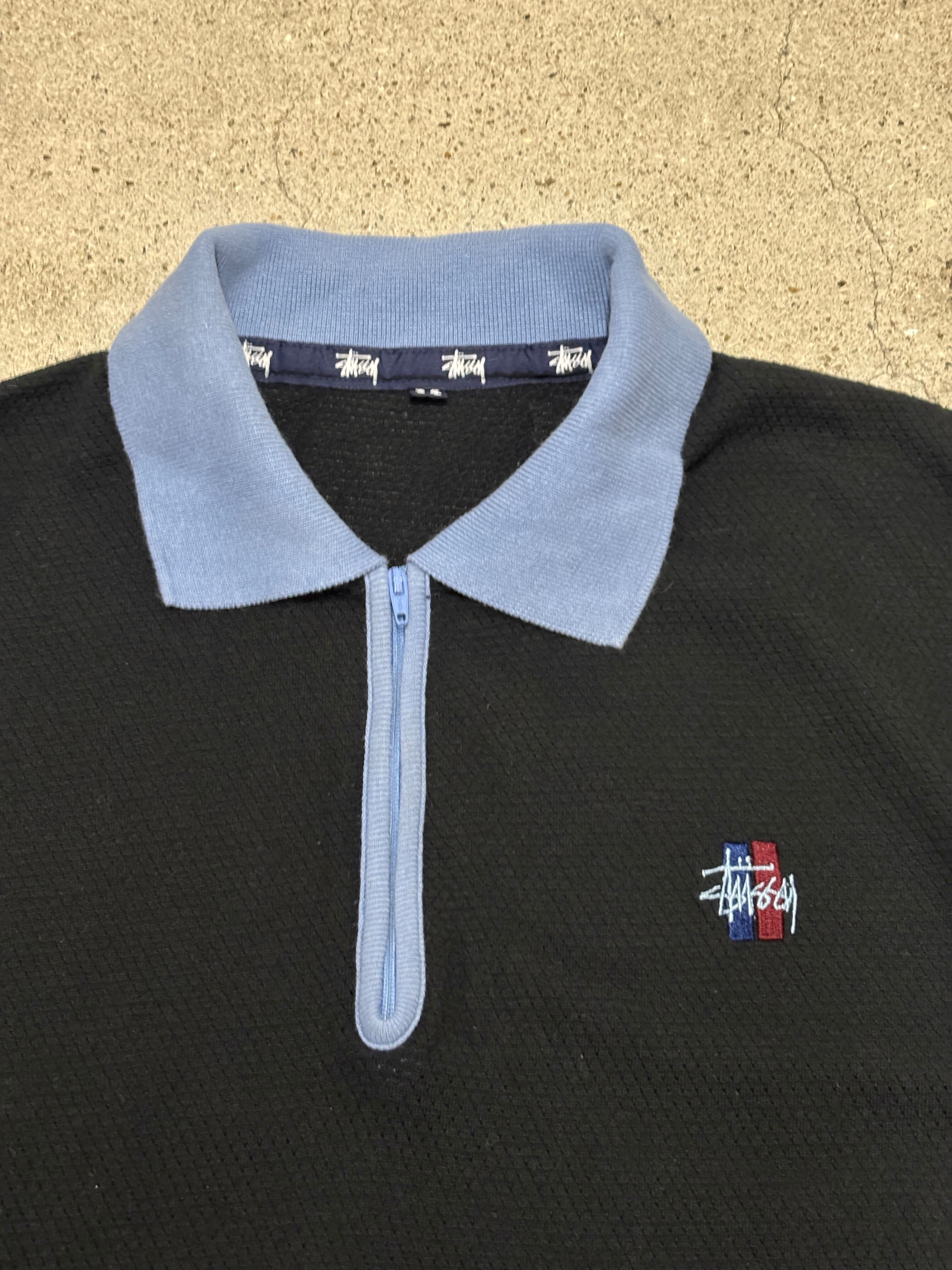 90~00s OLD STUSSY/Mesh Polo Shirt/USA製/M/メッシュポロシャツ/刺繍ロゴ/ハ-フジップ/ブラック/ステューシー/オ-ルドステューシー