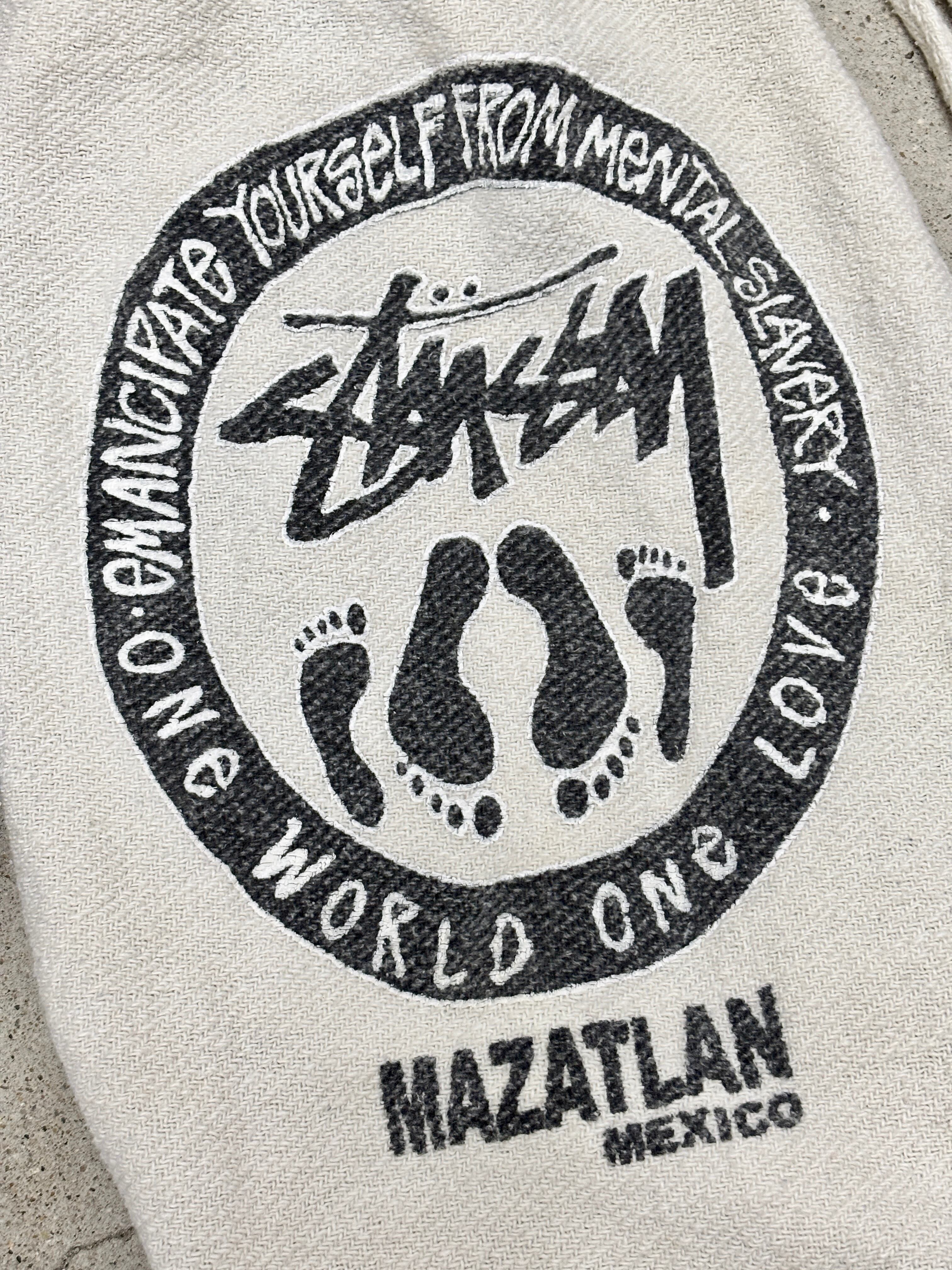 Bootleg STUSSY/Shoulder Bag/ショルダ-バッグ/ナップサック/リュック/ロゴプリント/クリ-ム/ブ-トレグ/ステューシー/古着