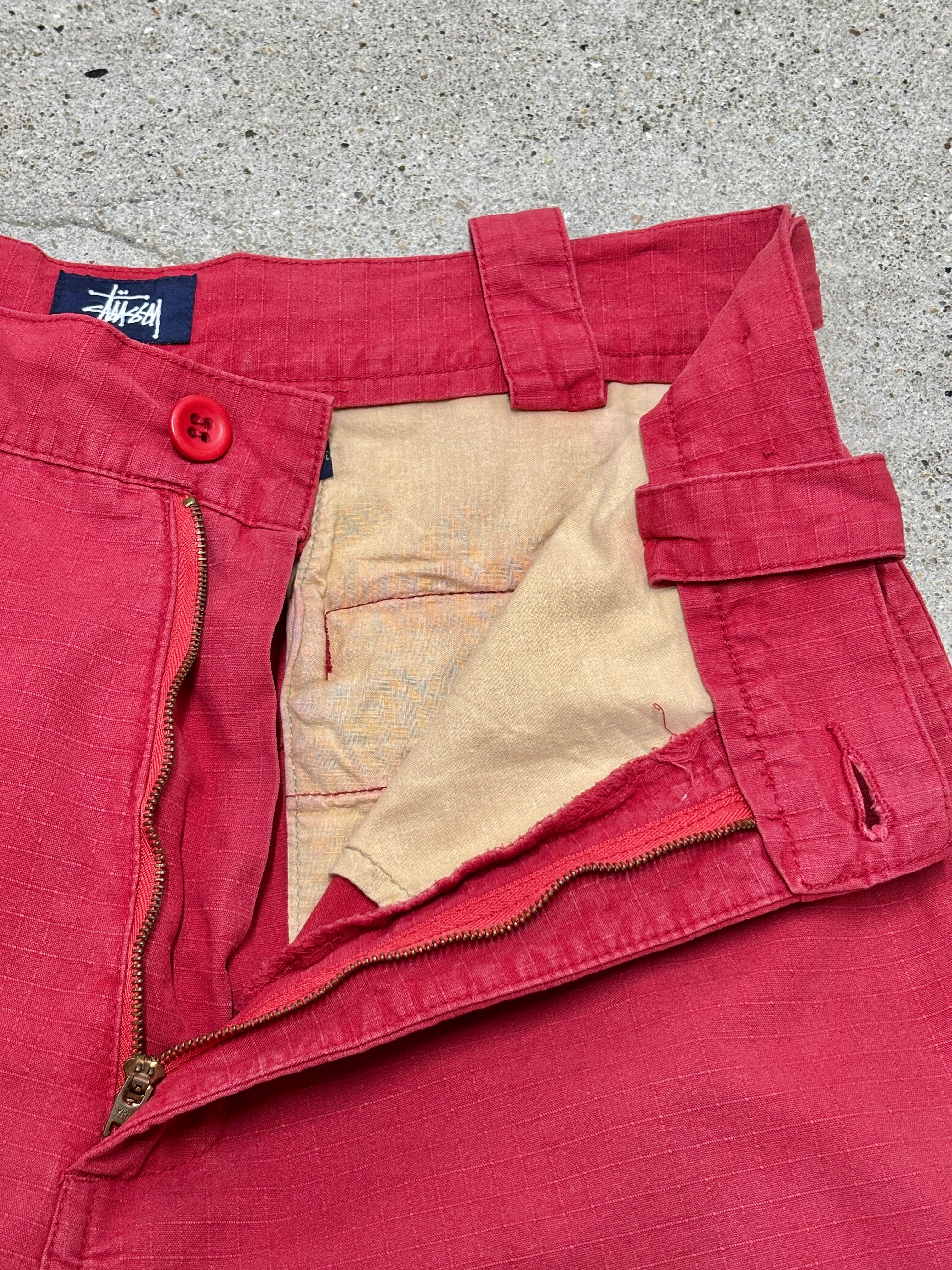 00s OLD STUSSY/Cargo Shorts/紺タグ/W31/カ-ゴショ-ツ/ショ-トパンツ/刺繍ロゴ/ストックロゴ/レッド/ステューシー/オ-ルドステューシー