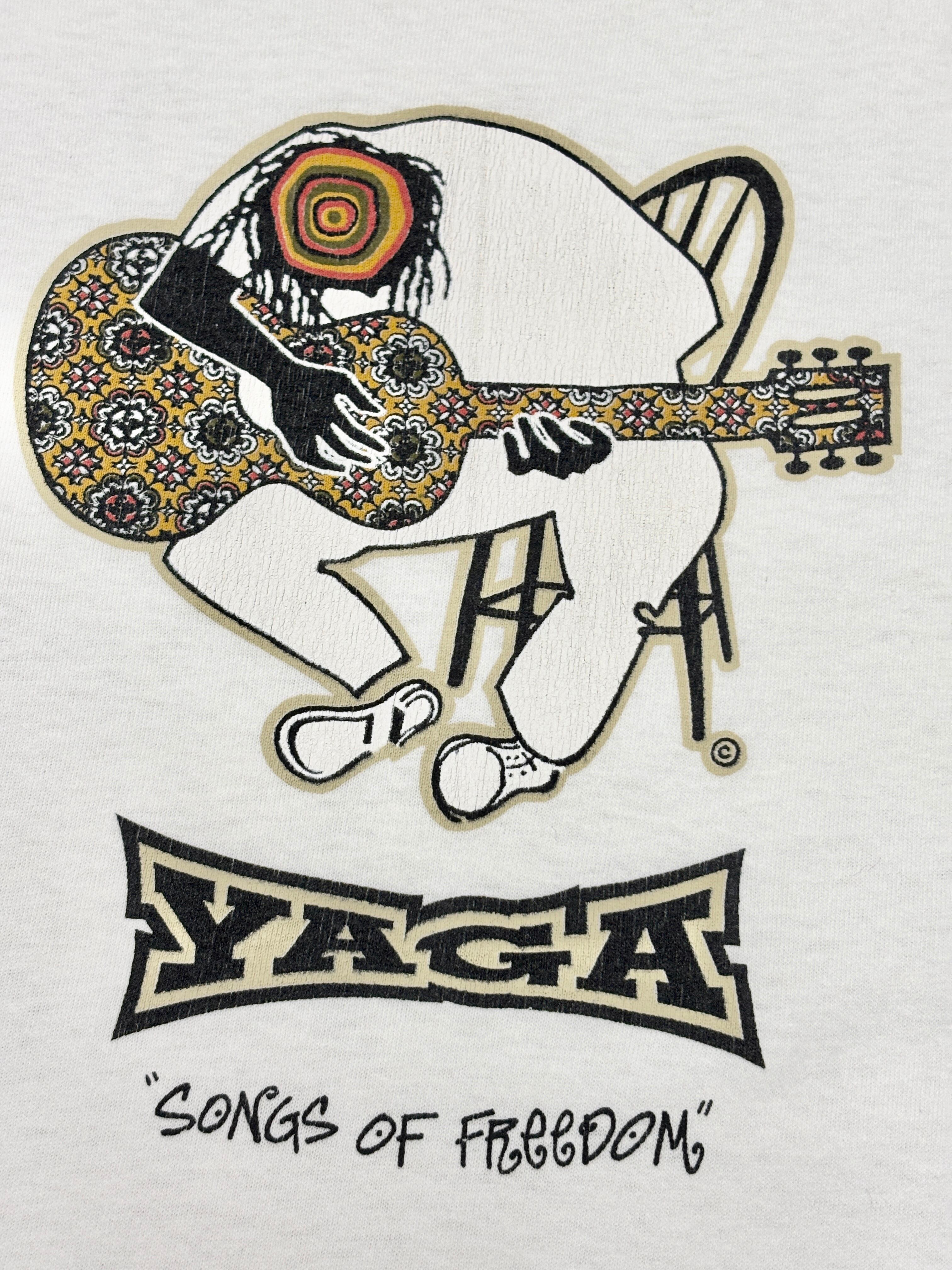 90s YAGA/Logo print Tee/USA製/L/ロゴプリントTシャツ/レゲエ/ラスタ/ホワイト/ヤガ