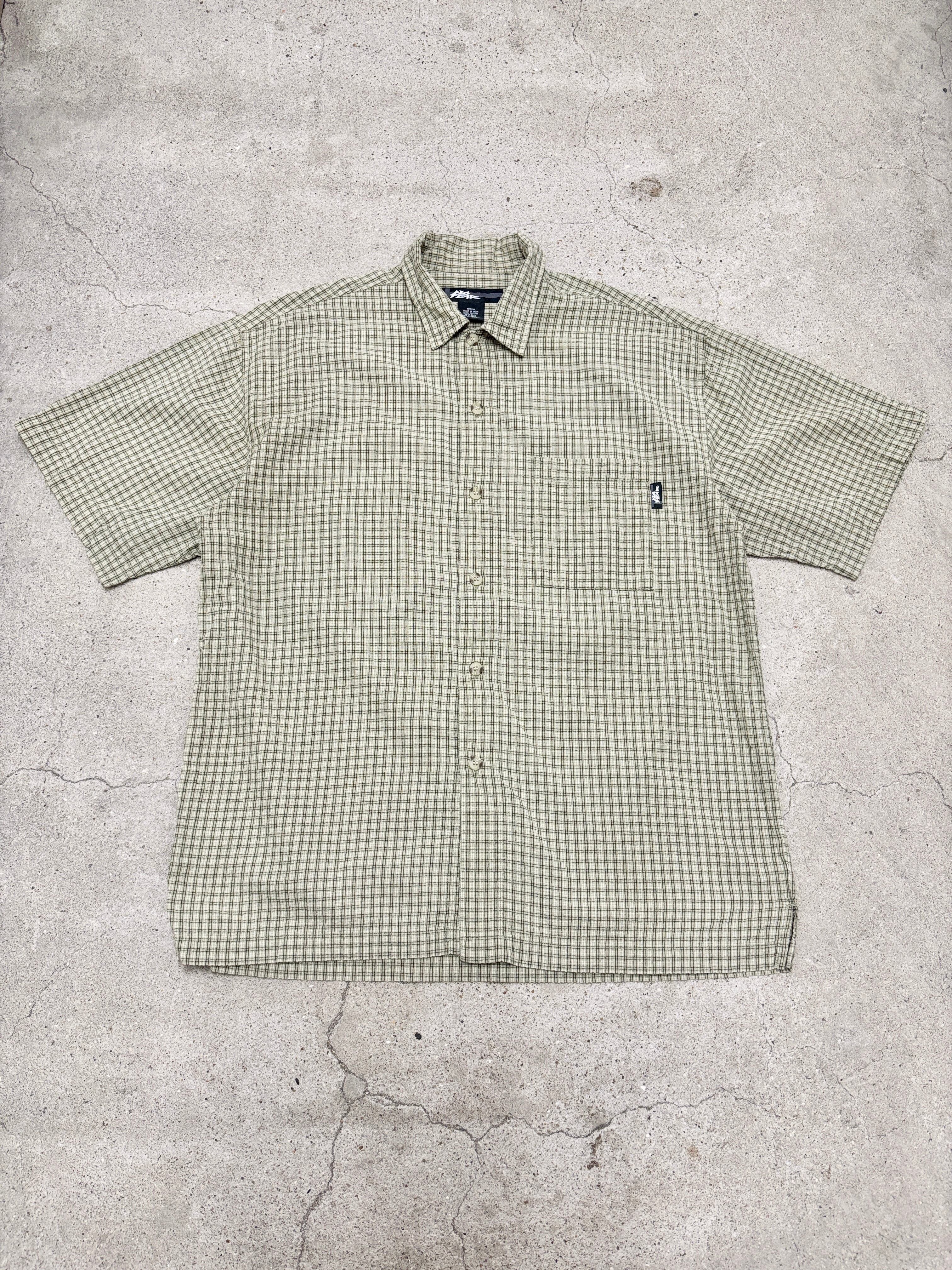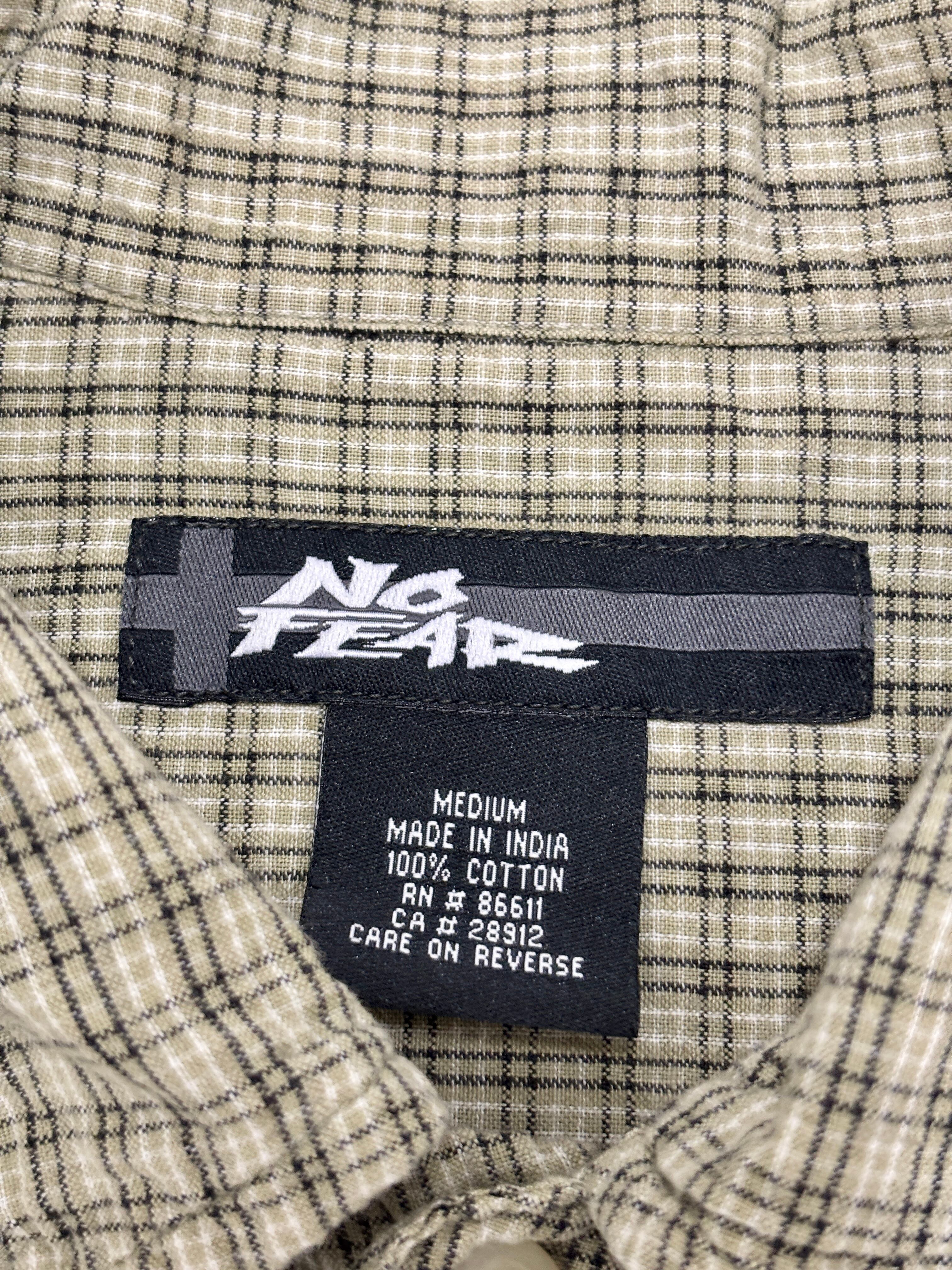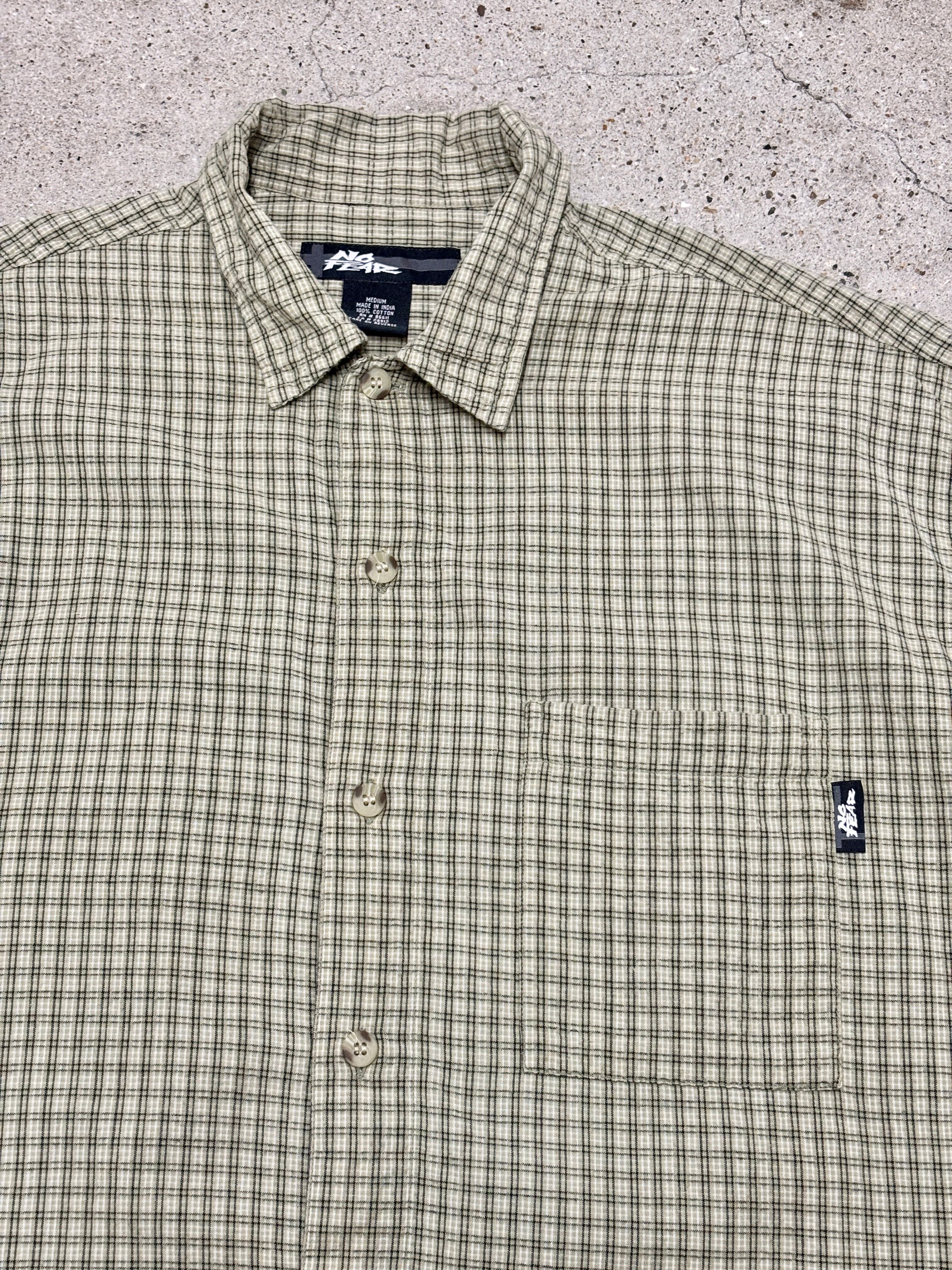 00s NO FEAR/Check S/S Shirt/INDIA製/M/チェック柄半袖シャツ/カ-キ/ベ-ジュ/ノ-フィア-/古着