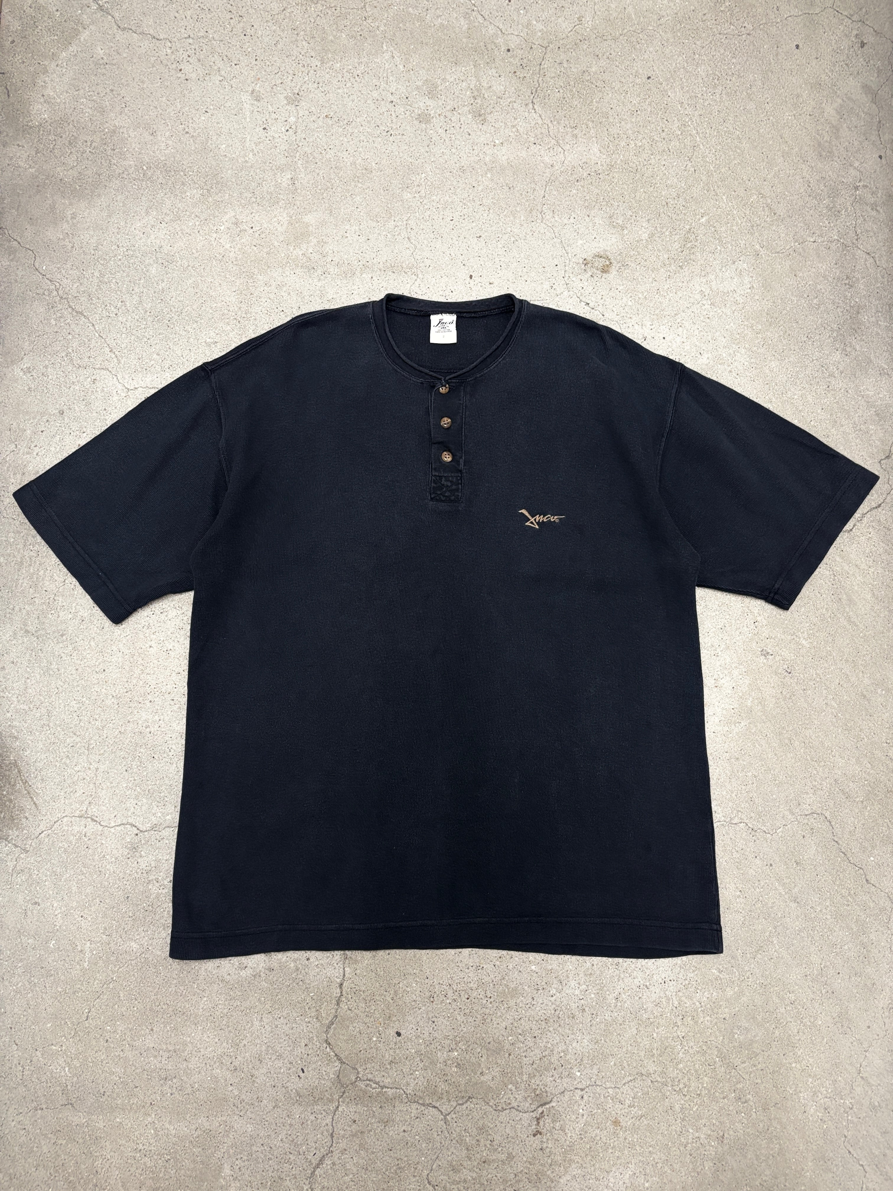 90s JNCO/Henry neck Tee/USA製/2/XXL相当/ヘンリ-ネックTシャツ/サ-マル/刺繍ロゴ/ブラック/ジンコ