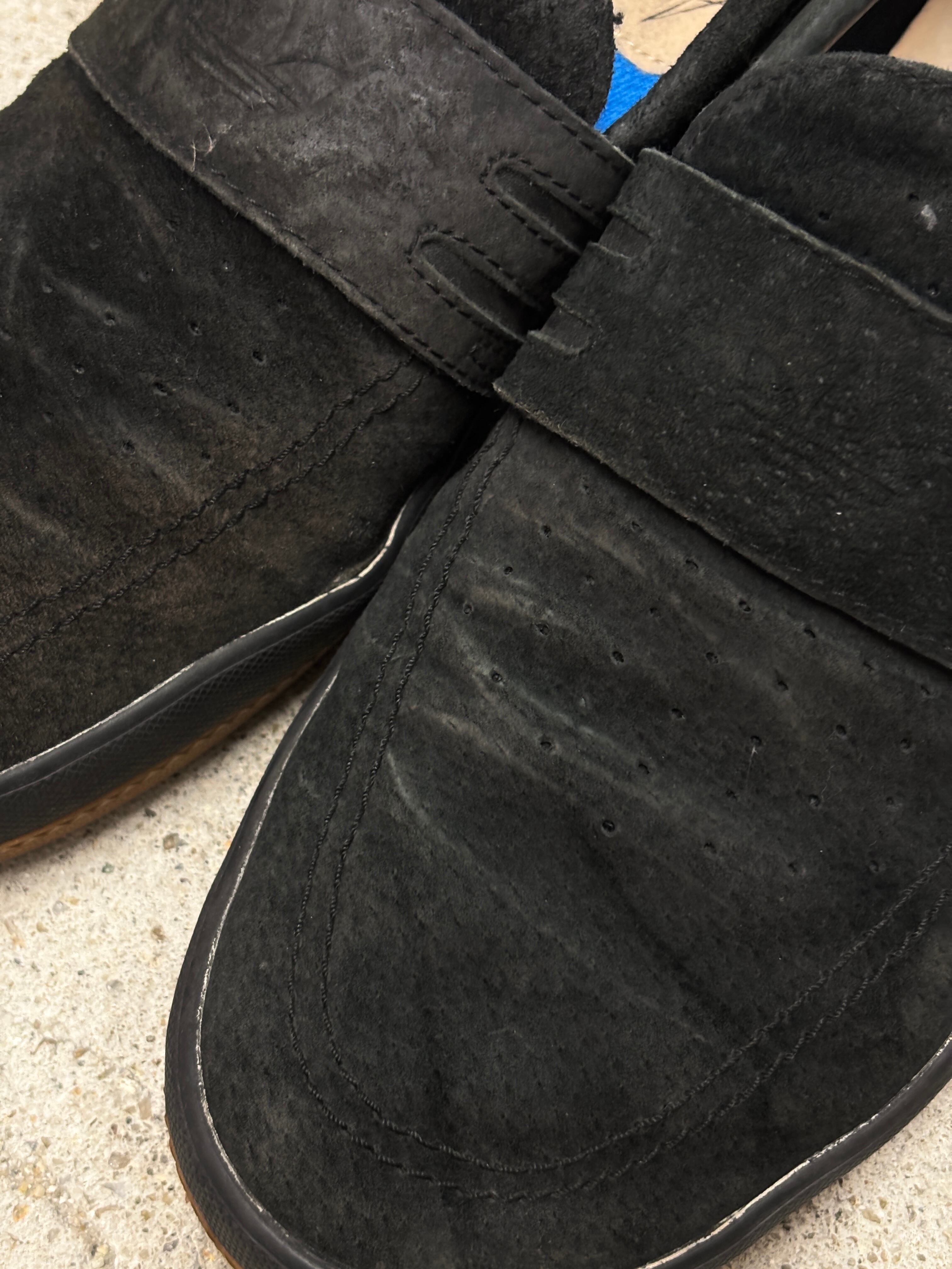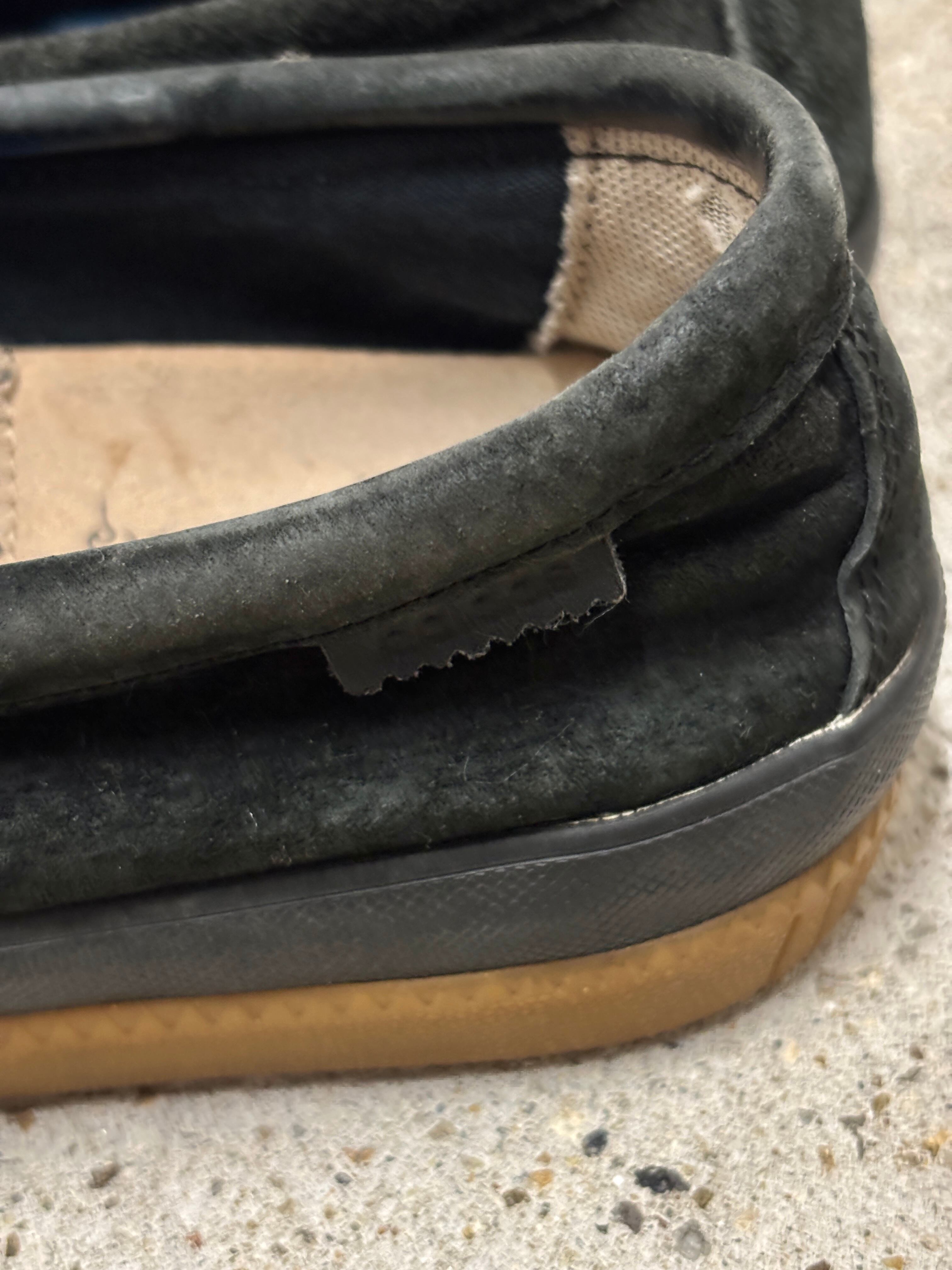 中古、古着特有の着用感があり、履きシワ、かかとの内側にダメージがあります。