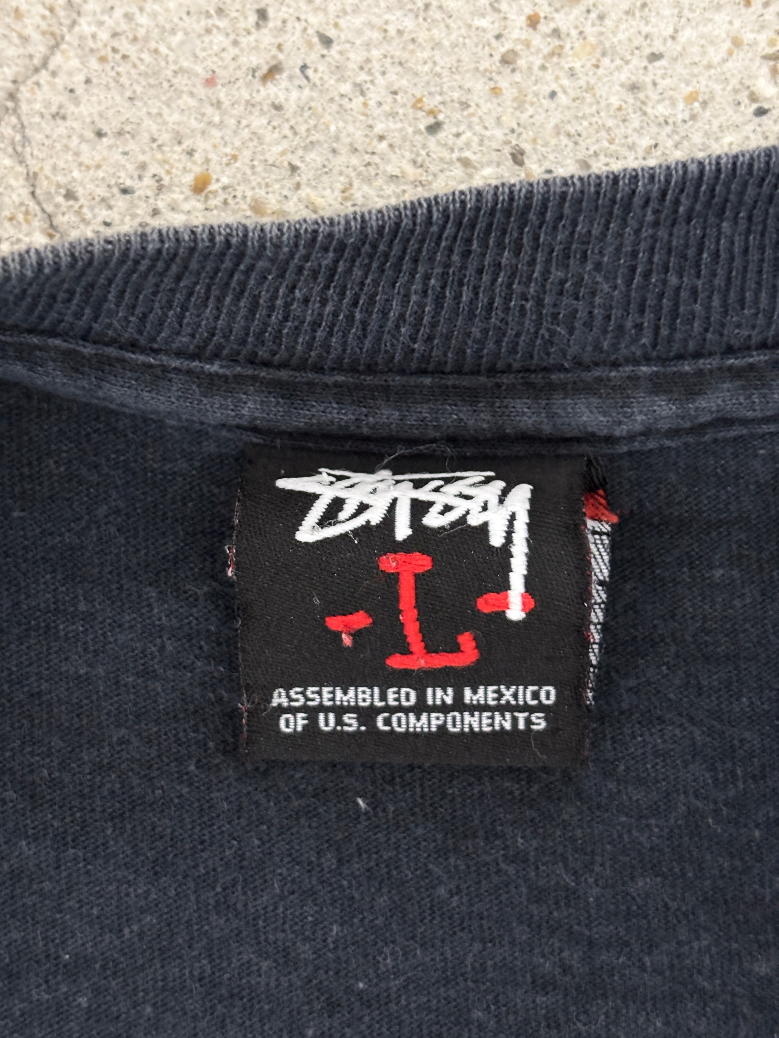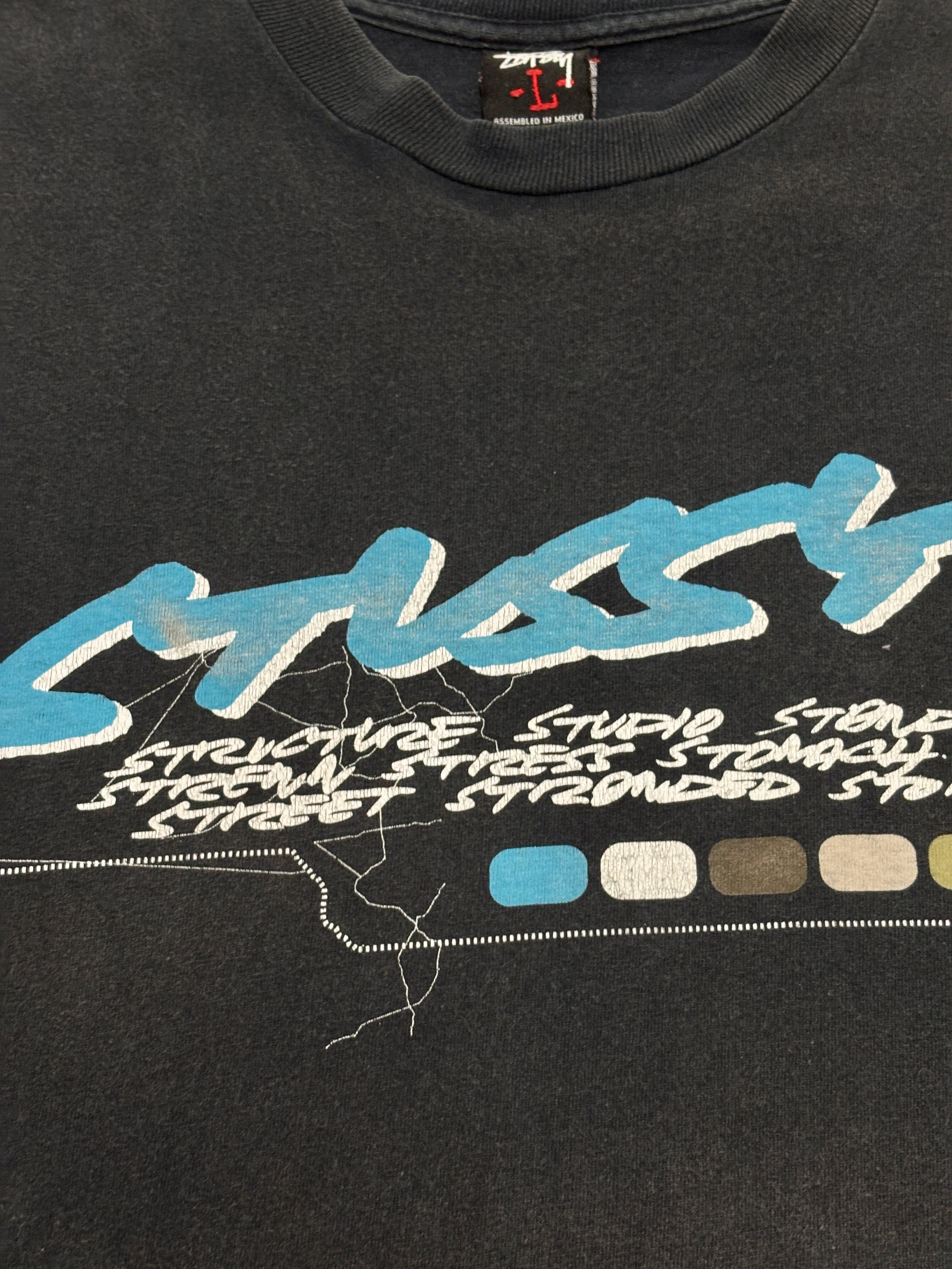 00s STUSSY × FUTURA/Graphic print Tee/L/グラフィックプリントTシャツ//ロゴプリント/フュ-チュラフォント/ブラック/フューチュラコラボ/ステューシー/古着/ア―カイブ
