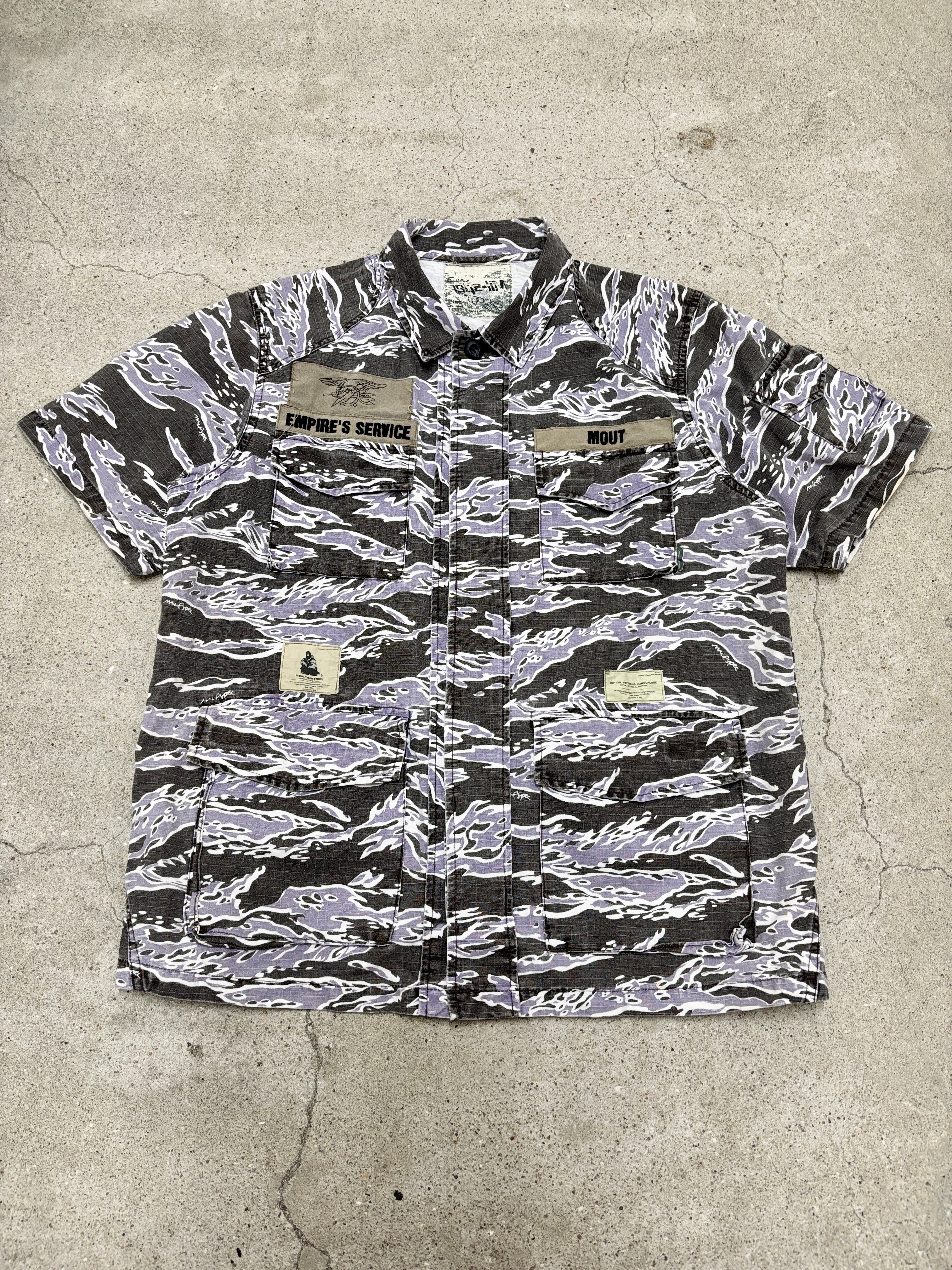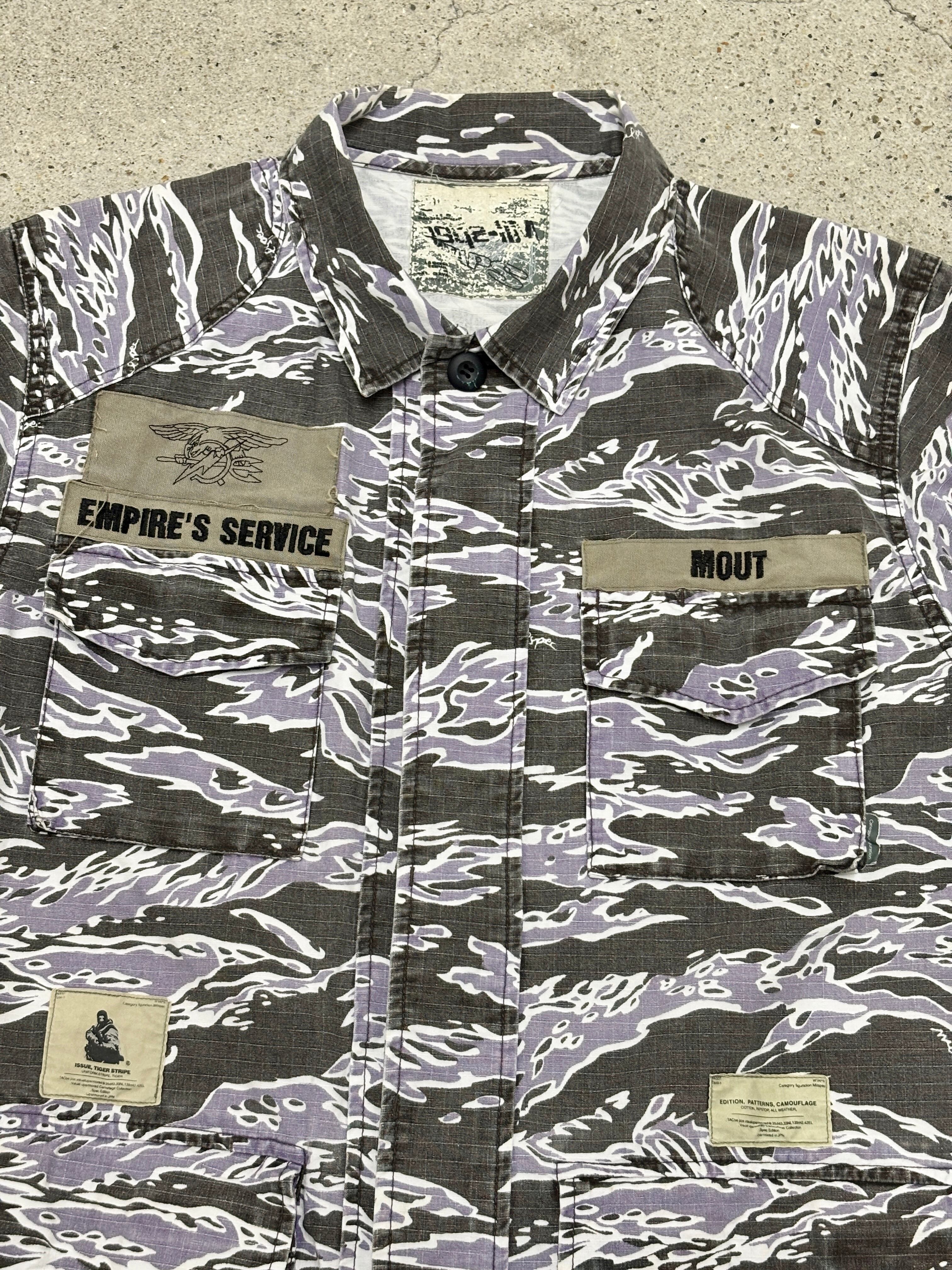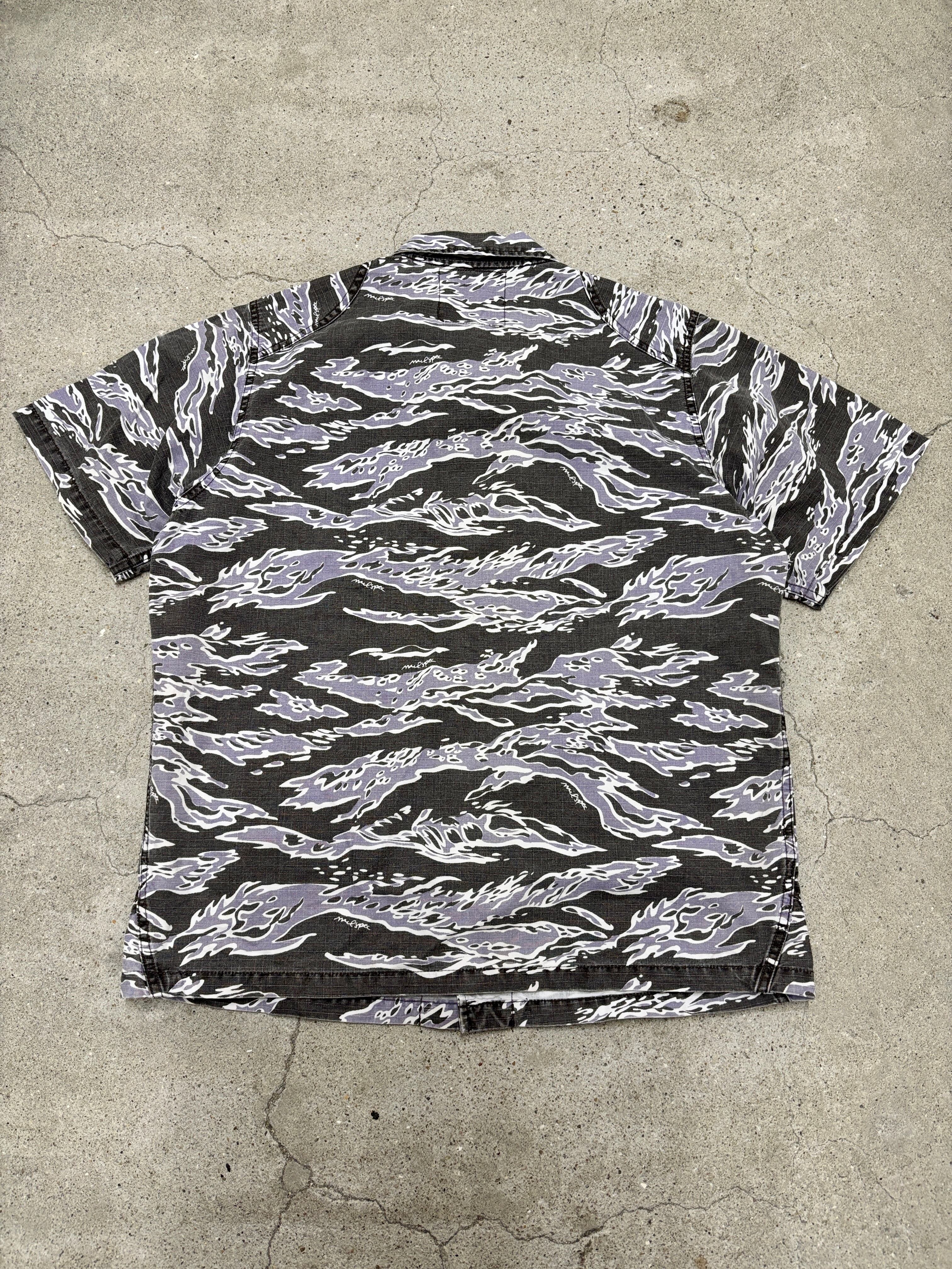 00s WTAPS/Tiger camo Military S/S Shirt/L相当/タイガ-カモ/ミリタリ-シャツ/半袖シャツ/カモフラ/ブラック/パ-プル/ダブルタップス/裏原/古着/ア―カイブ