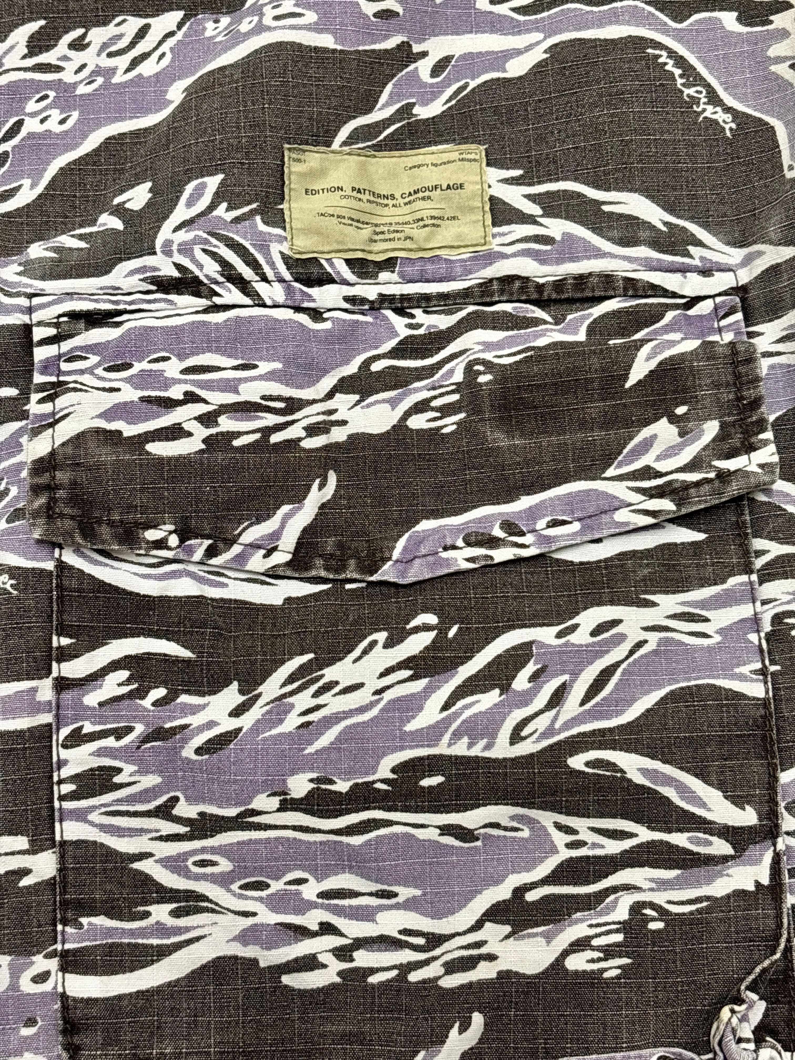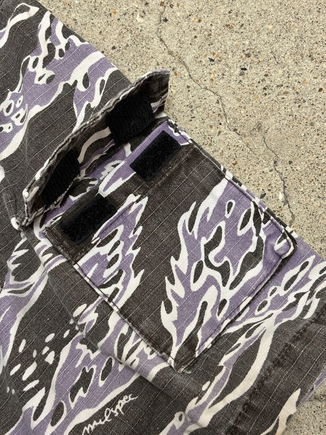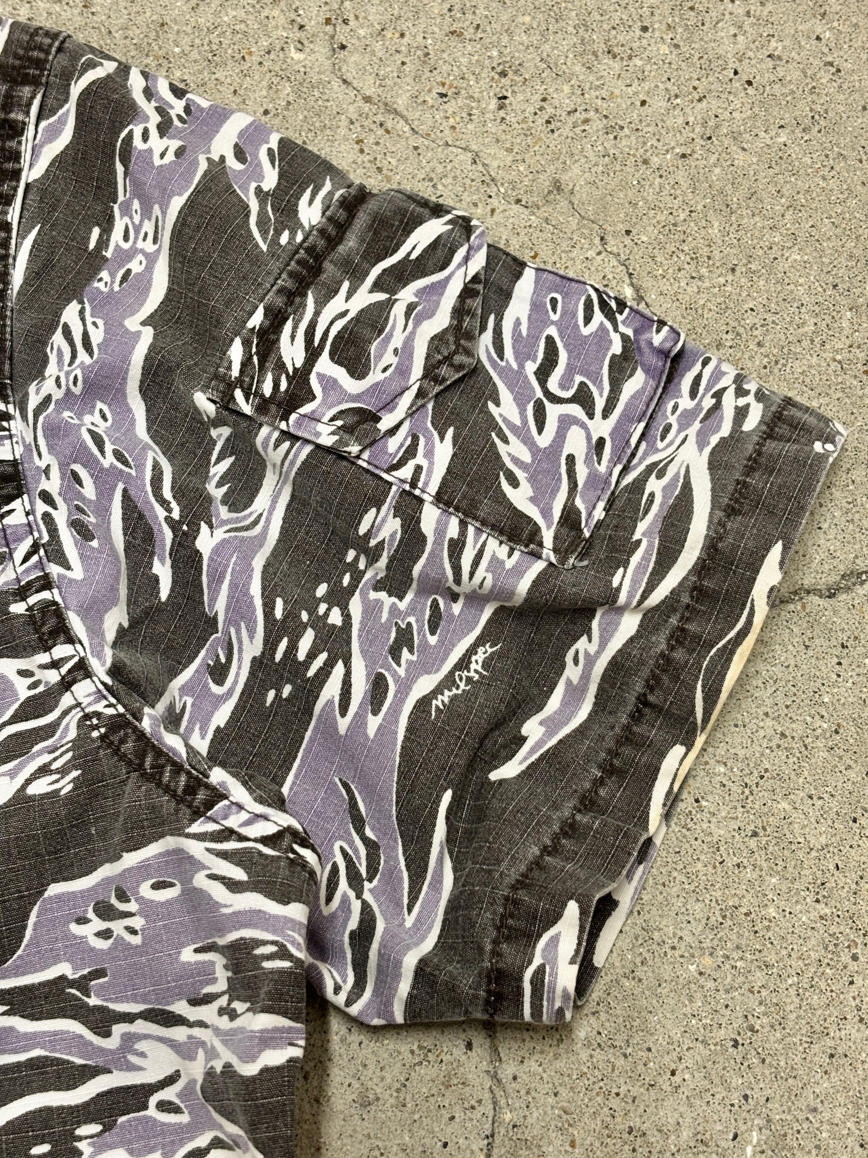 00s WTAPS/Tiger camo Military S/S Shirt/L相当/タイガ-カモ/ミリタリ-シャツ/半袖シャツ/カモフラ/ブラック/パ-プル/ダブルタップス/裏原/古着/ア―カイブ