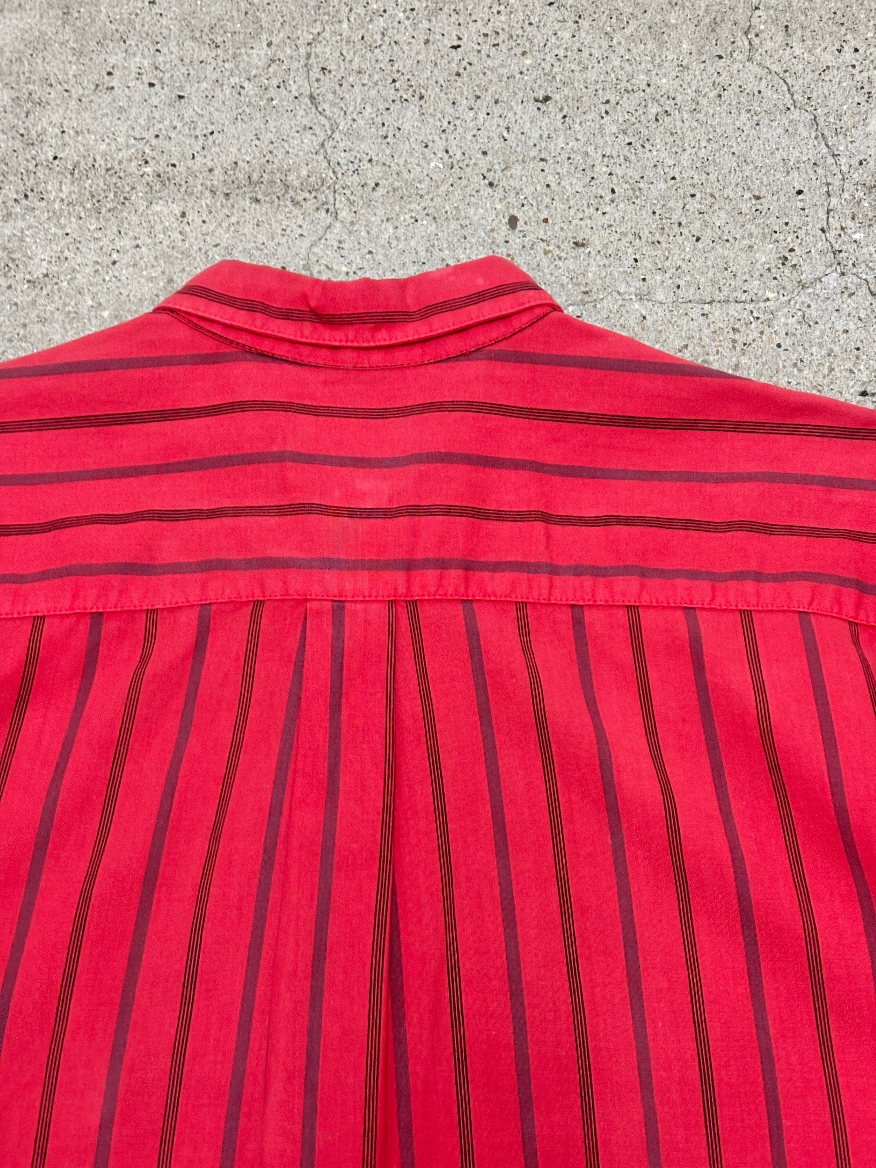 90s OLD GAP/Stripe S/S Shirt/USA製/紺タグ/L/ストライプ柄半袖シャツ/レッド/オ-ルドギャップ/古着