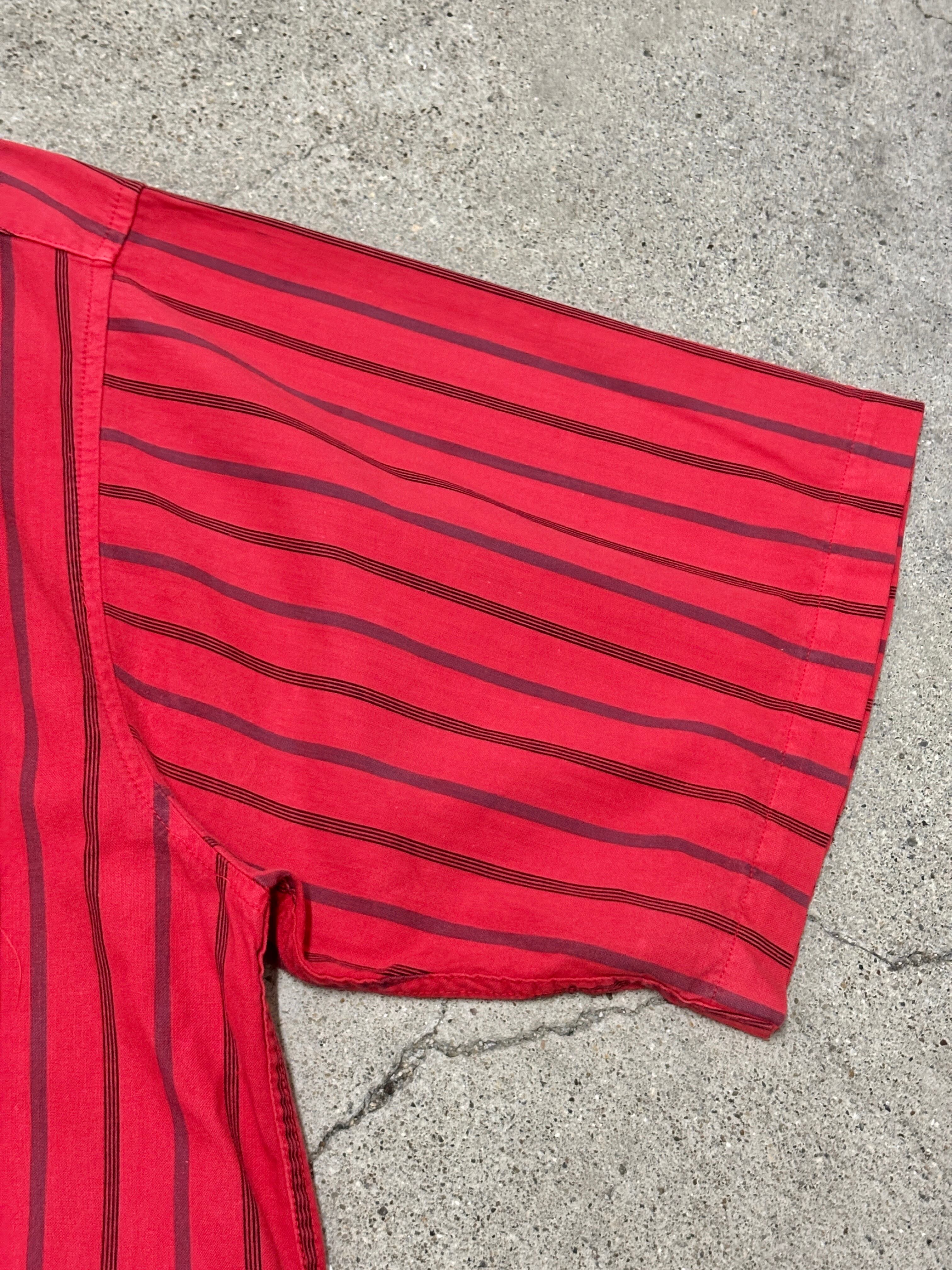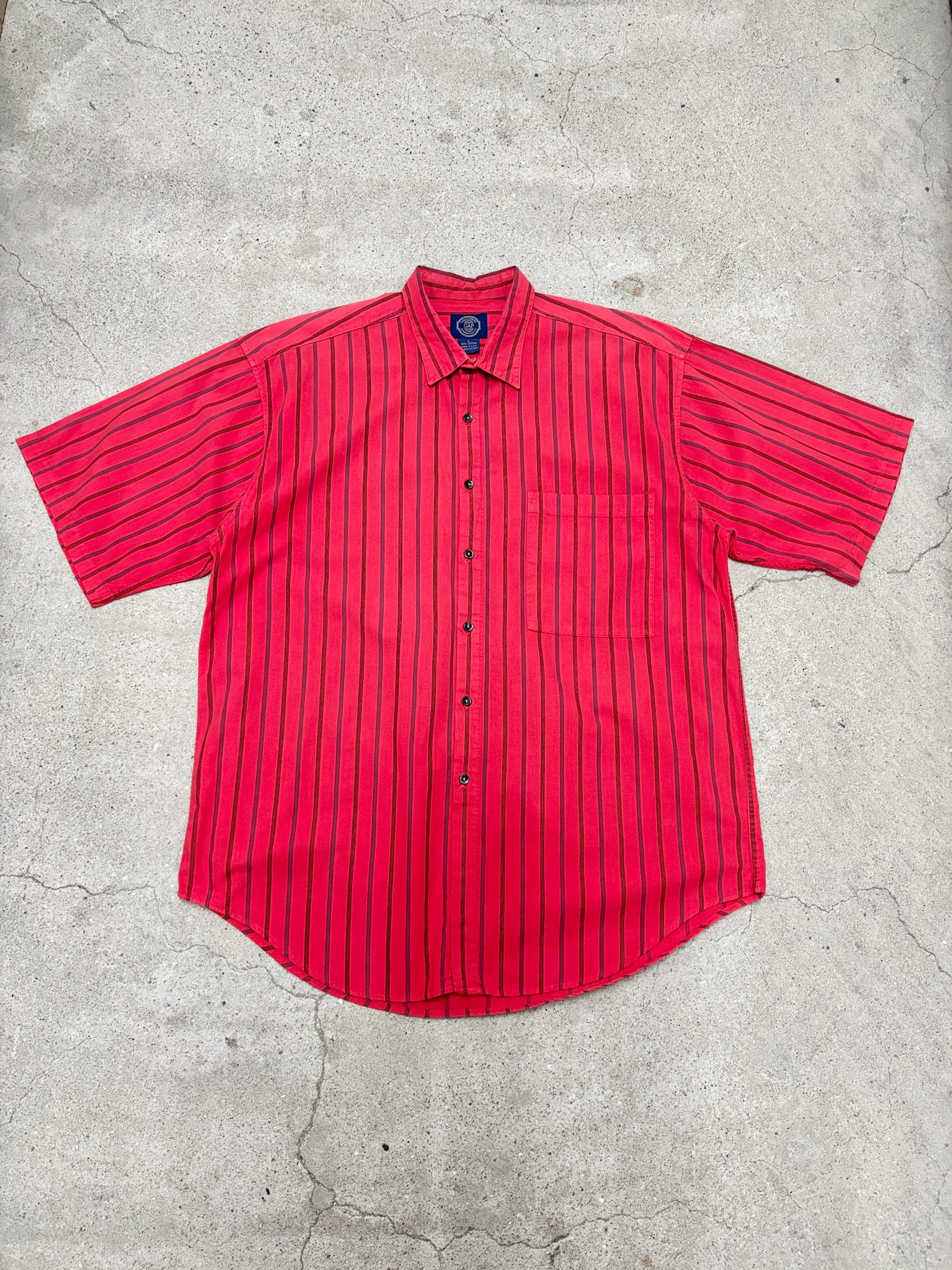 90s OLD GAP/Stripe S/S Shirt/USA製/紺タグ/L/ストライプ柄半袖シャツ/レッド/オ-ルドギャップ