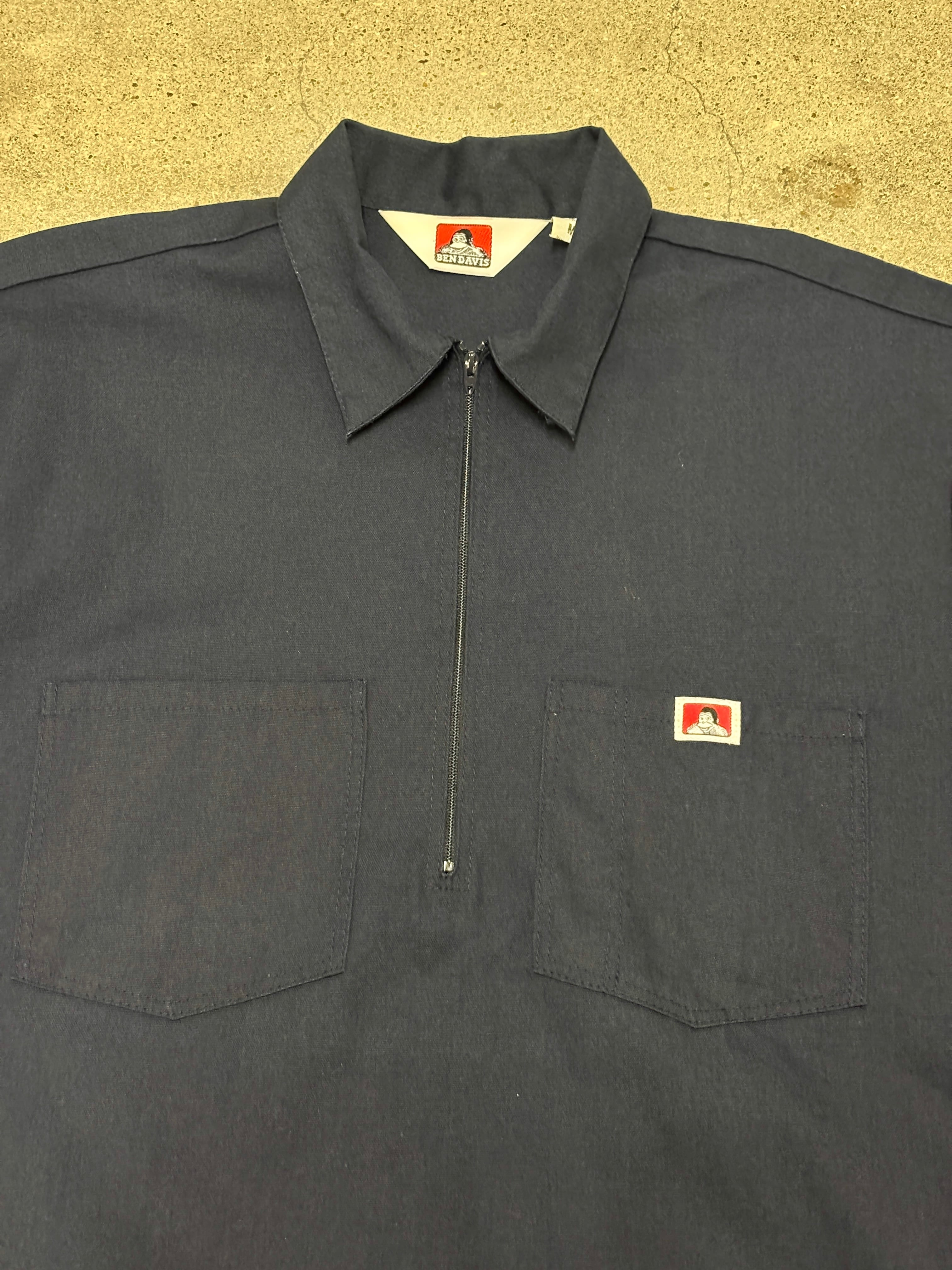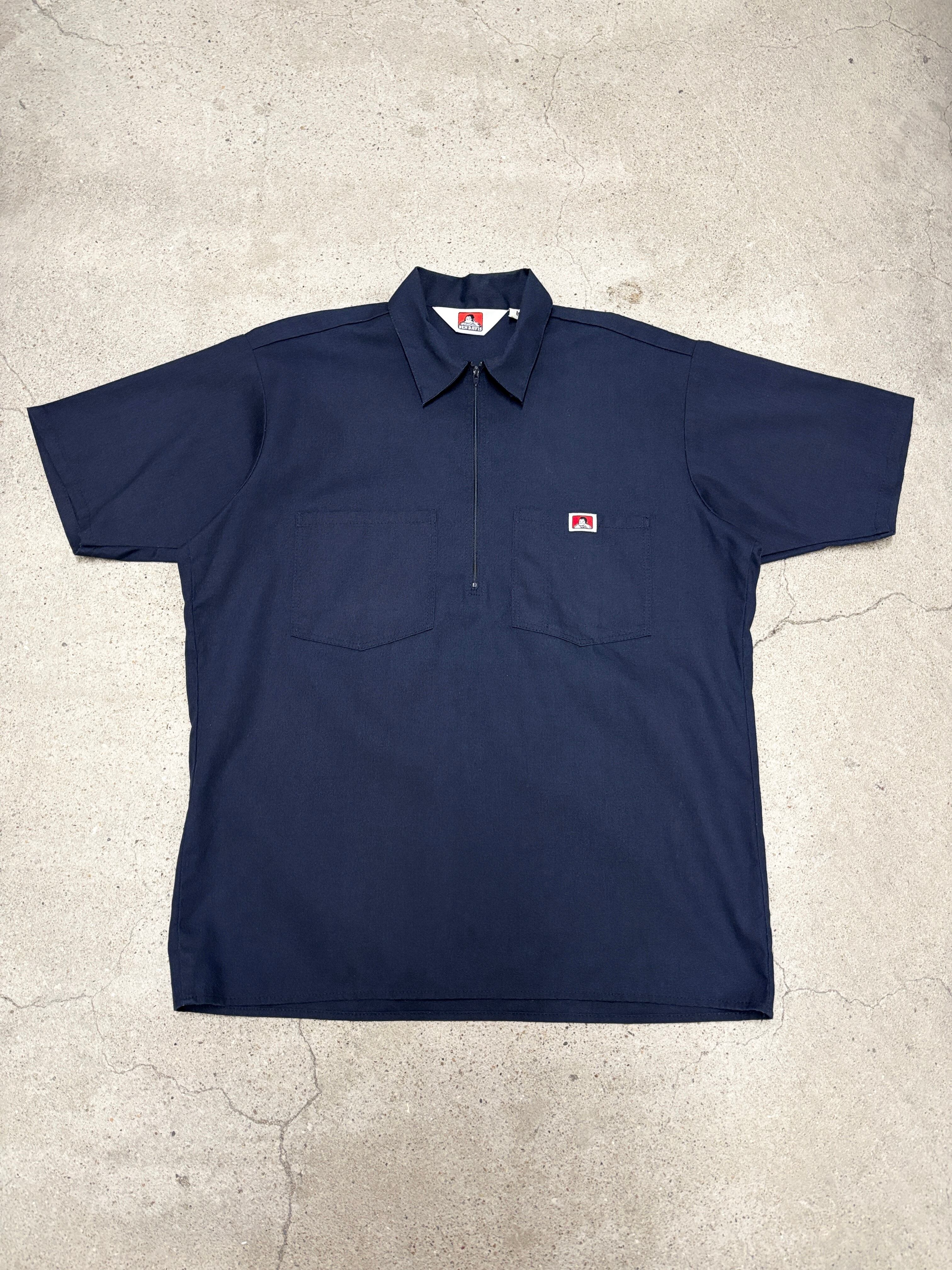 80s BEN DAVIS/Half zip S/S Work shirt/USA製/TALON/M/ハーフジップ半袖ワ-クシャツ/ネイビ-/ベンデイビス