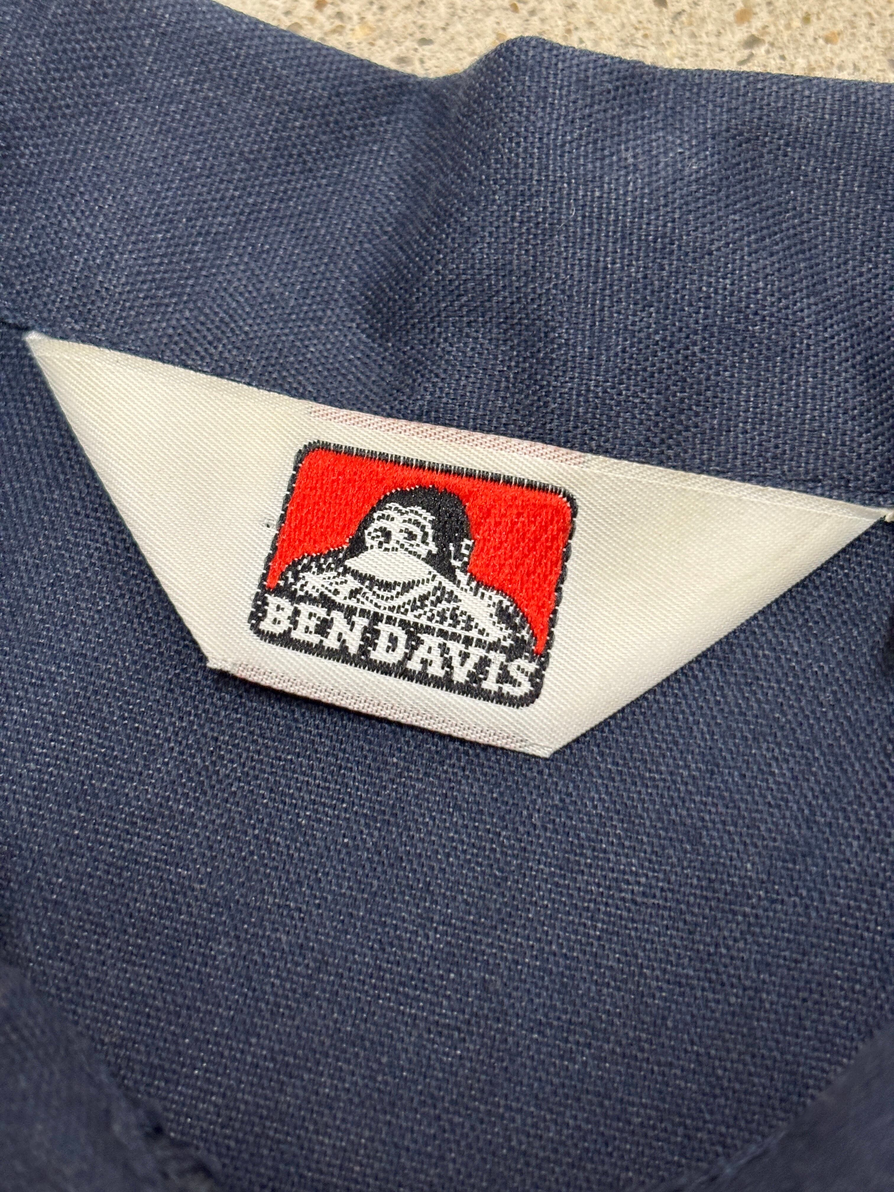 80s BEN DAVIS/Half zip S/S Work shirt/USA製/TALON/M/ハーフジップ半袖ワ-クシャツ/ネイビ-/ベンデイビス/アメカジ/古着