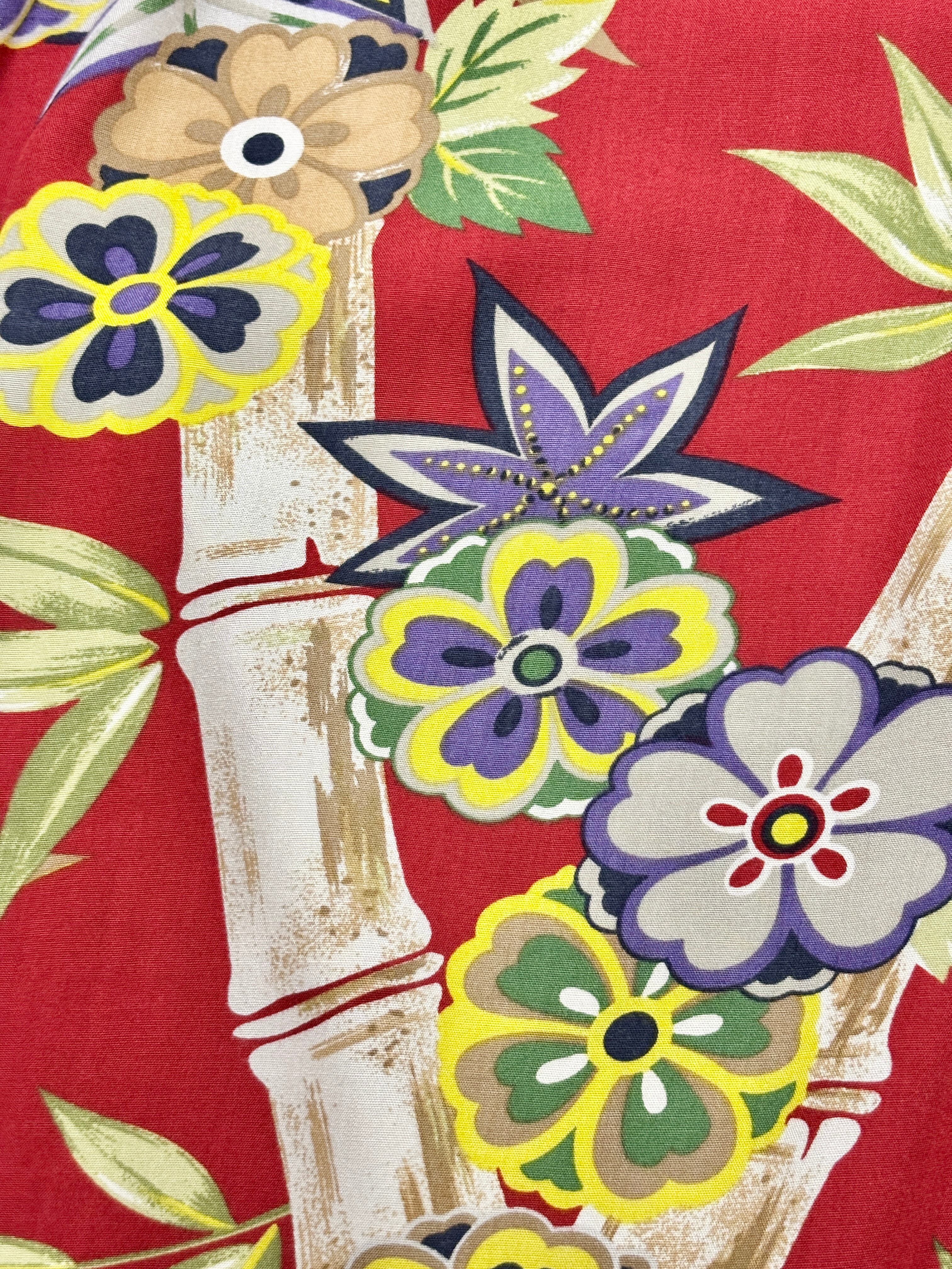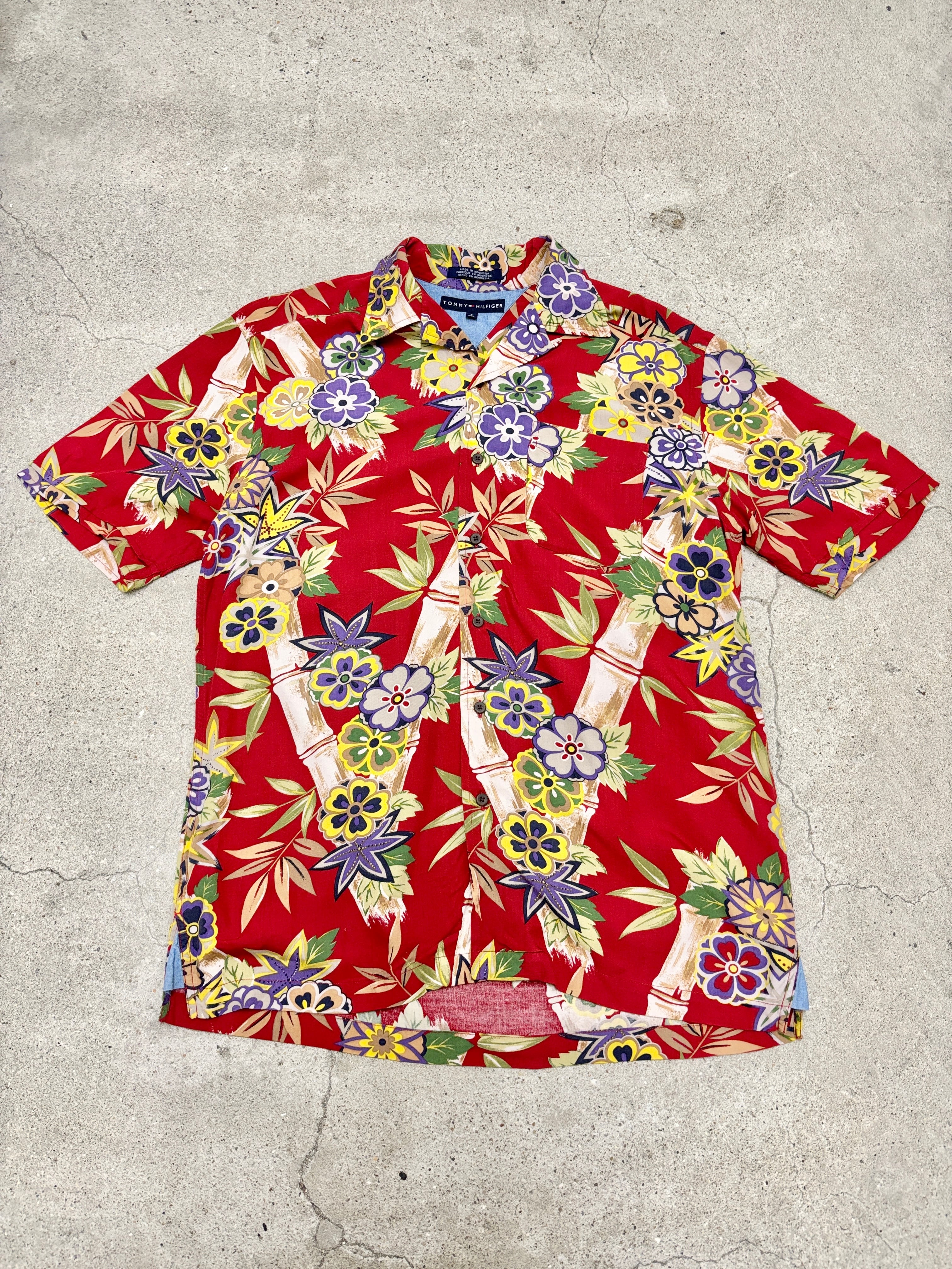 00s TOMMY HILFIGER/ALOHA Shirt/2003年/S/アロハシャツ/オ-プンカラ-/半袖シャツ/総柄/竹/花柄/レッド/トミーヒルフィガー