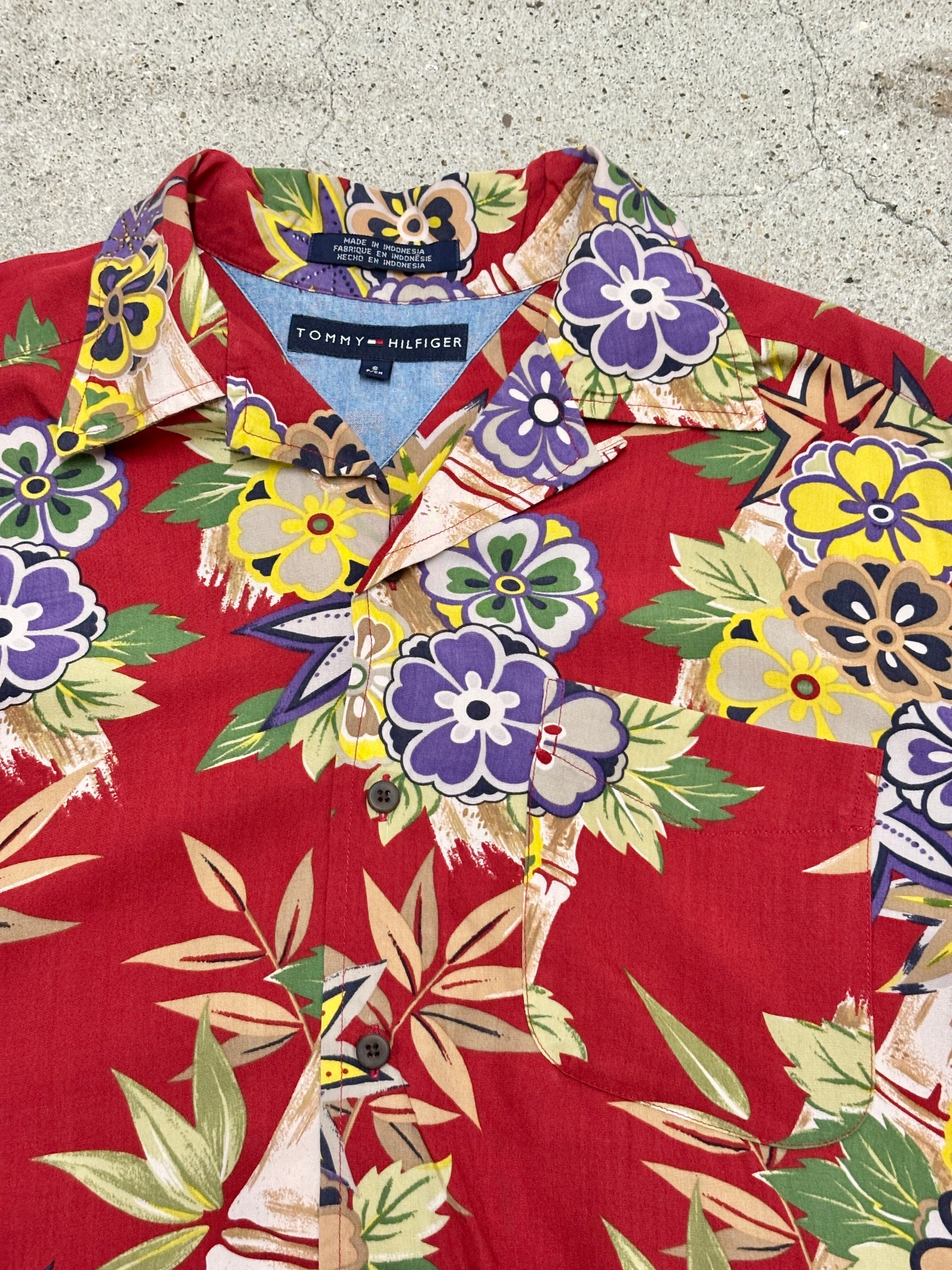 00s TOMMY HILFIGER/ALOHA Shirt/2003年/S/アロハシャツ/オ-プンカラ-/半袖シャツ/総柄/竹/花柄/レッド/トミーヒルフィガー/古着