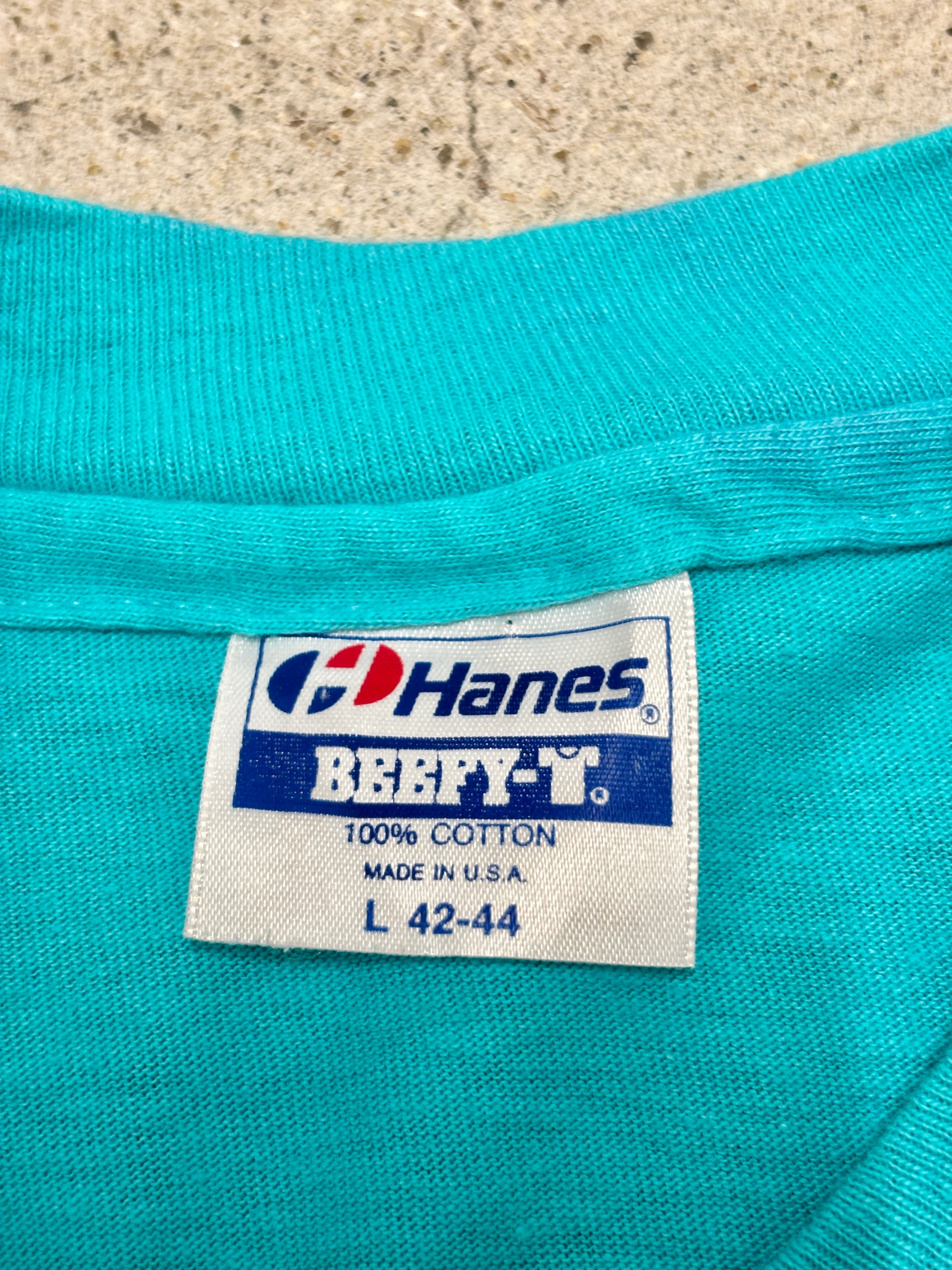 80~90s Hanes/Blank Tee/USA製/L/無地Tシャツ/ブランク/タ-コイズブル-/ヘインズ/古着