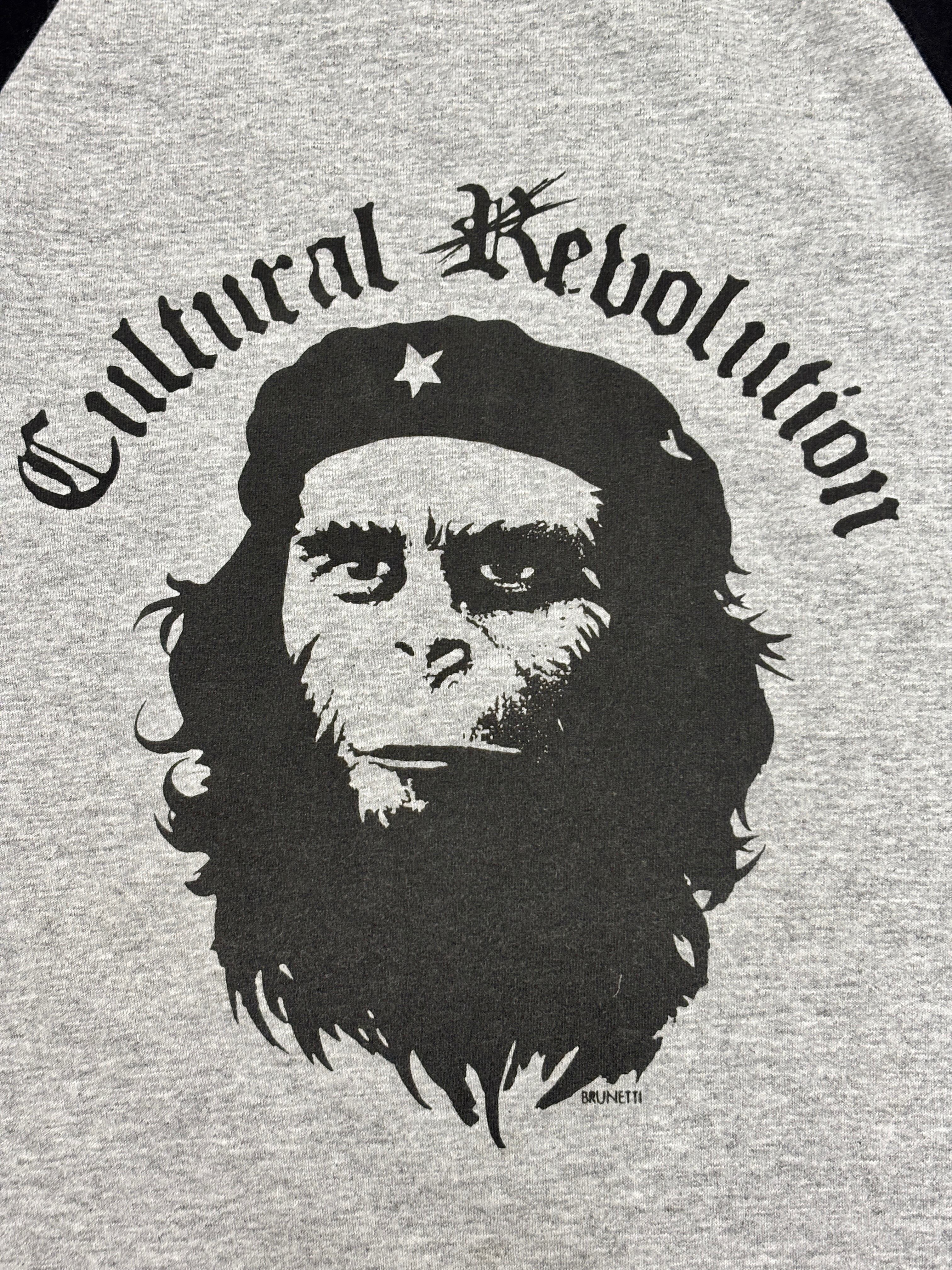 90~00s FUCT/Cultural Revolution Raglan Tee/USA製/M/猿の惑星/チェゲバラ/ラグランTシャツ/7分袖/グレ-/ブラック/ファクト/裏原/古着/ア―カイブ
