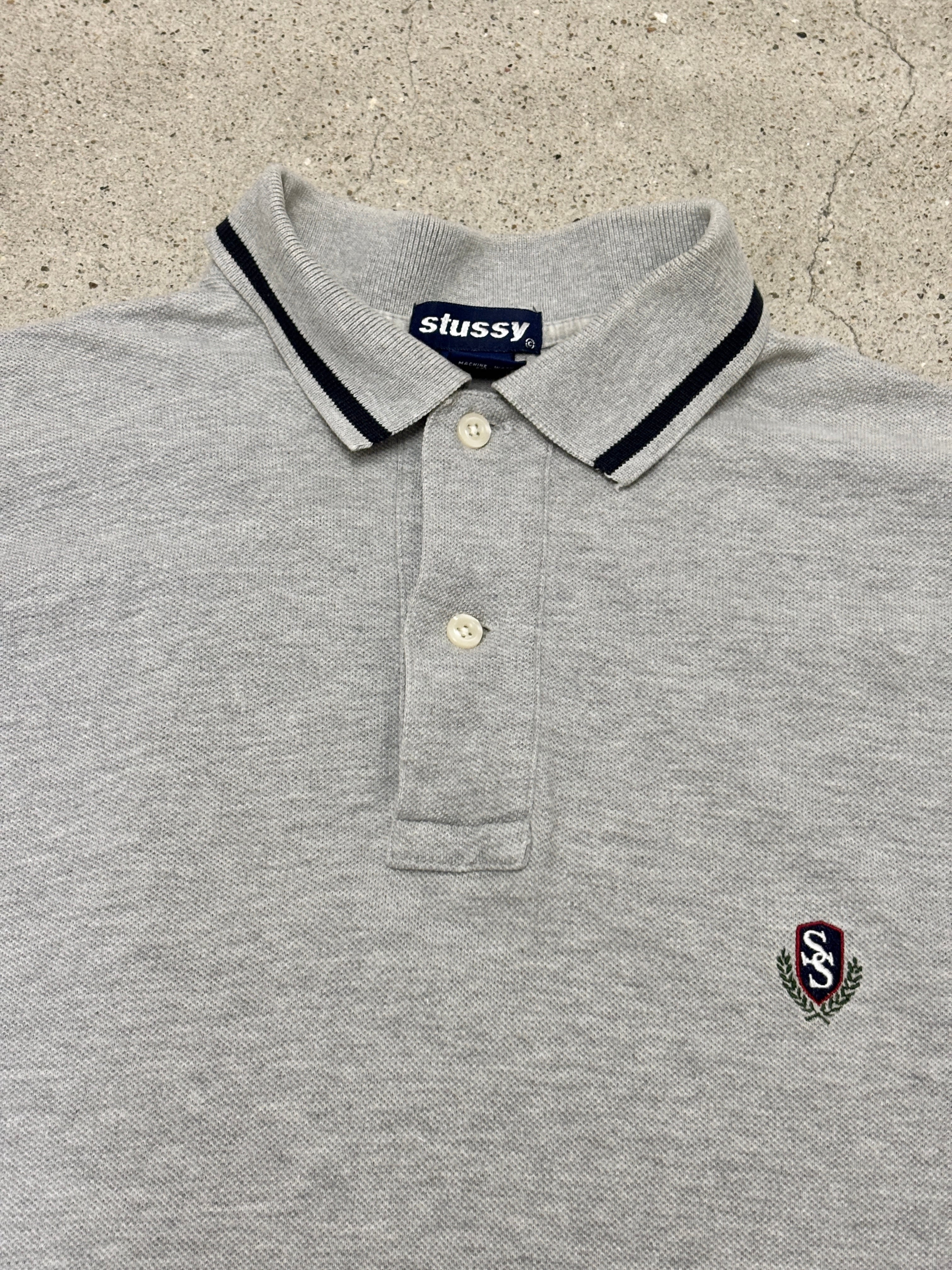 90~00s OLD STUSSY/Logo embroidery Polo Shirt/紺タグ/S/刺繍ロゴ/ポロシャツ/グレ-/ステューシー/オ-ルドステューシー/古着/ア―カイブ