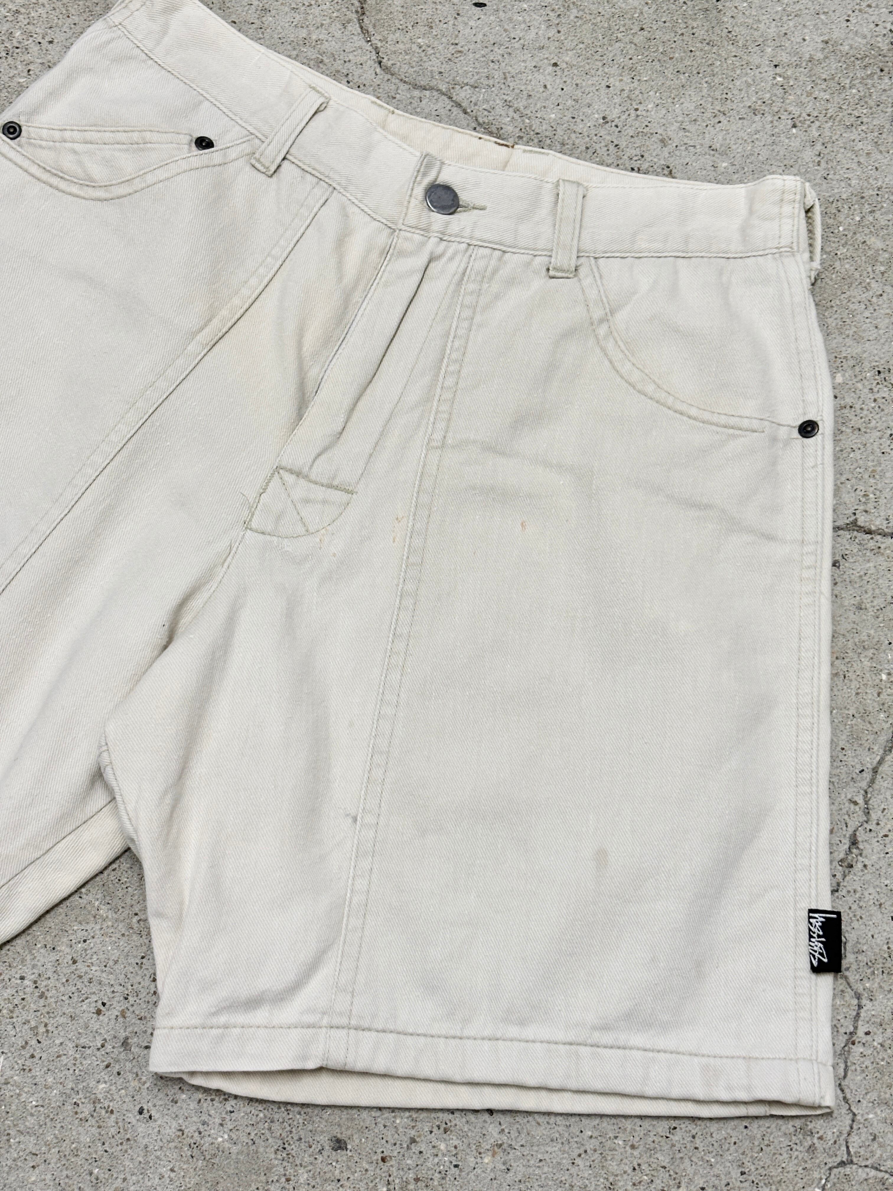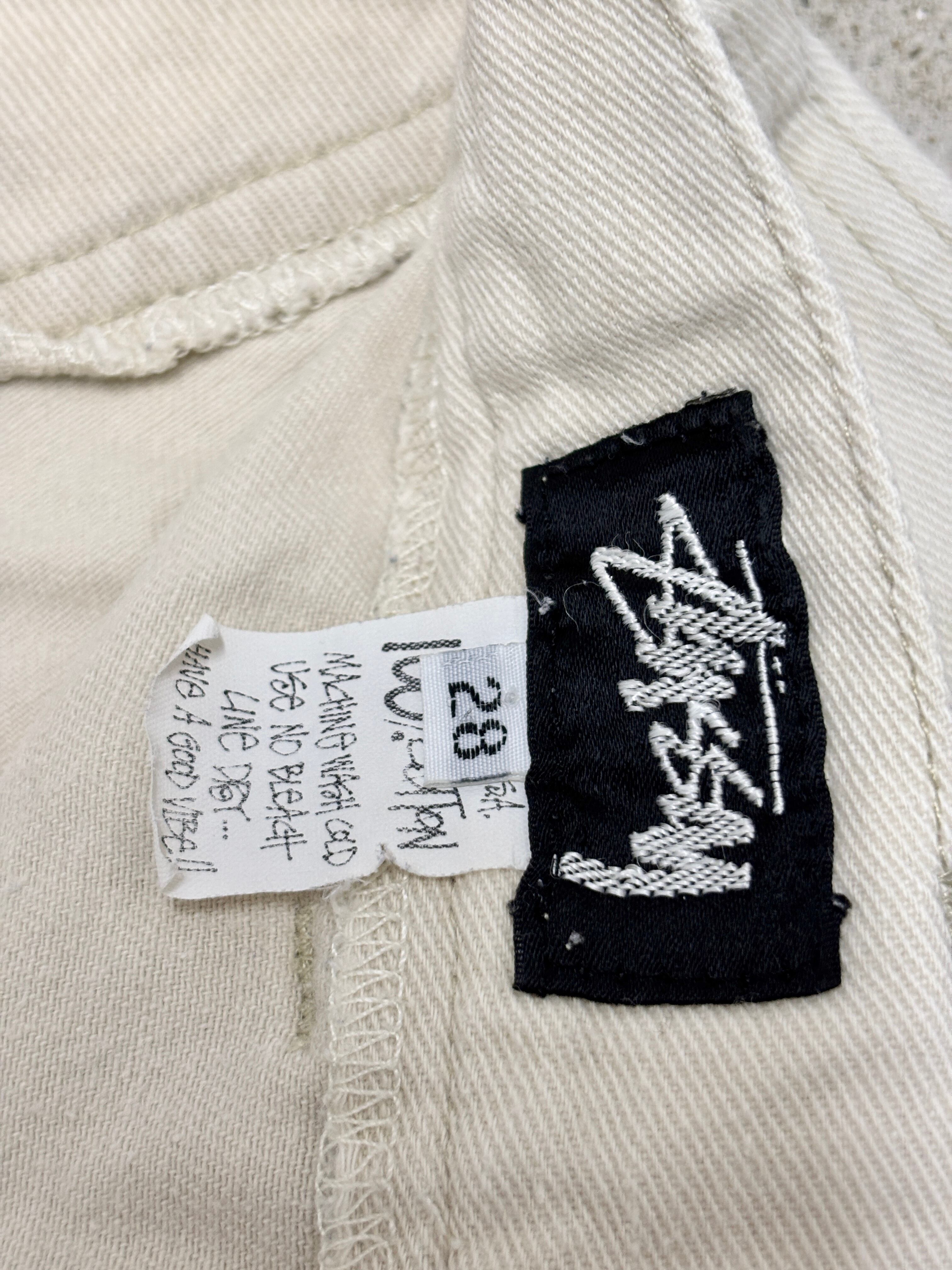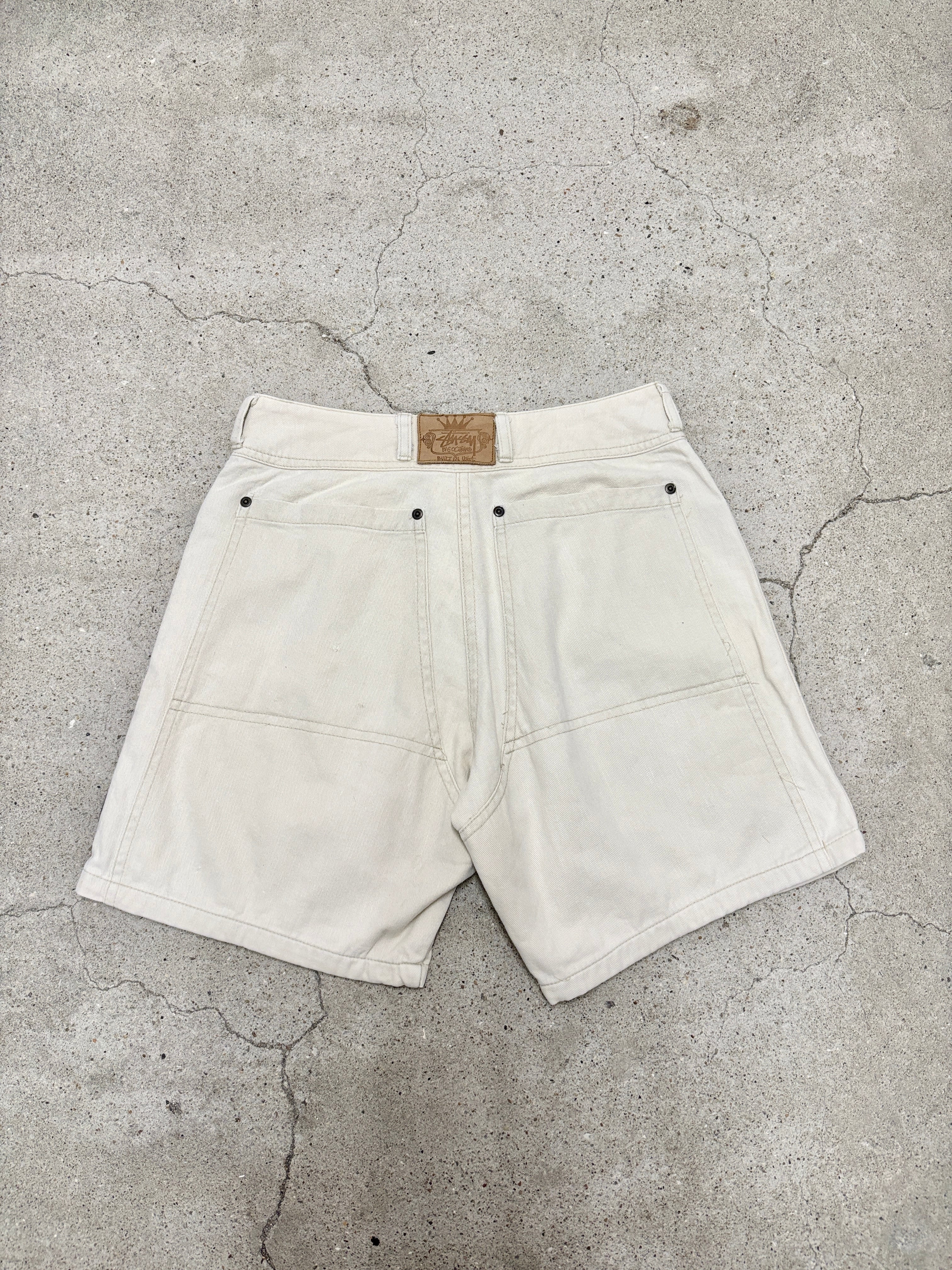 80s OLD STUSSY/Short pants/USA製/黒タグ/W28/ショ-トパンツ/レザ-パッチ/ホワイト/ステューシー/オ-ルドステューシー