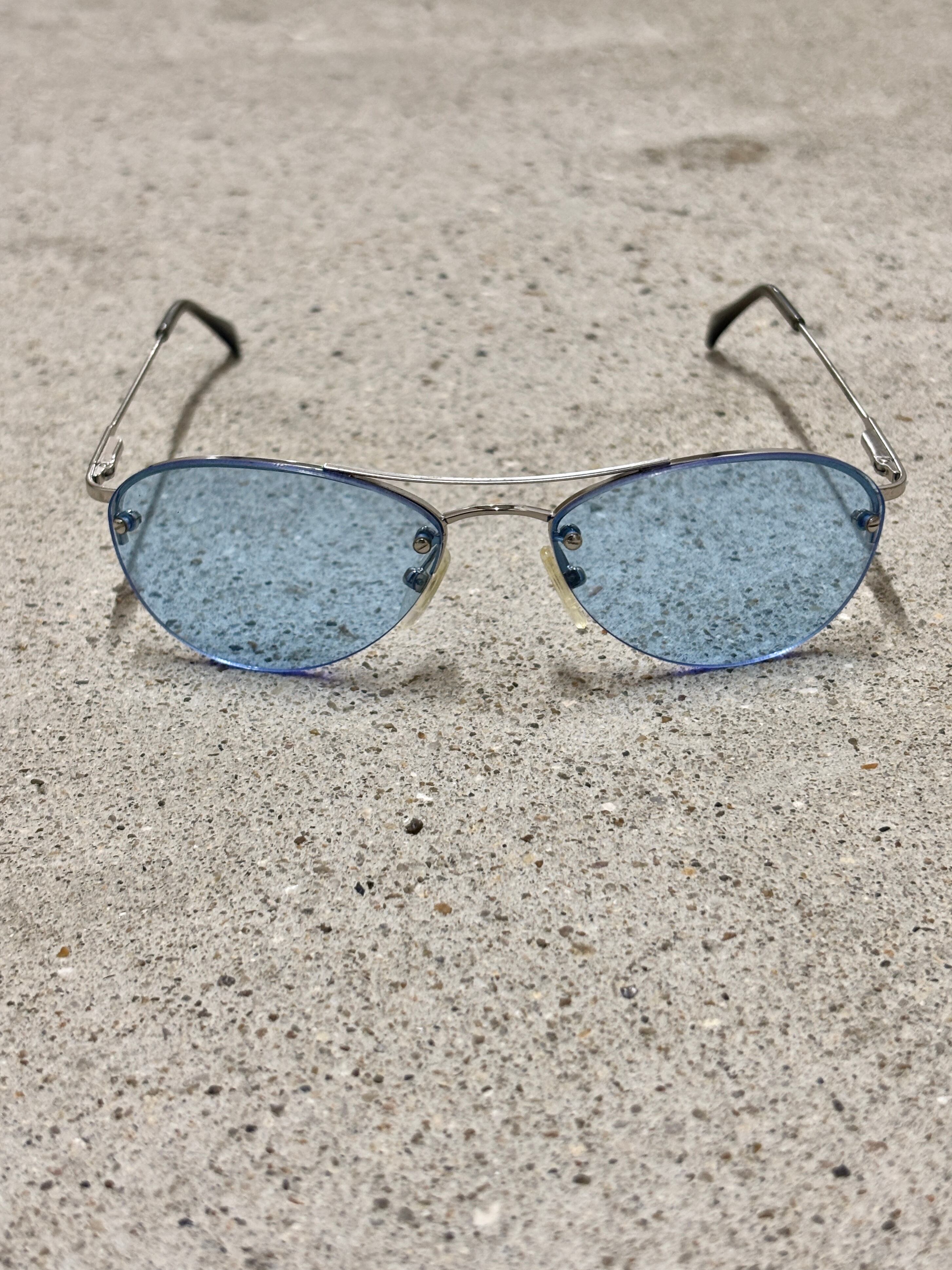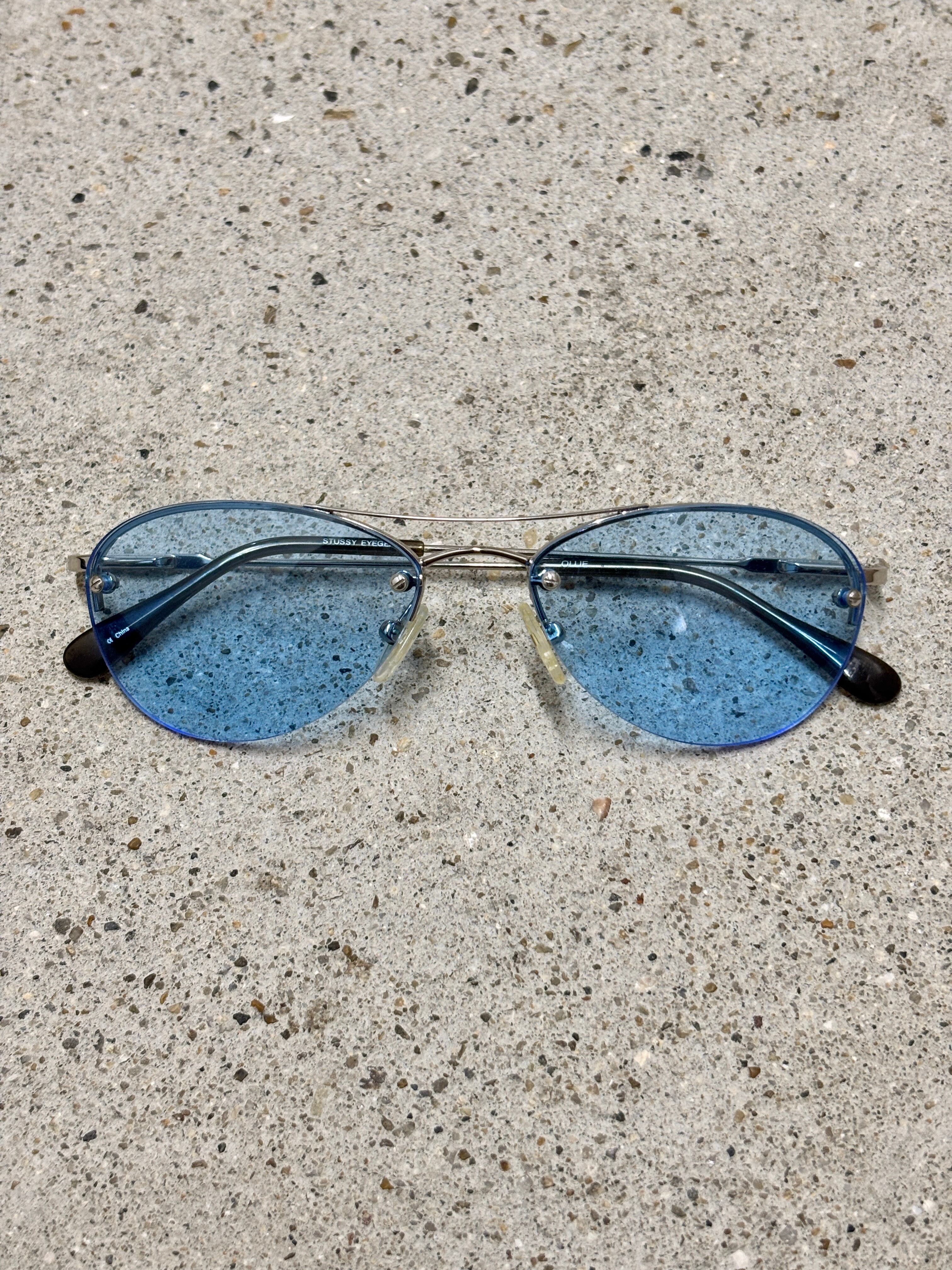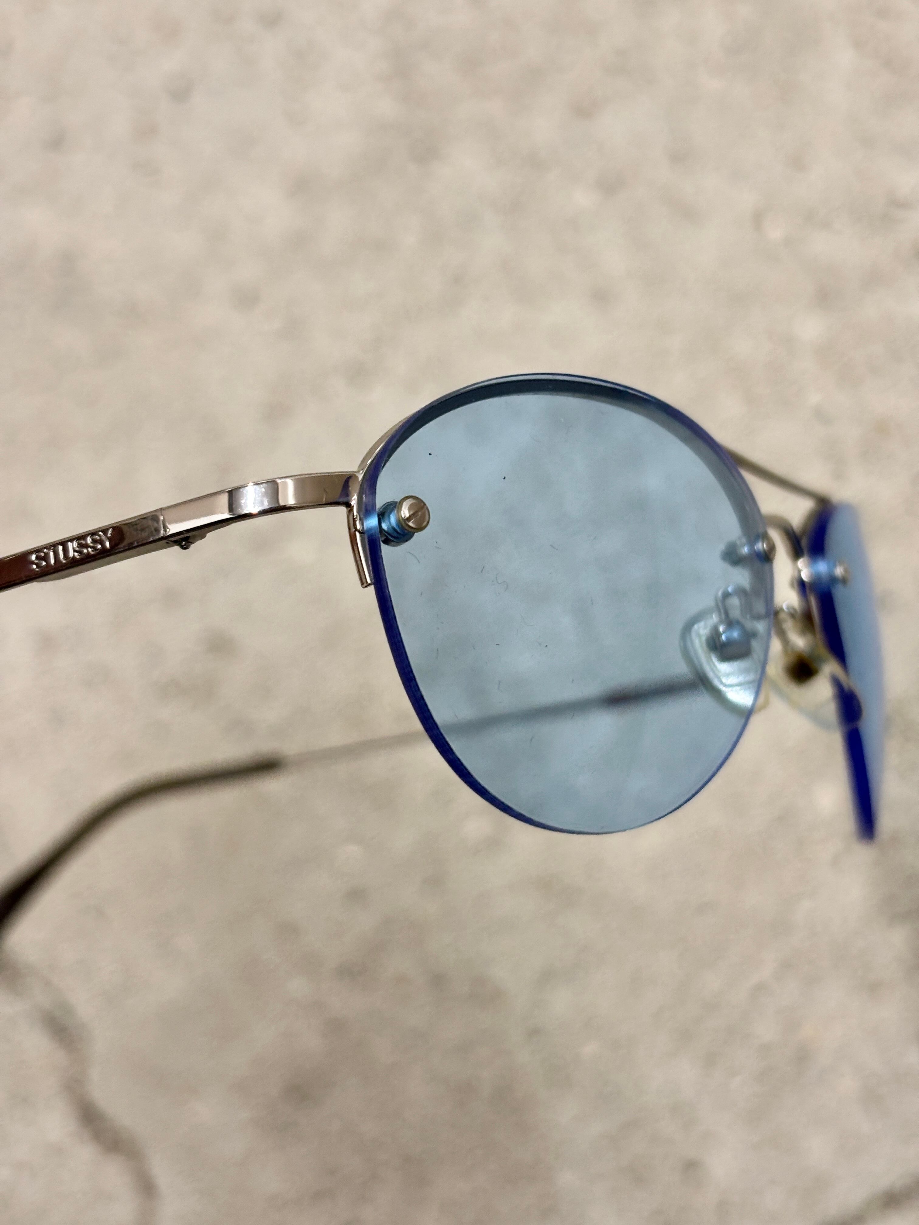 STUSSY/Sunglasses/OLLIE/サングラス/オ-リ-/シルバ-/ブル-/ロゴ刻印/ステューシー/小物/ア―カイブ