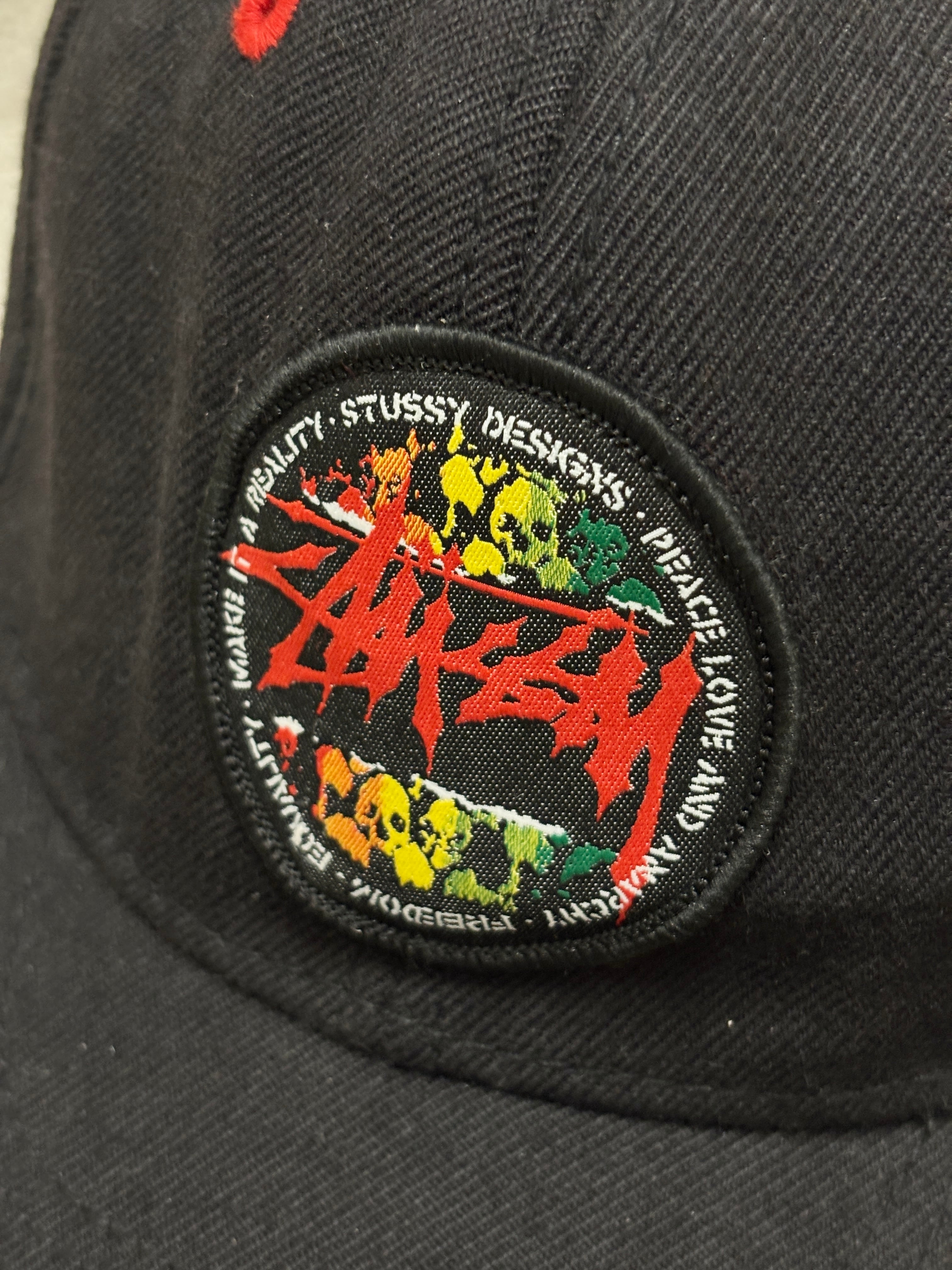 ステューシ-のロゴパッチスナップバックキャップ。