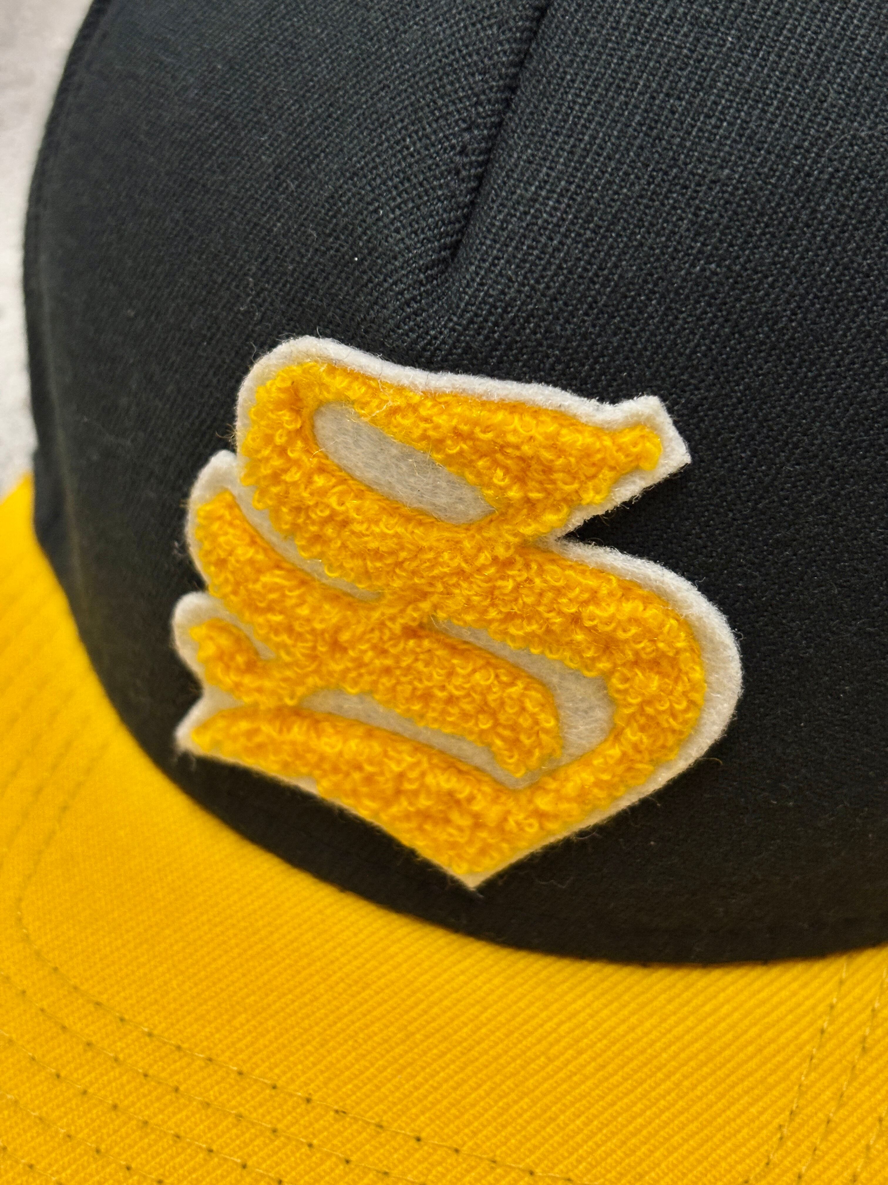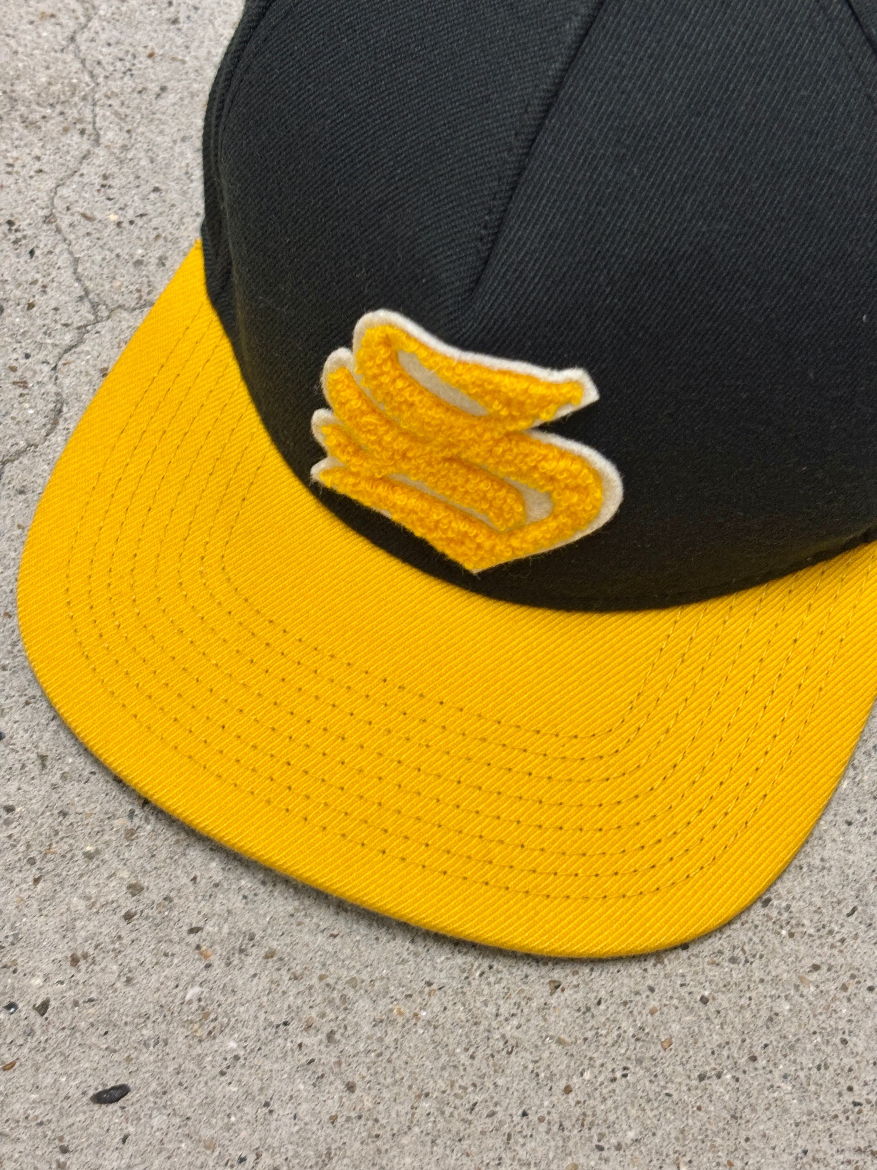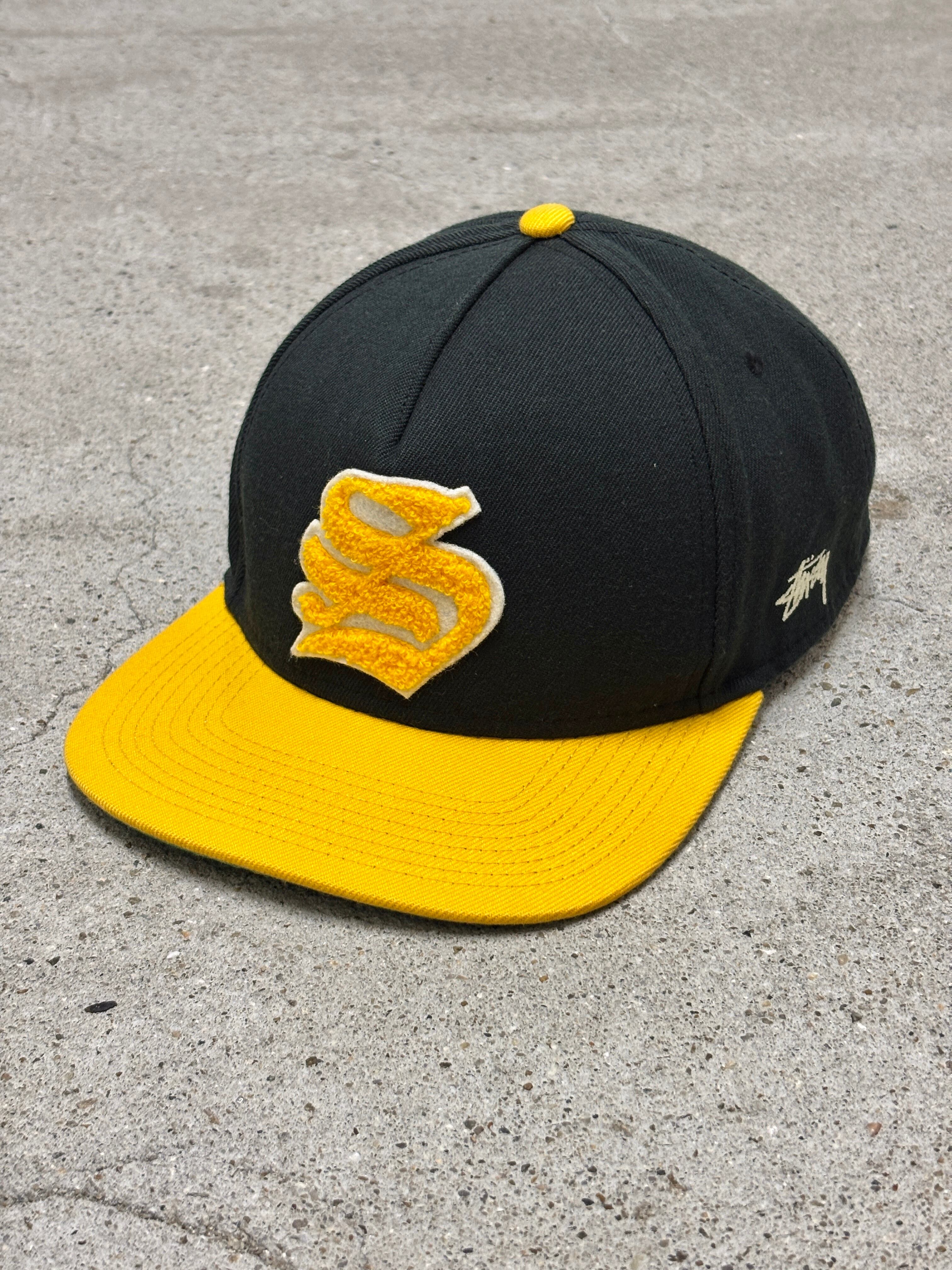 00~10s STUSSY/S Logo patch Snapback Cap/Free/Sロゴパッチスナップバックキャップ/ブラック/イエロ-/ステューシー