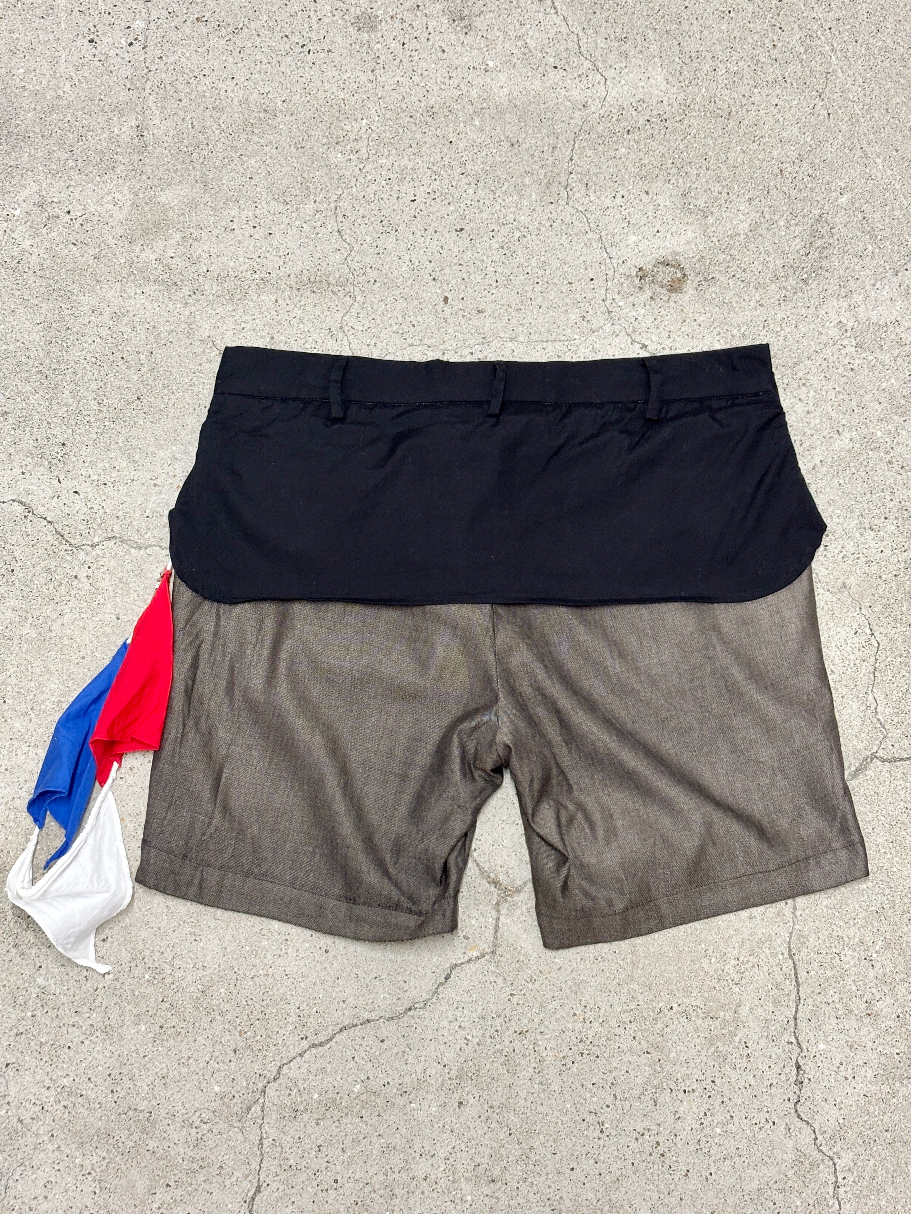 00s PHENOMENON/Layered Short pants/W30/レイヤードショートパンツ/ショーツ/ブラック/グレ-/フェノメノン