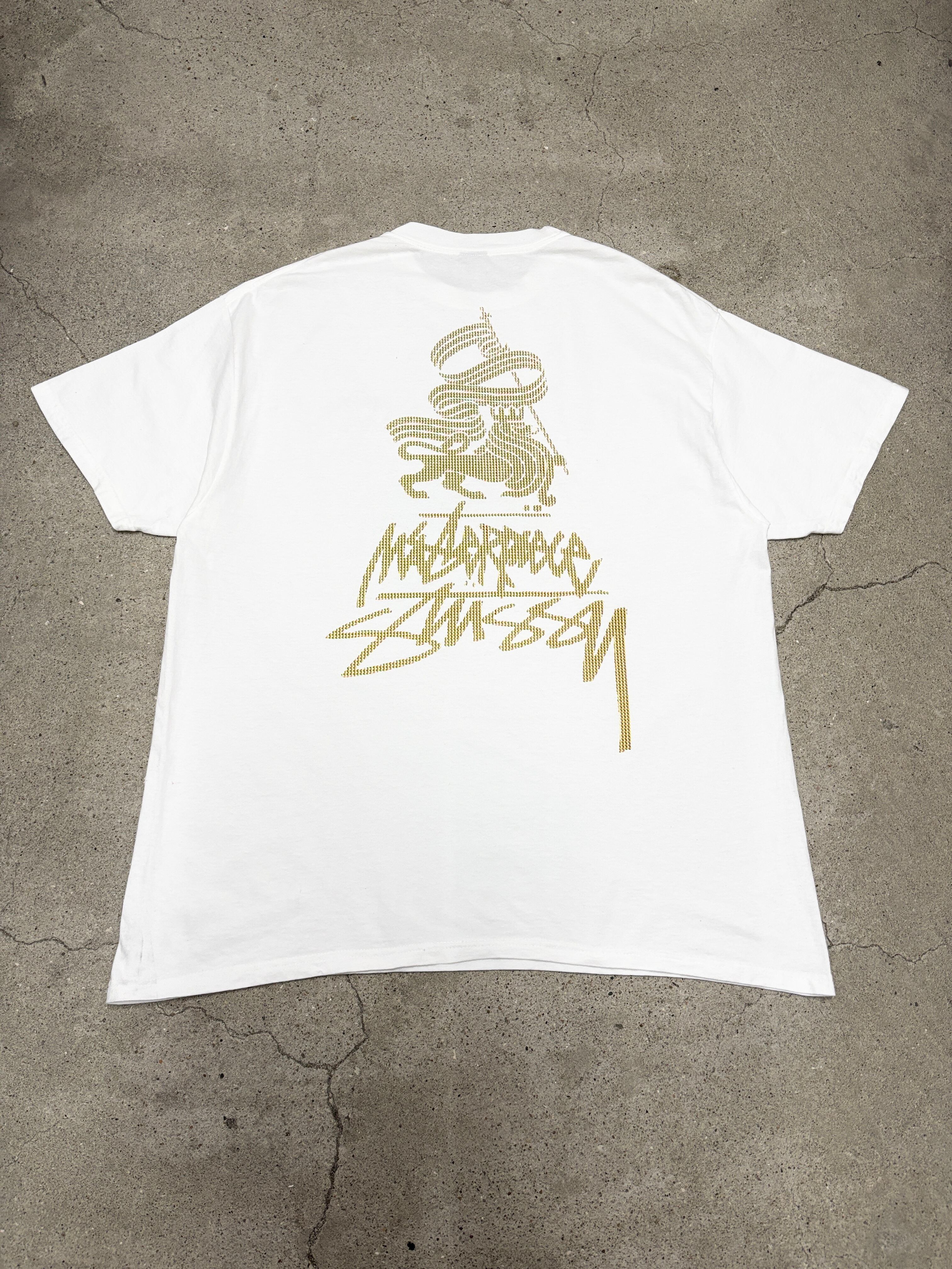 00s OLD STUSSY × MASTERPIECE/Roots and Culture Tee/2004年/XL/ロゴプリントTシャツ/ラスタライオン/ホワイト/マスターピースコラボ/ステューシー/オ-ルドステューシー